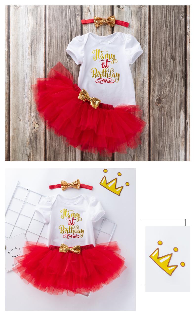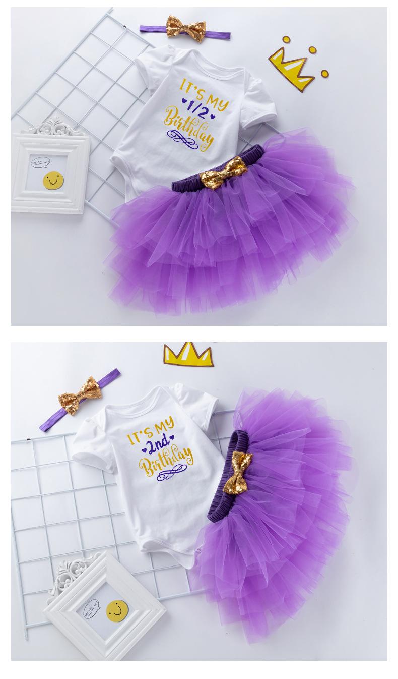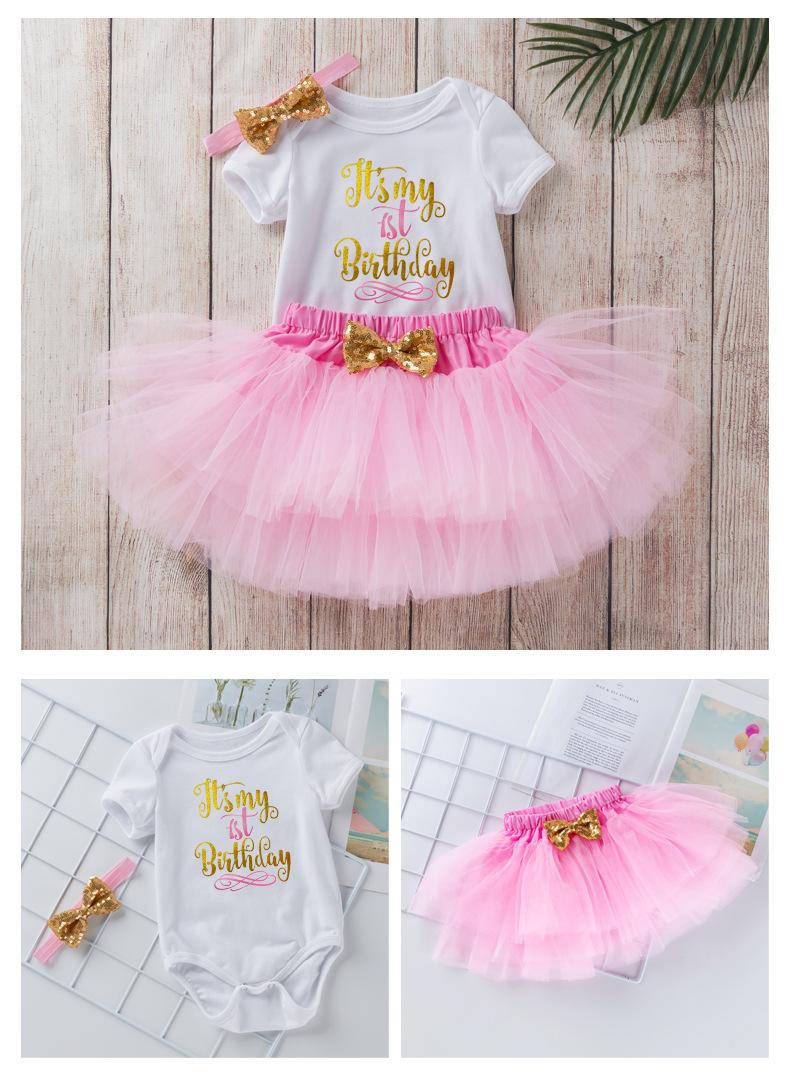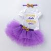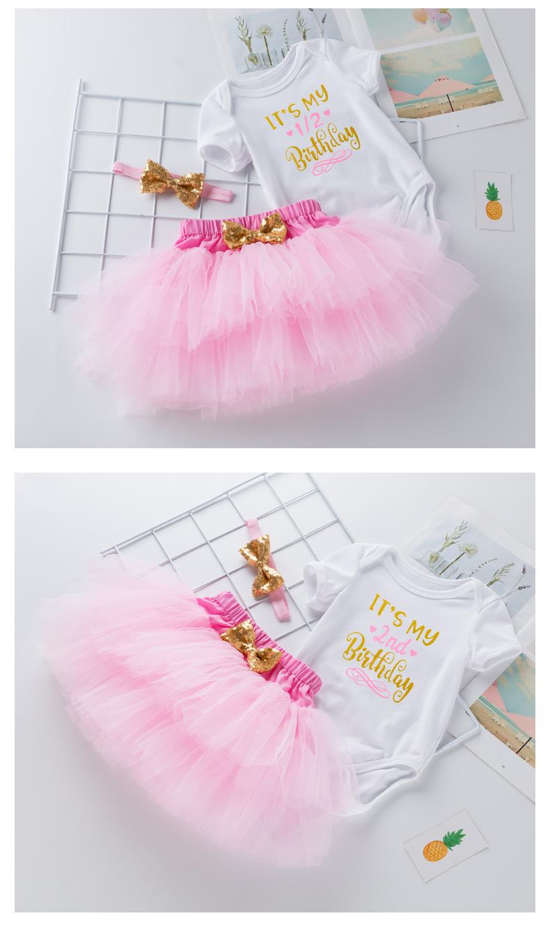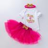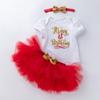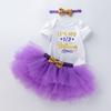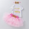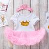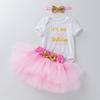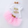 Ropa para Niños Verano Bebé Niña 0-2 Años Carta de Cumpleaños Bata Blanca Vestido de Princesa de Malla Conjunto de 3 Piezas Estilo Princesa