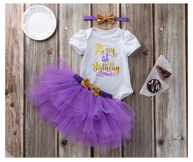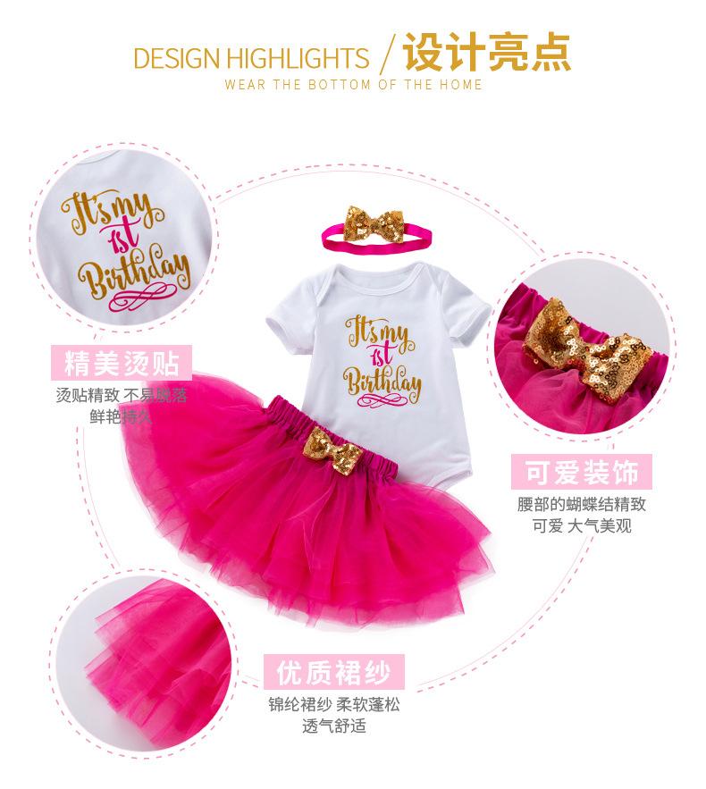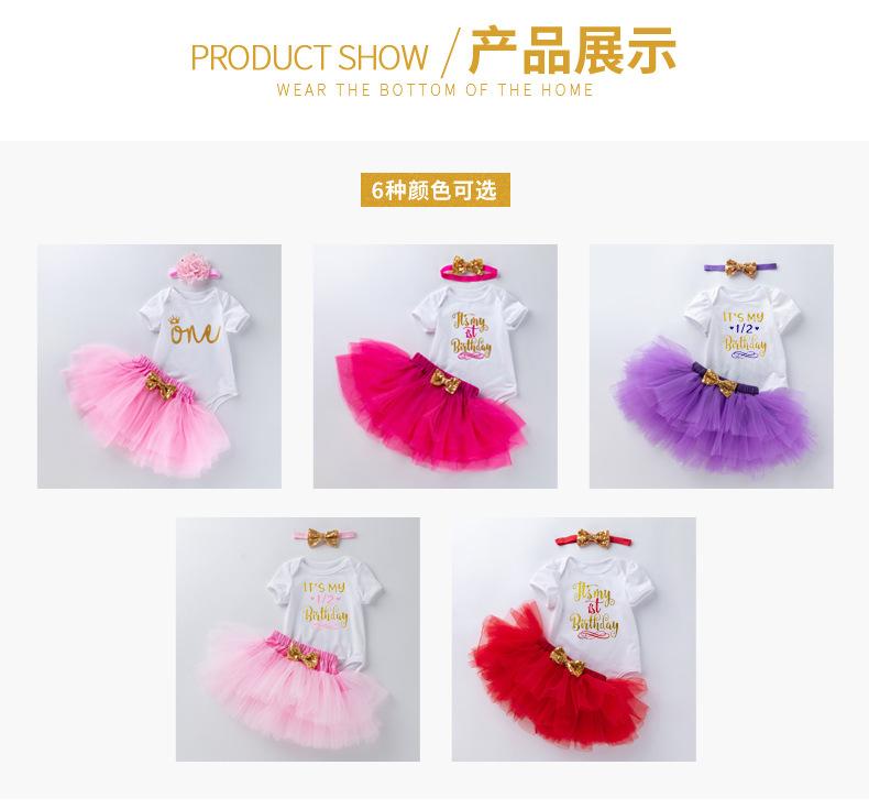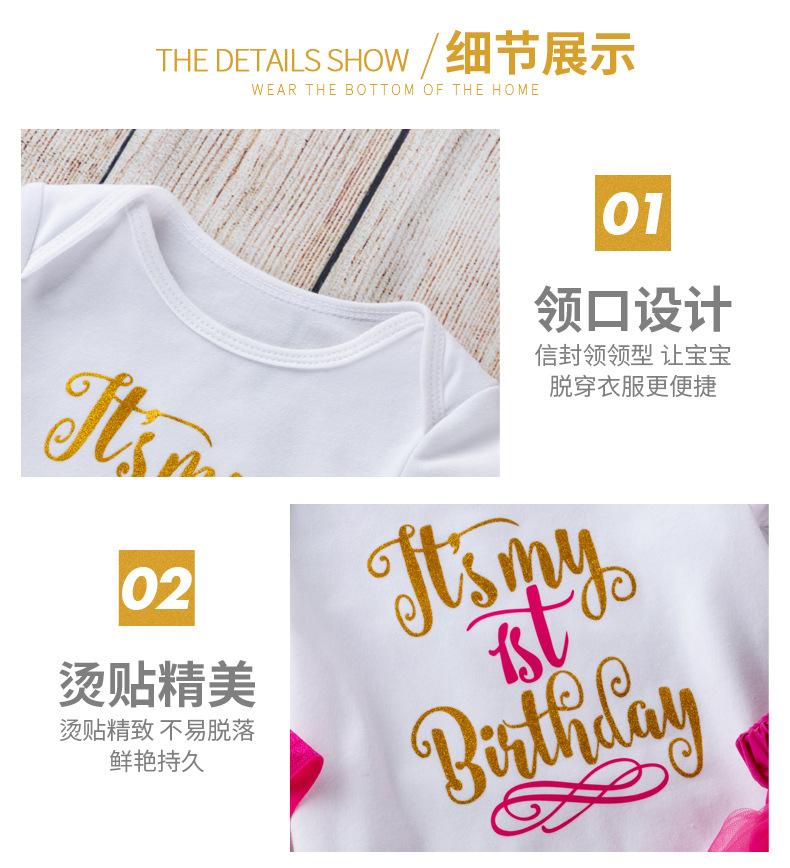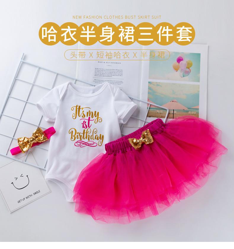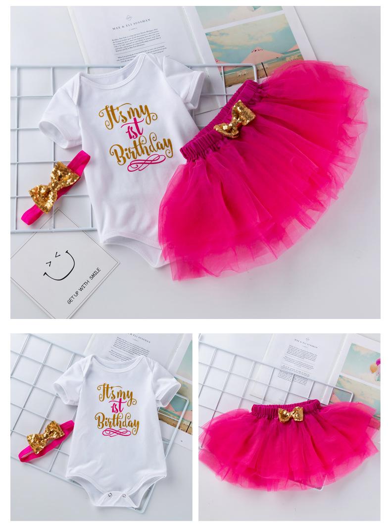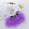 Ropa para Niños Verano Bebé Niña 0-2 Años Carta de Cumpleaños Bata Blanca Vestido de Princesa de Malla Conjunto de 3 Piezas Estilo Princesa