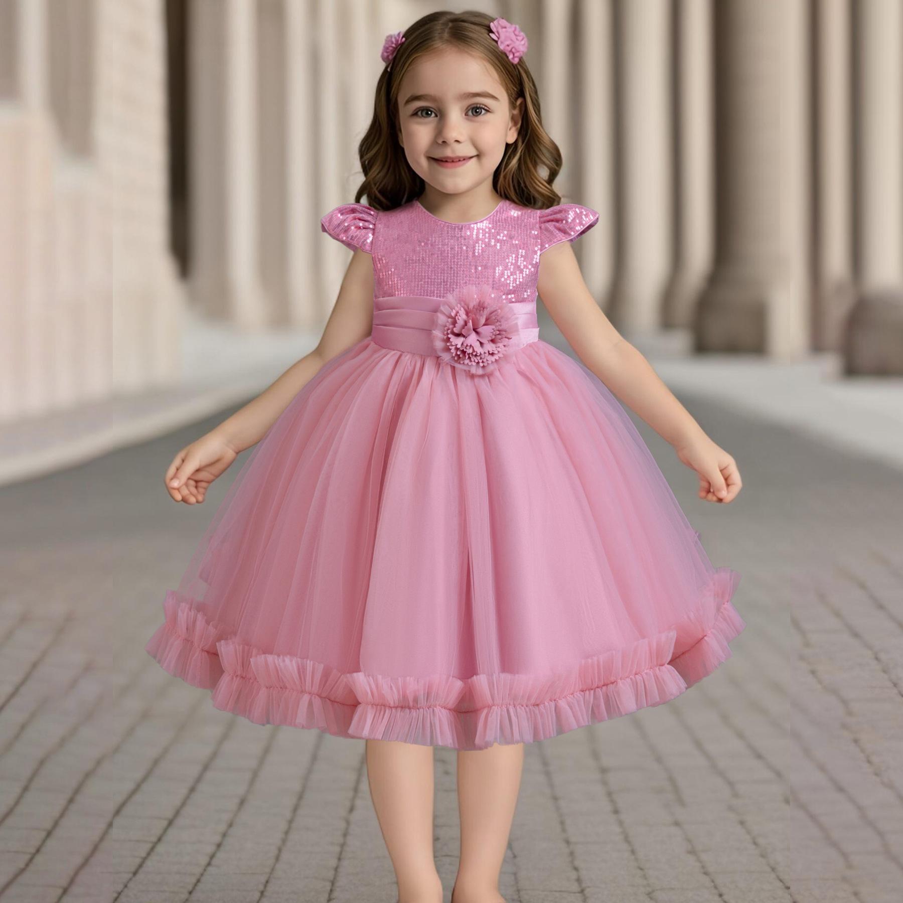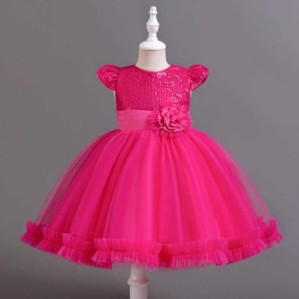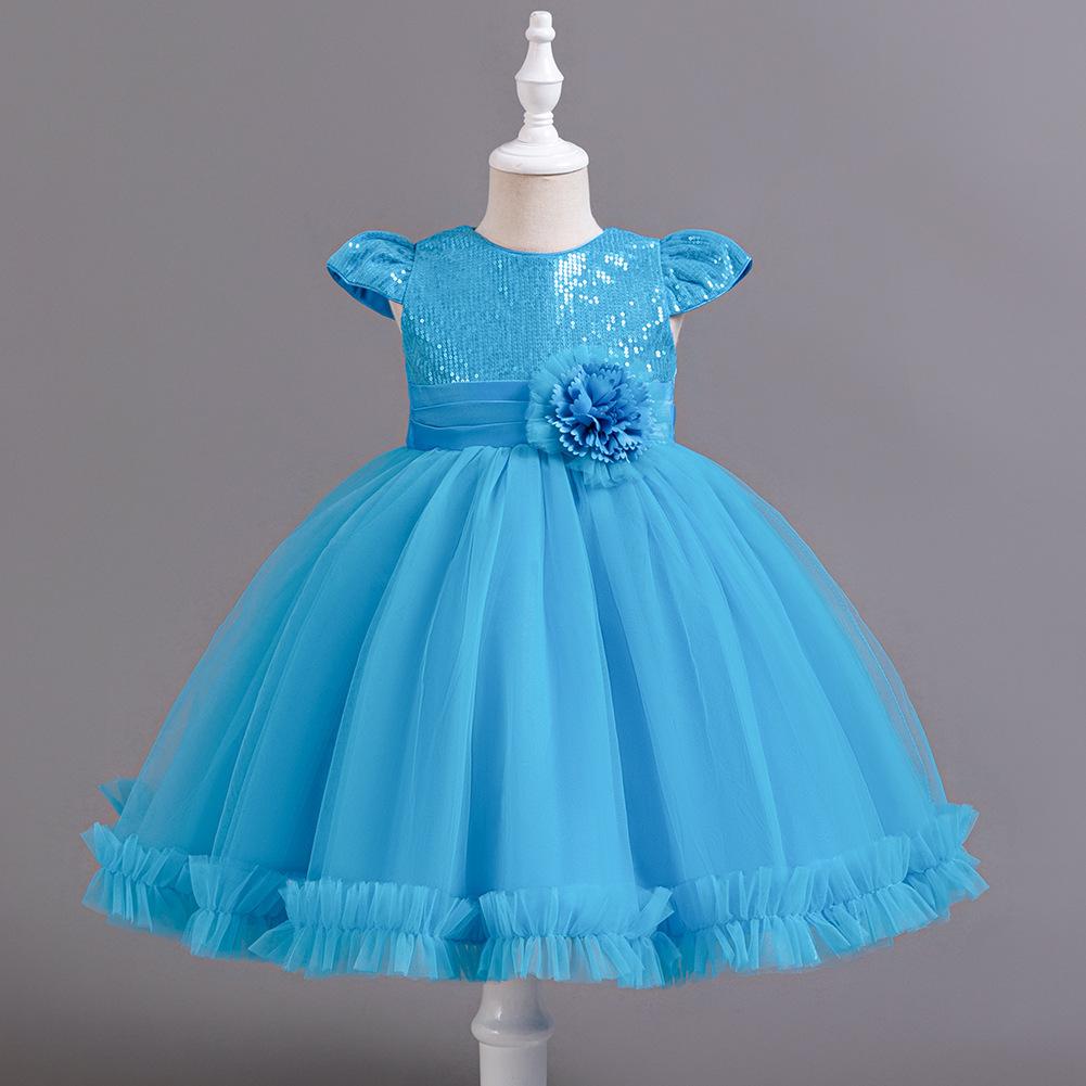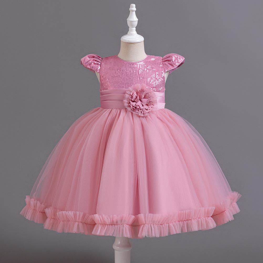Vestido de niña de manga corta con lentejuelas y flores, vestido de princesa con vuelo, para pasarela, banquete, fiesta de cumpleaños, 930