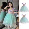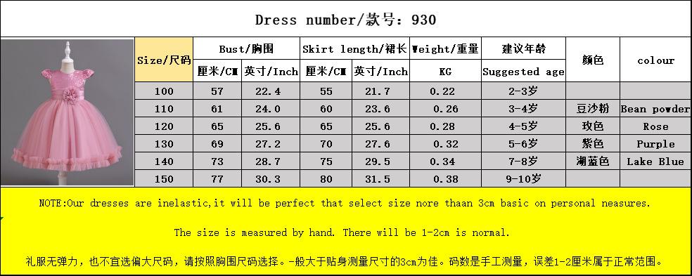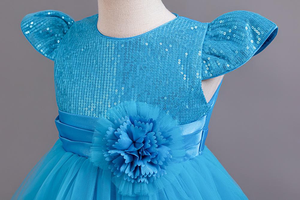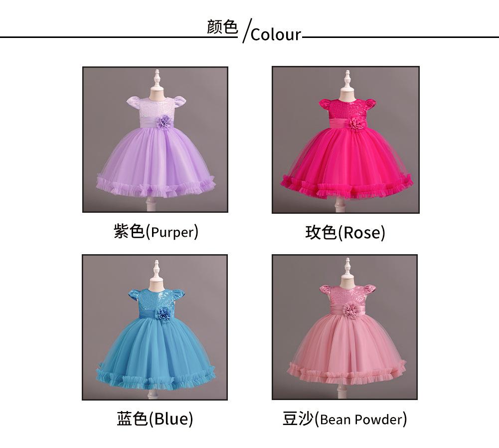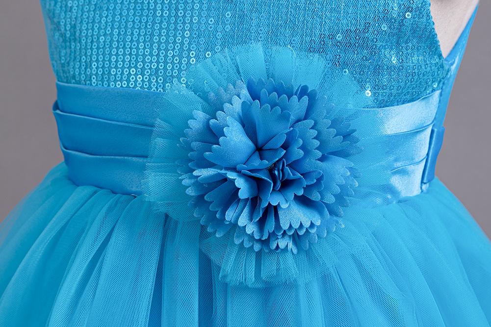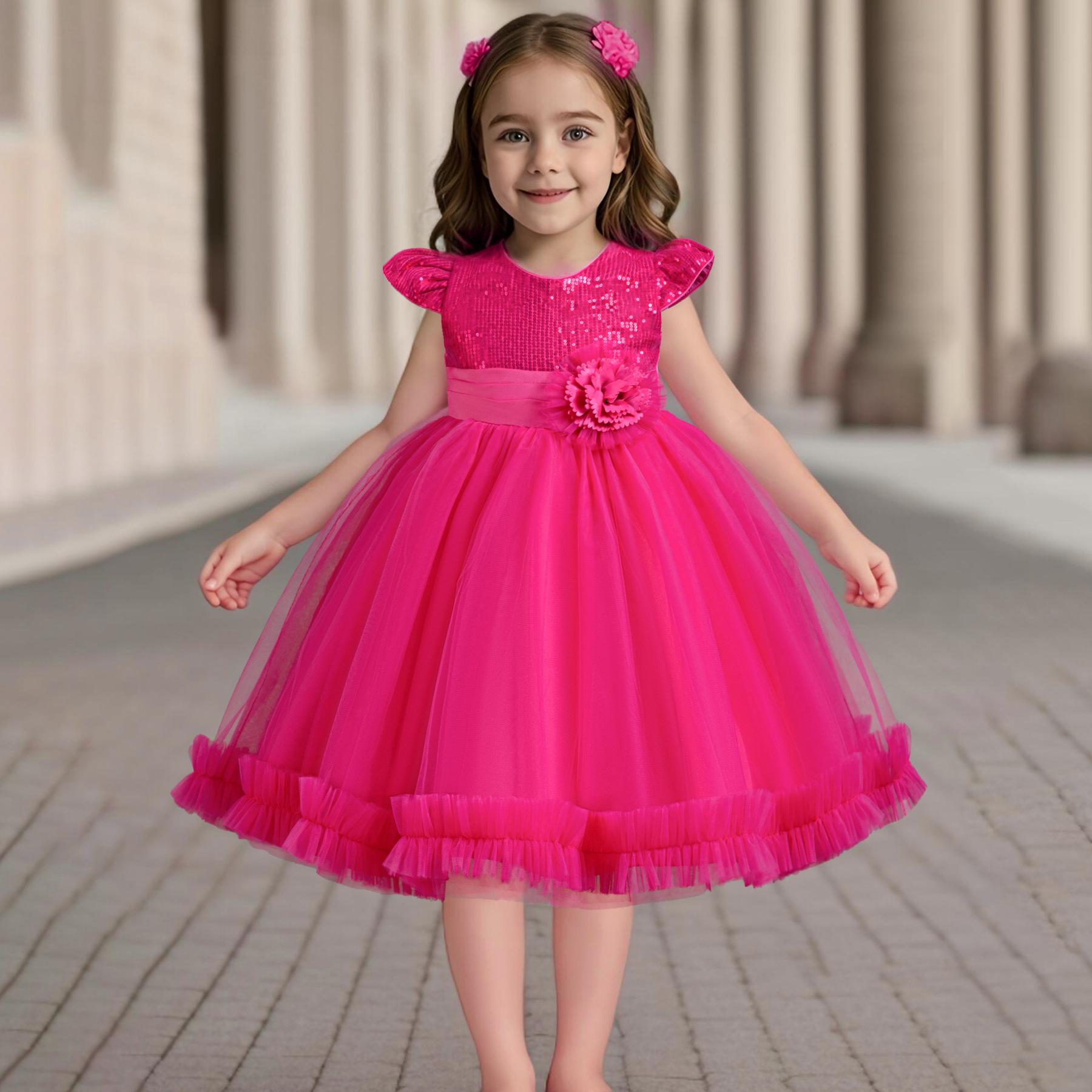 Vestido de niña de manga corta con lentejuelas y flores, vestido de princesa con vuelo, para pasarela, banquete, fiesta de cumpleaños, 930