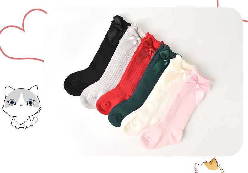 Calcetines para niños, medias de primavera y otoño, calcetines para bebés, calcetines de algodón con lazo de viento de princesa coreana para niñas, venta al por mayor
