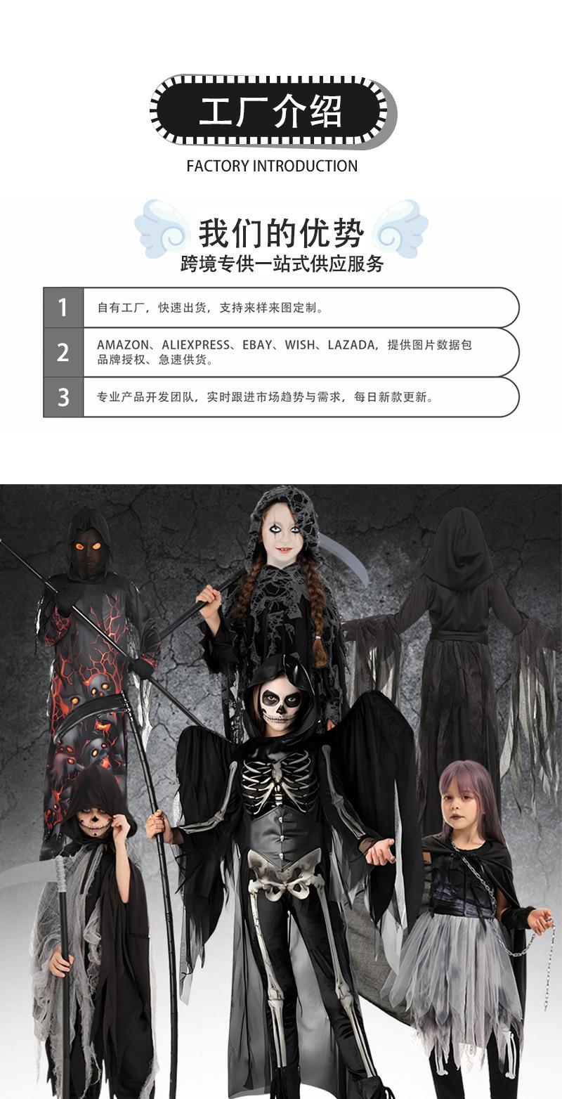 Disfraz de Halloween de miedo para niños, disfraz de rol de muerte, disfraz de cosplay para jardín de infantes, disfraz de fiesta navideña