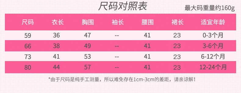 59/S(0-3 months), 66/M(3-6 months), 73/L(6-12 months), 80/XL(12-24 months)