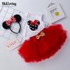 Conjunto de 3 piezas de ropa de verano sin mangas para niña, falda de malla de color liso con diadema, elegante traje de cumpleaños para bebé