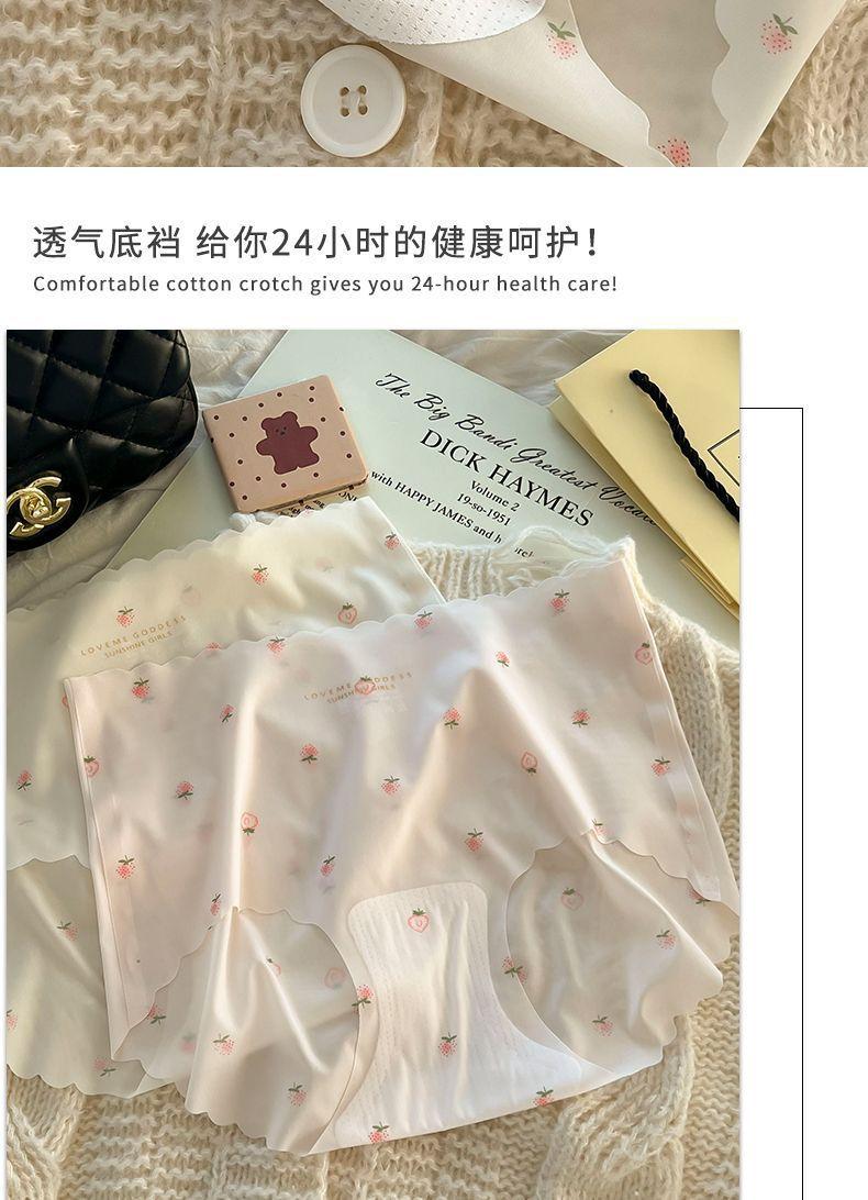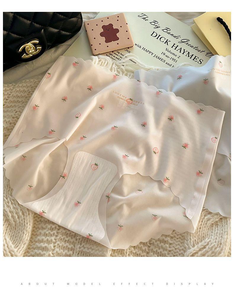 Ropa Interior de Verano sin Costuras de Seda de Hielo para Mujer Chica Fresa Sexy Cadera Durazno Pantalones Máscara 3D Ropa Interior Chica Cadera Desnuda