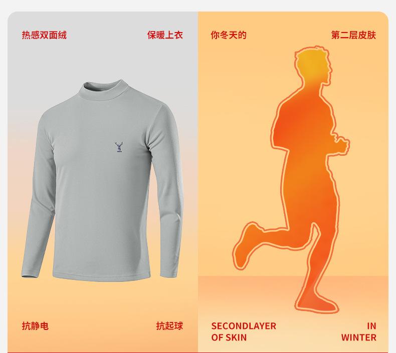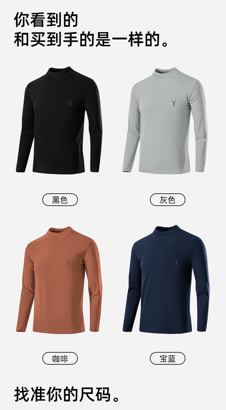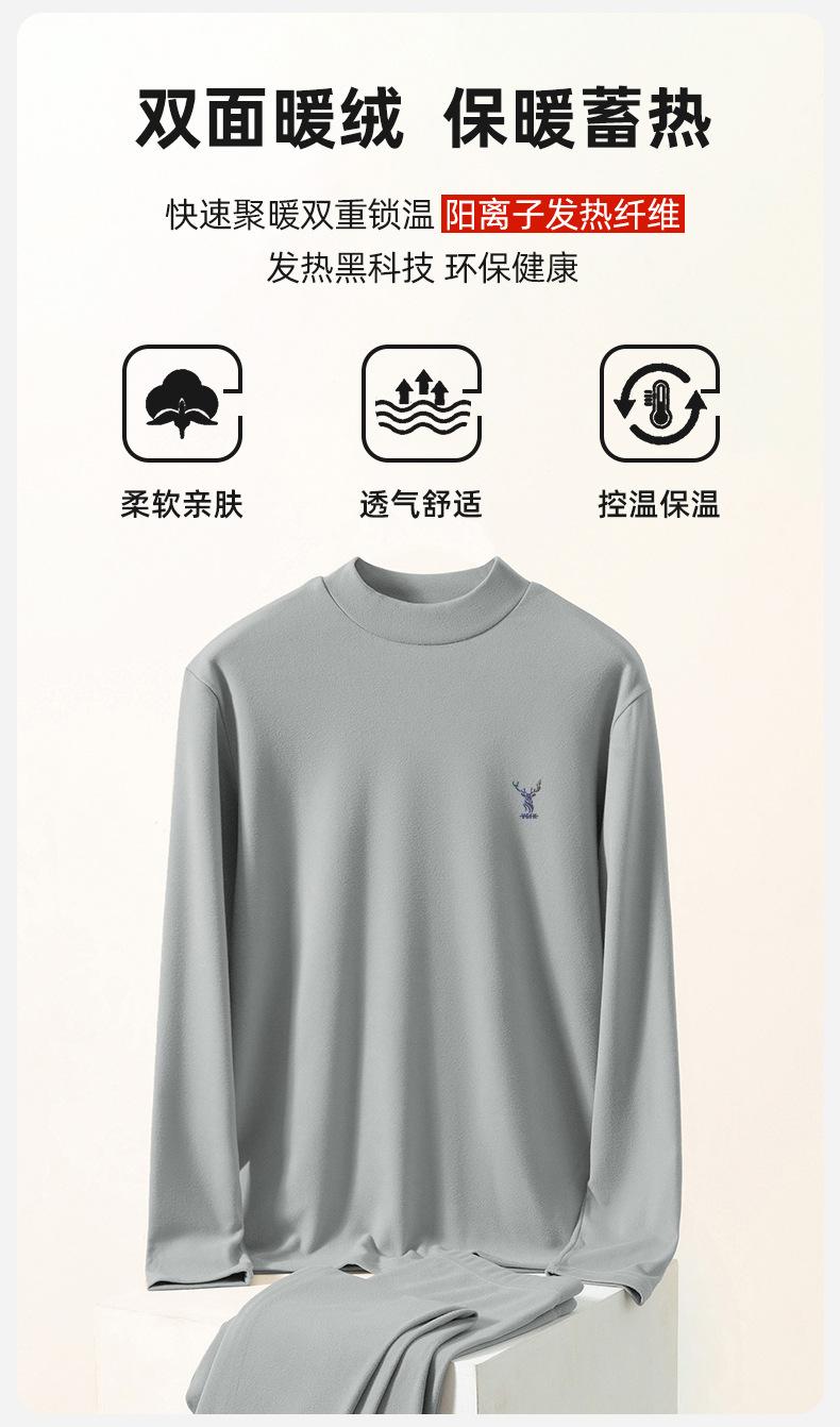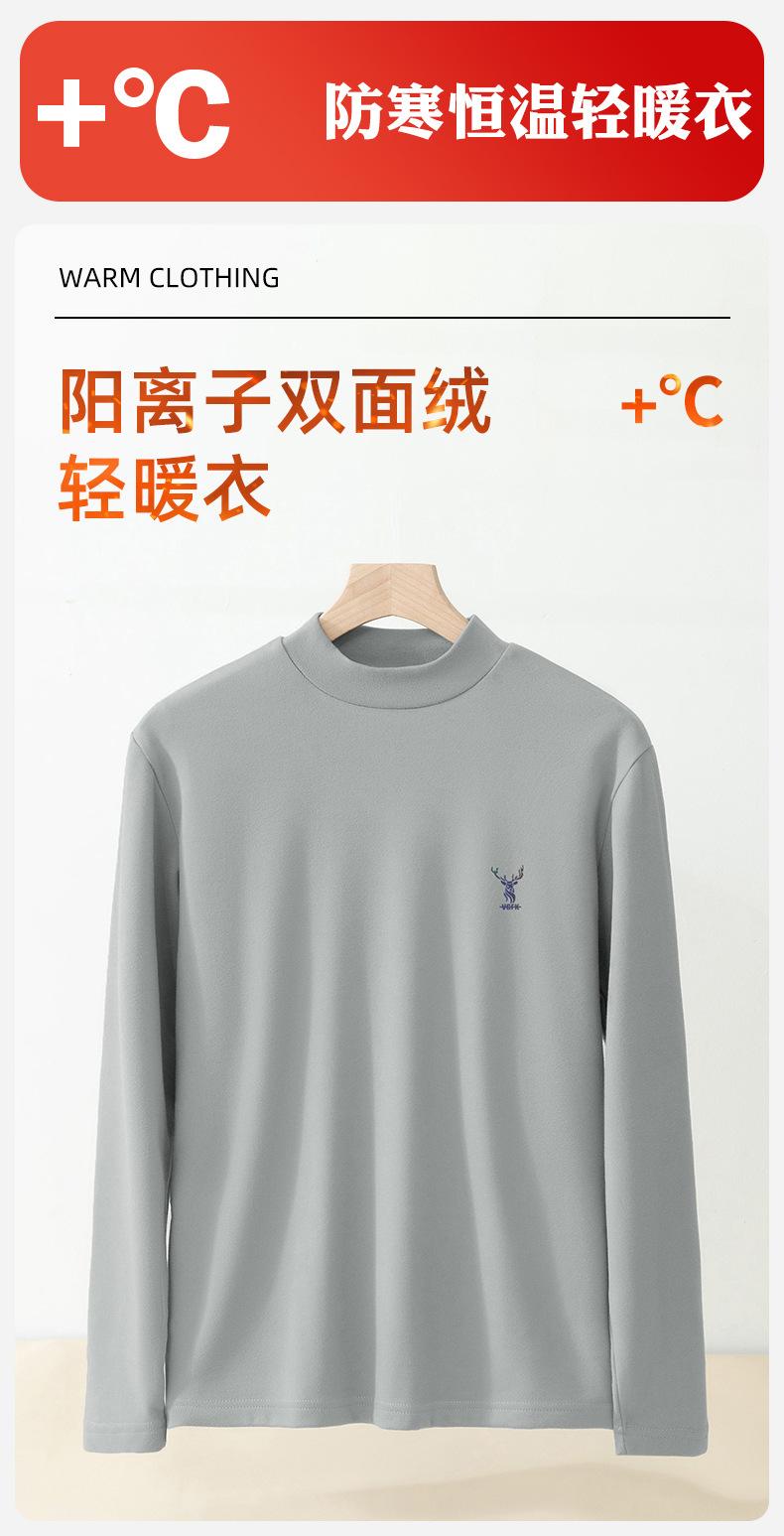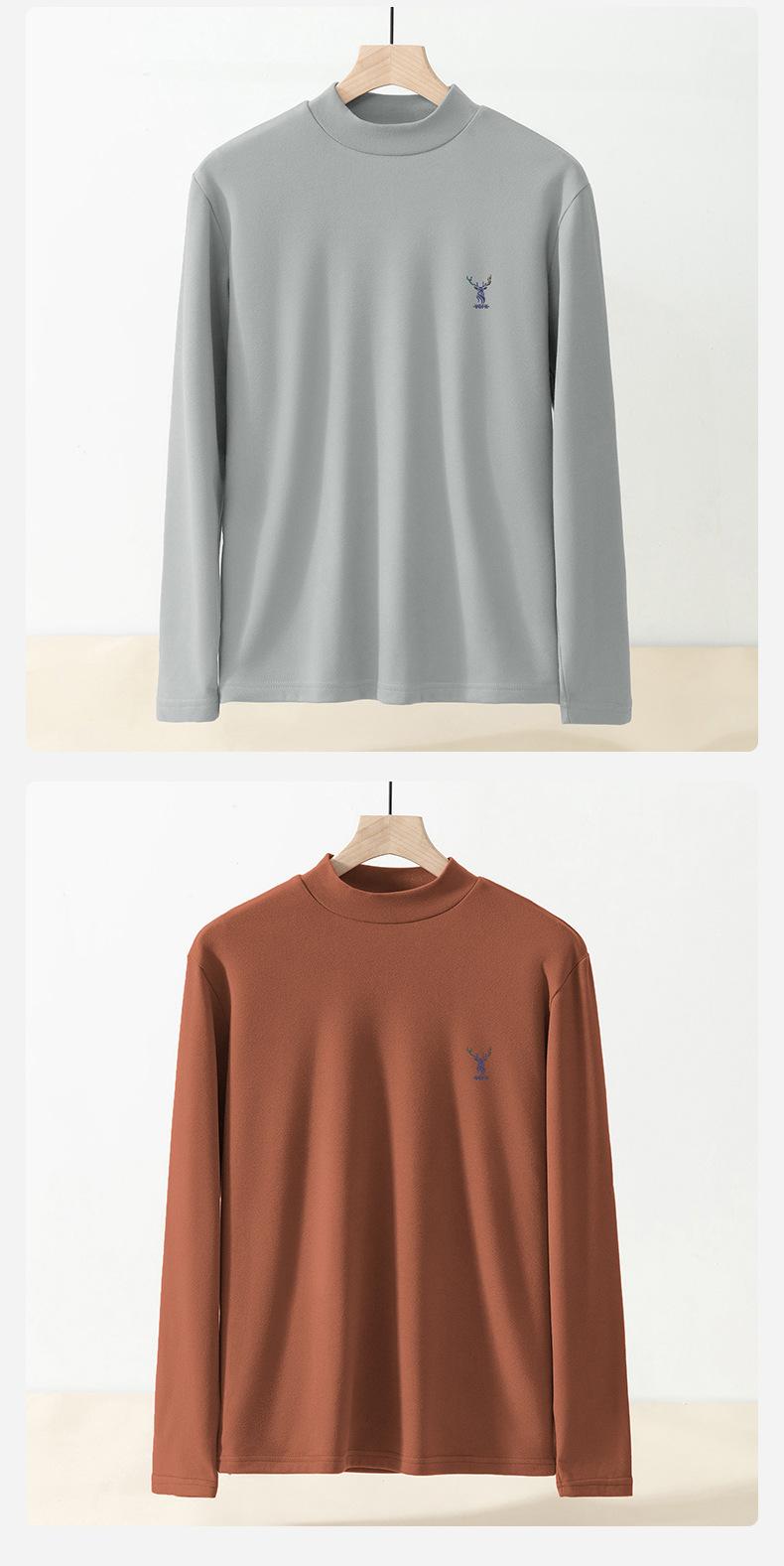 Ropa Interior Térmica para Hombre Camiseta de Manga Larga con Cuello Semi-alto Terciopelo de Doble Cara Base Interior Calentamiento de Temperatura Constante a Prueba de Frío Ropa de Otoño de Cuello Medio