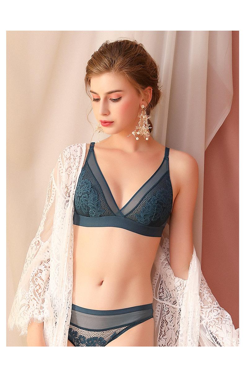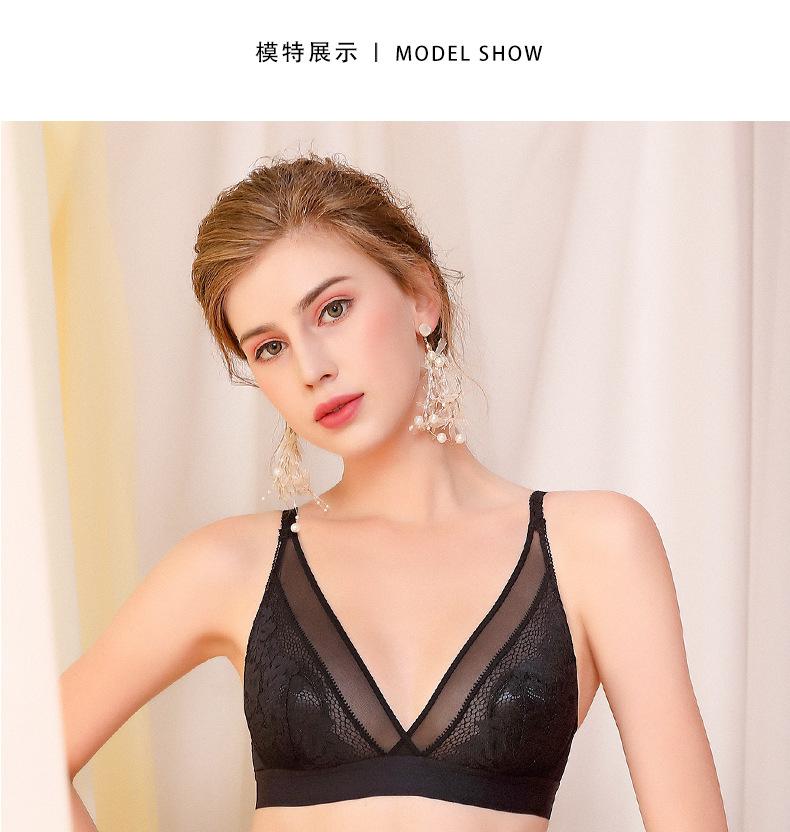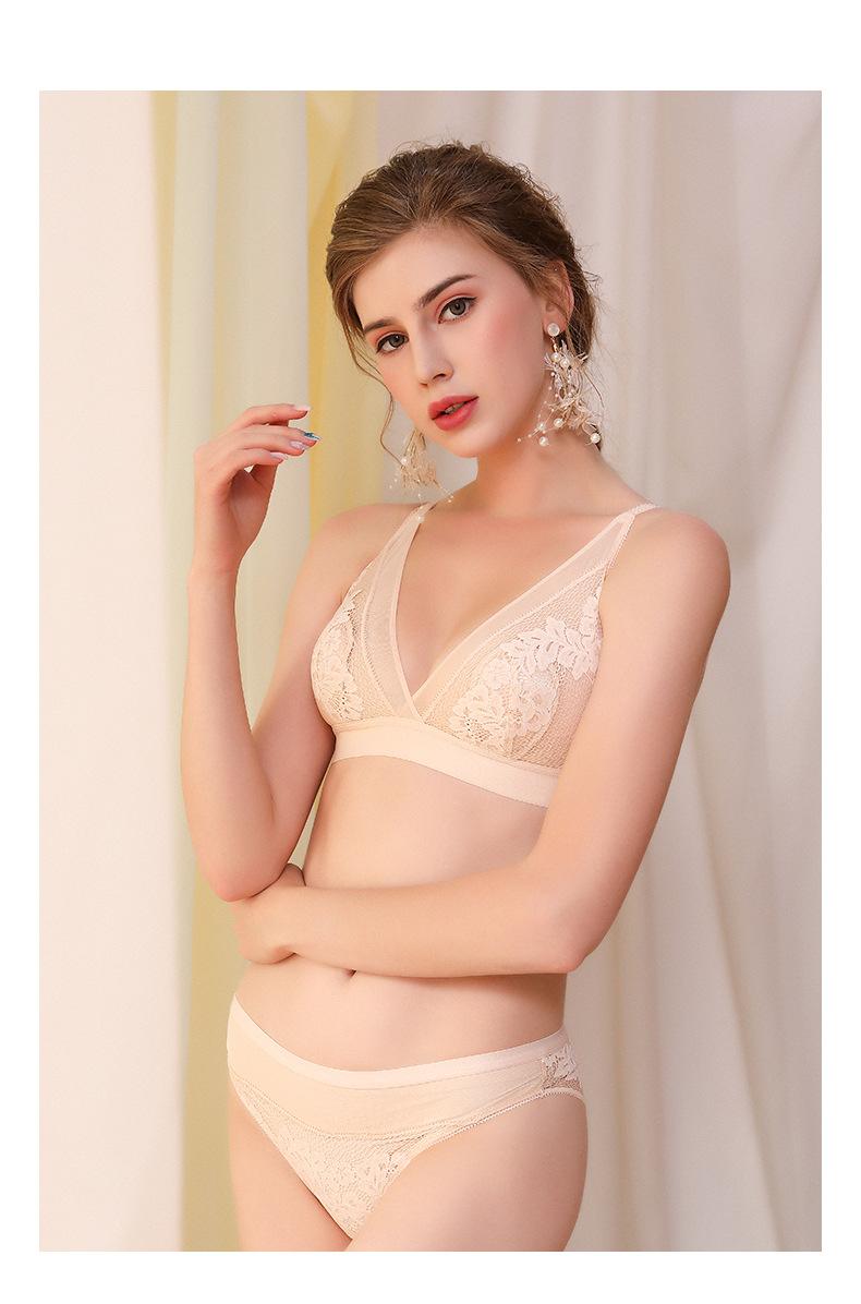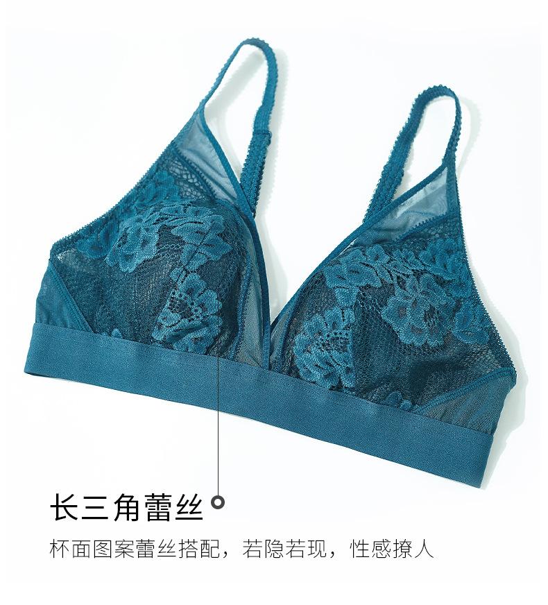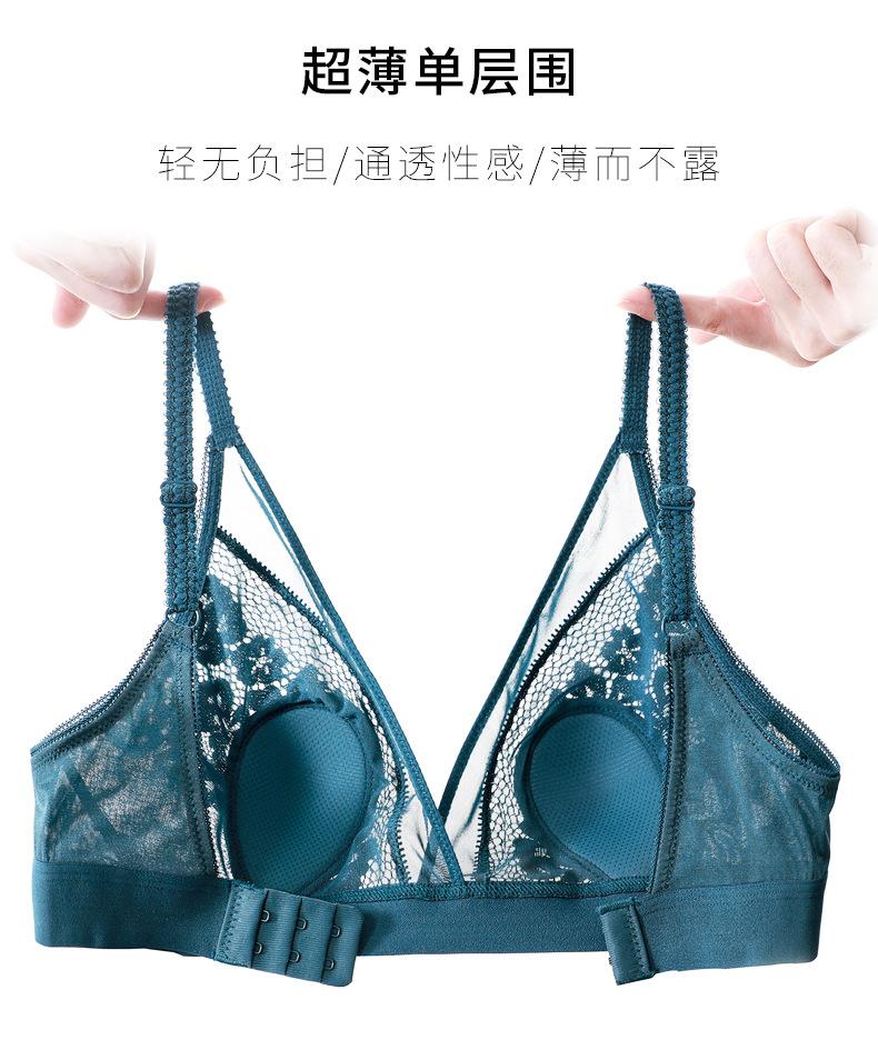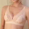 Ropa interior inalámbrica para mujer, sujetador de copa triangular francesa con realce pequeño y pecho grande, sujetador ultrafino de encaje sexy