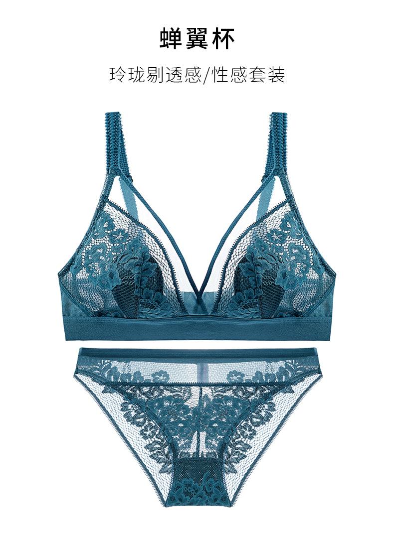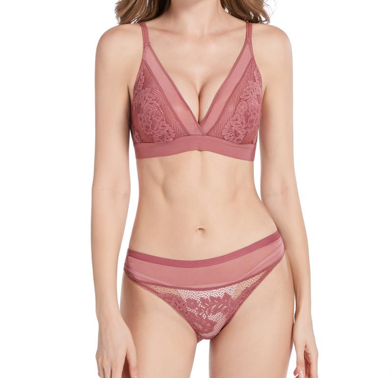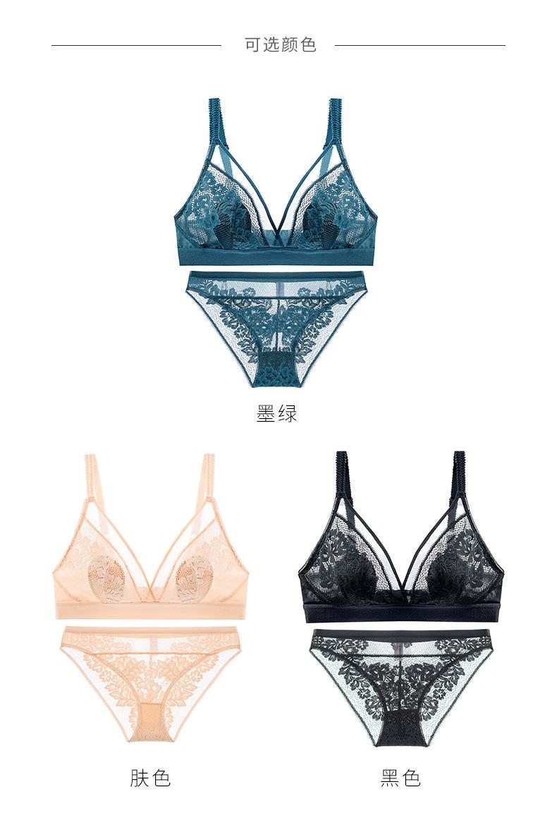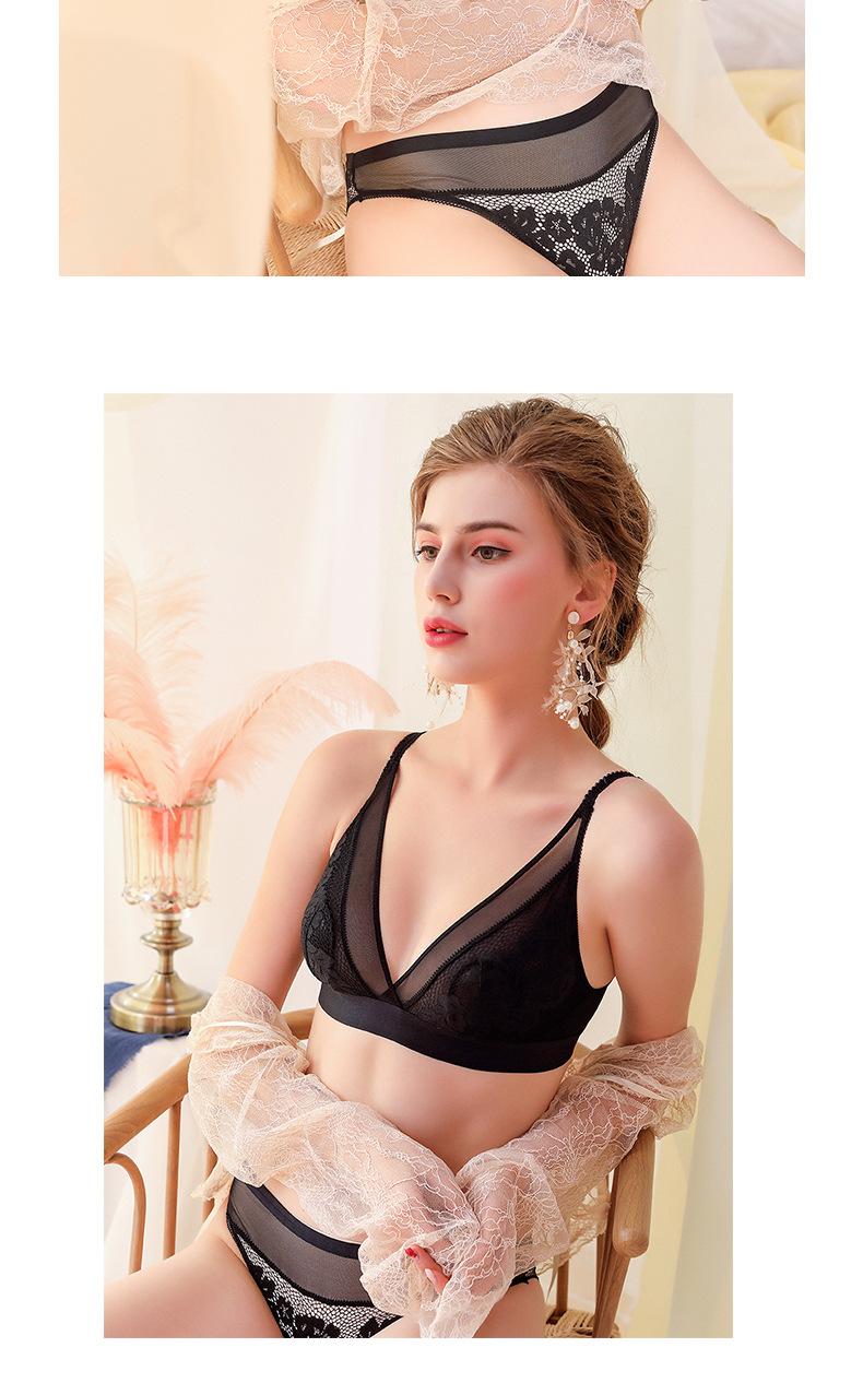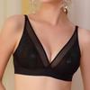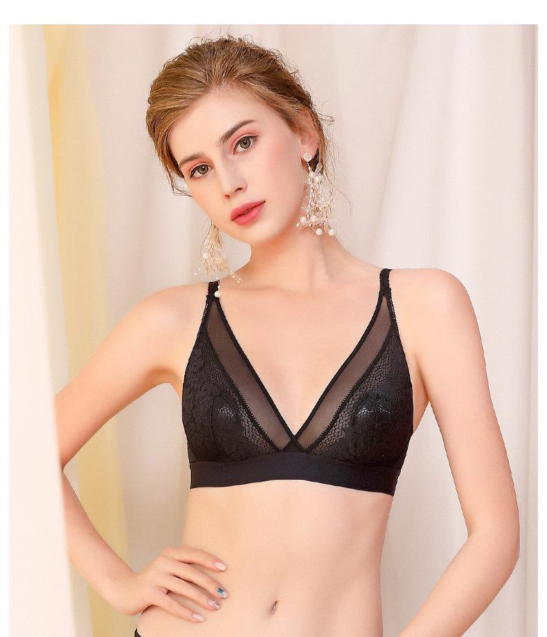 Ropa interior inalámbrica para mujer, sujetador de copa triangular francesa con realce pequeño y pecho grande, sujetador ultrafino de encaje sexy