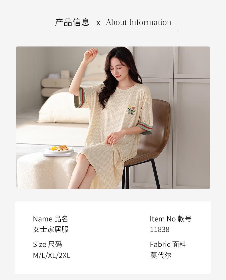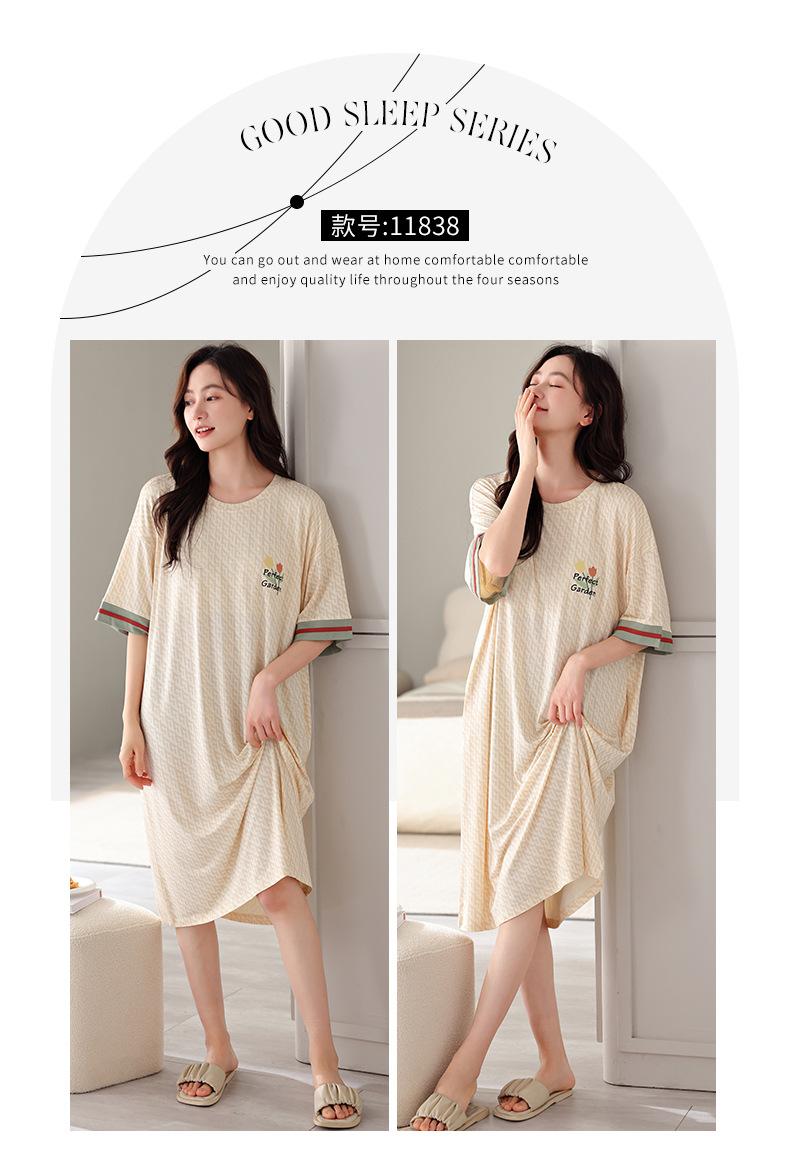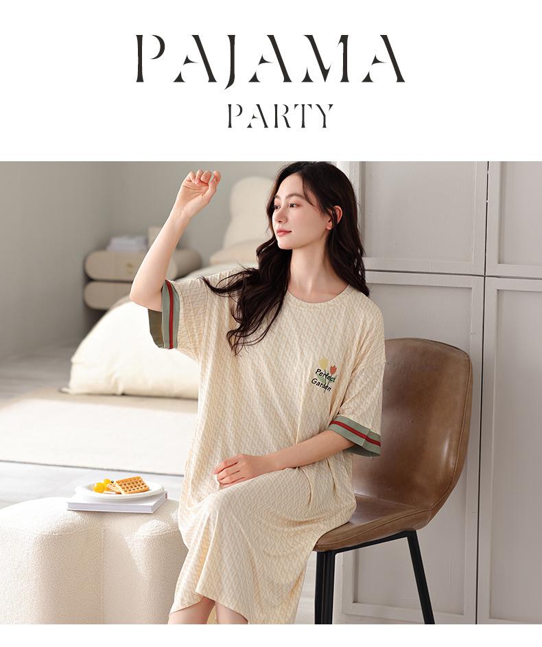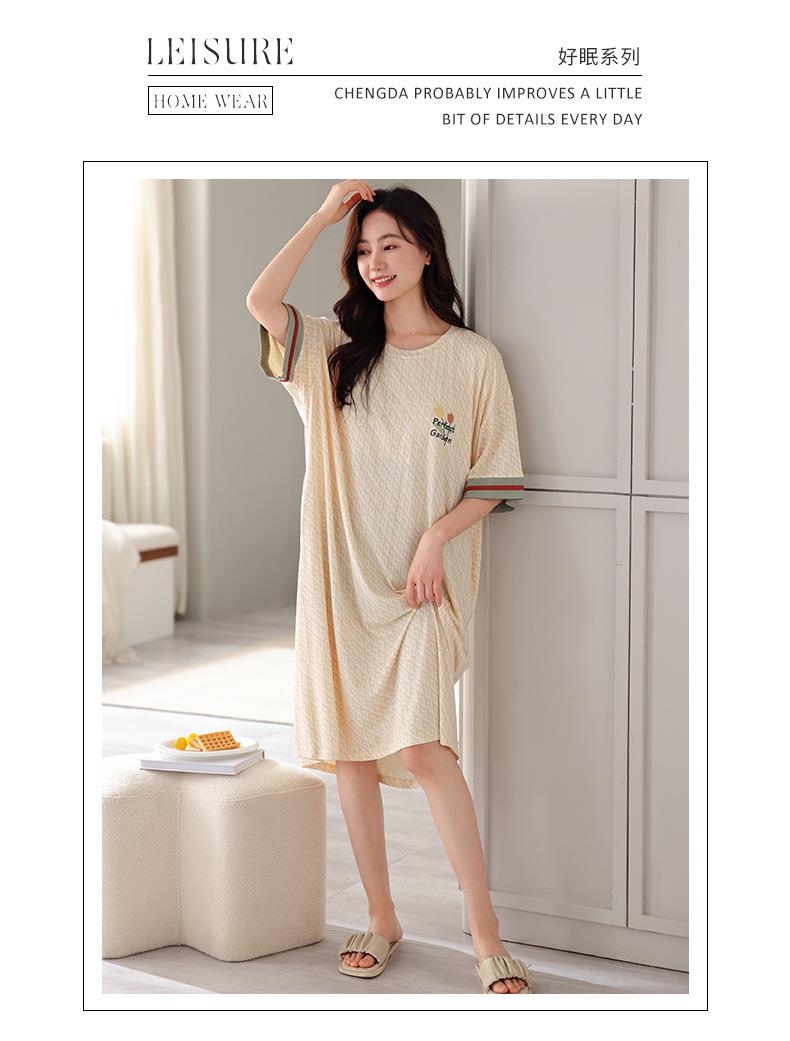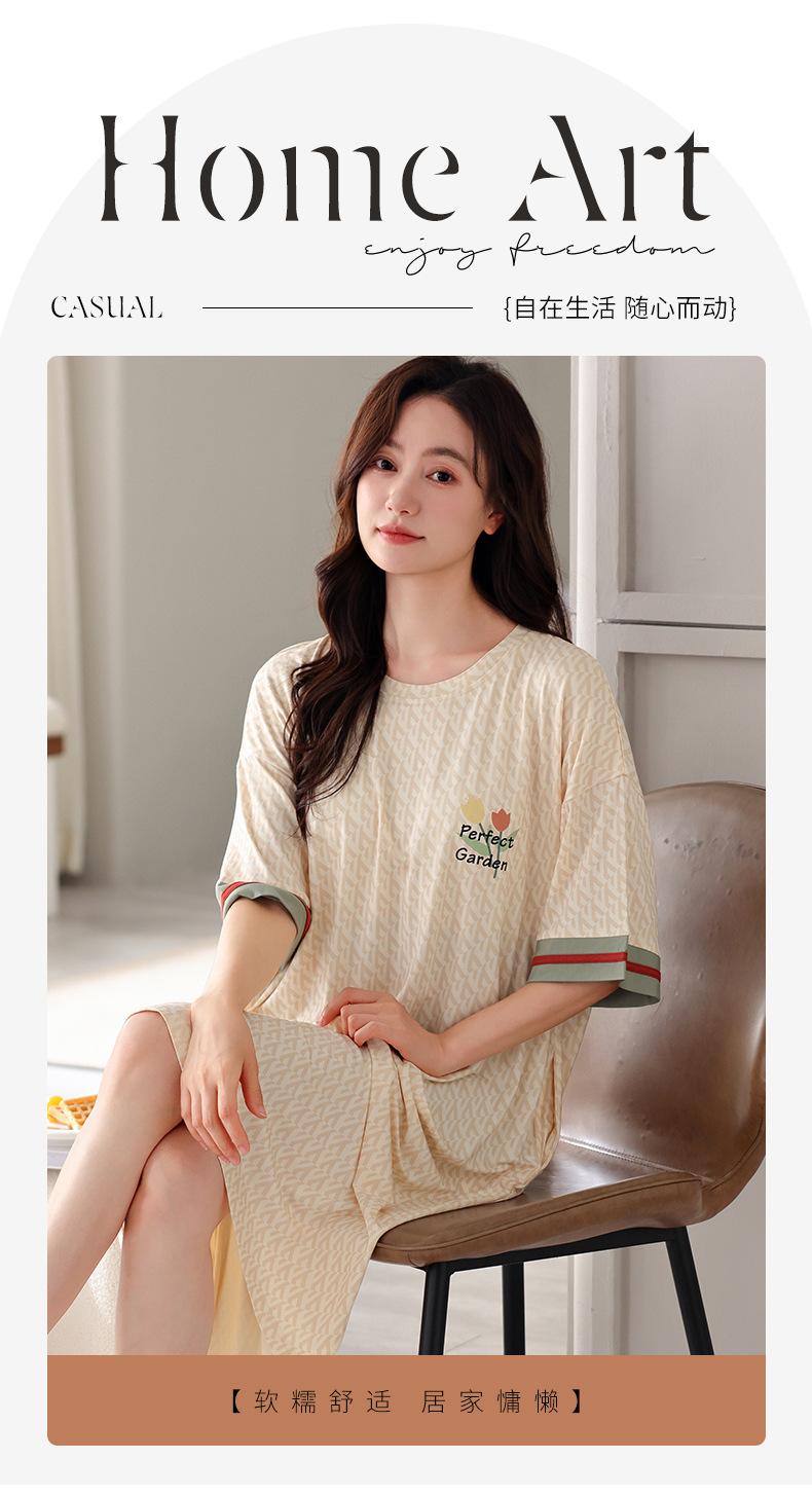 Nuevo camisón de manga corta para niñas, modal, fino, coreano, informal, dulce, de longitud media, ropa para el hogar