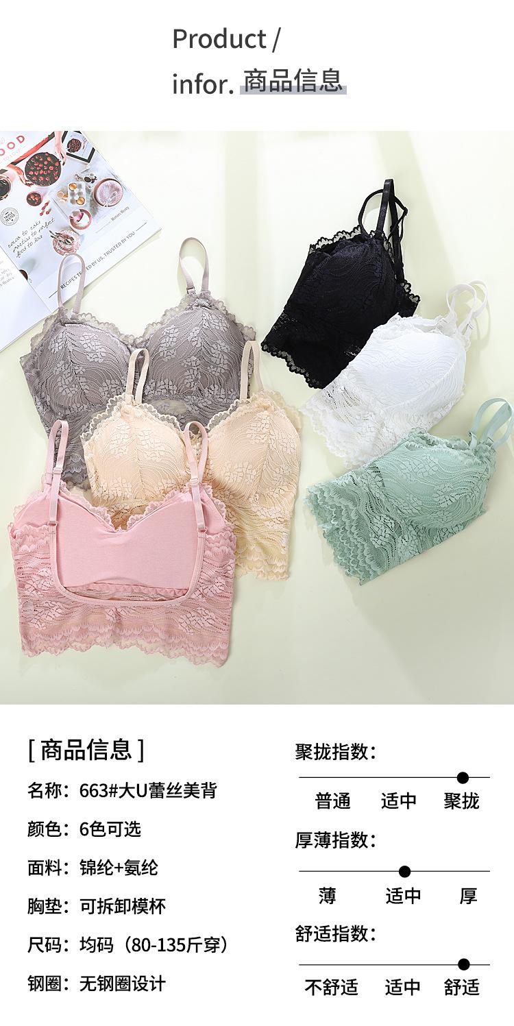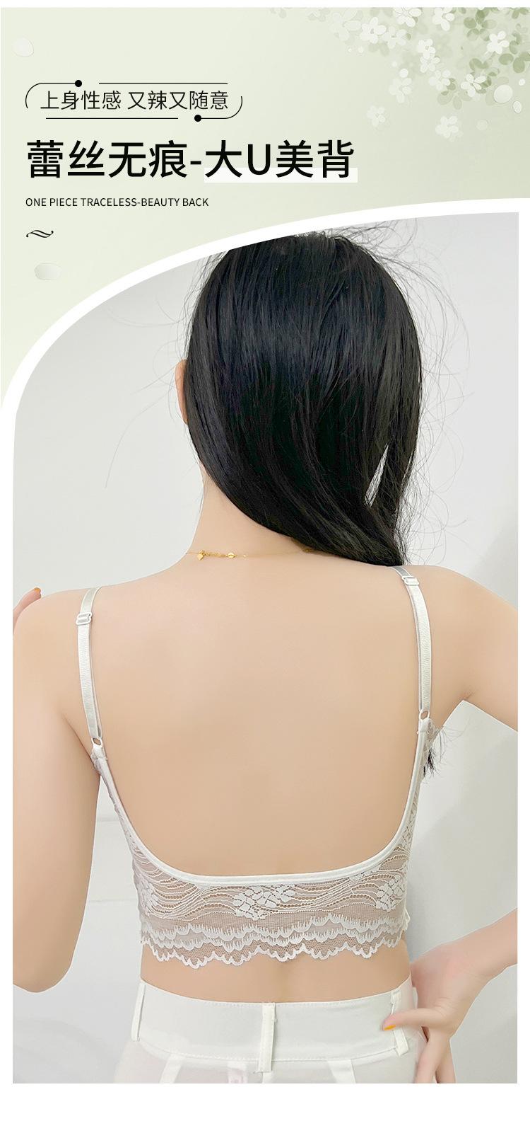 Ropa interior de tubo con encaje en la espalda, grande, sin espalda, hermosa, para mujer, sin costuras, transpirable, fina, fruncida, cómoda, sexy, con tiras grandes en forma de U para el pecho.