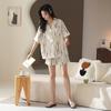 Verano Nuevo Estilo Solapa Seda de Hielo Cardigan para Niña Sencillo Casual Ropa para el Hogar Conjunto de Pijama Se Puede Usar Afuera Dropshipping