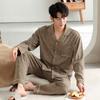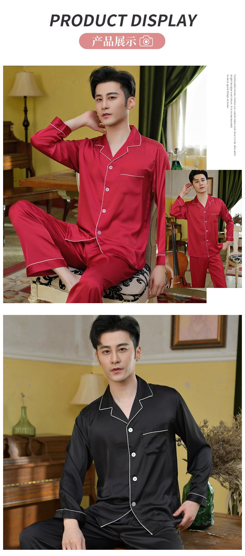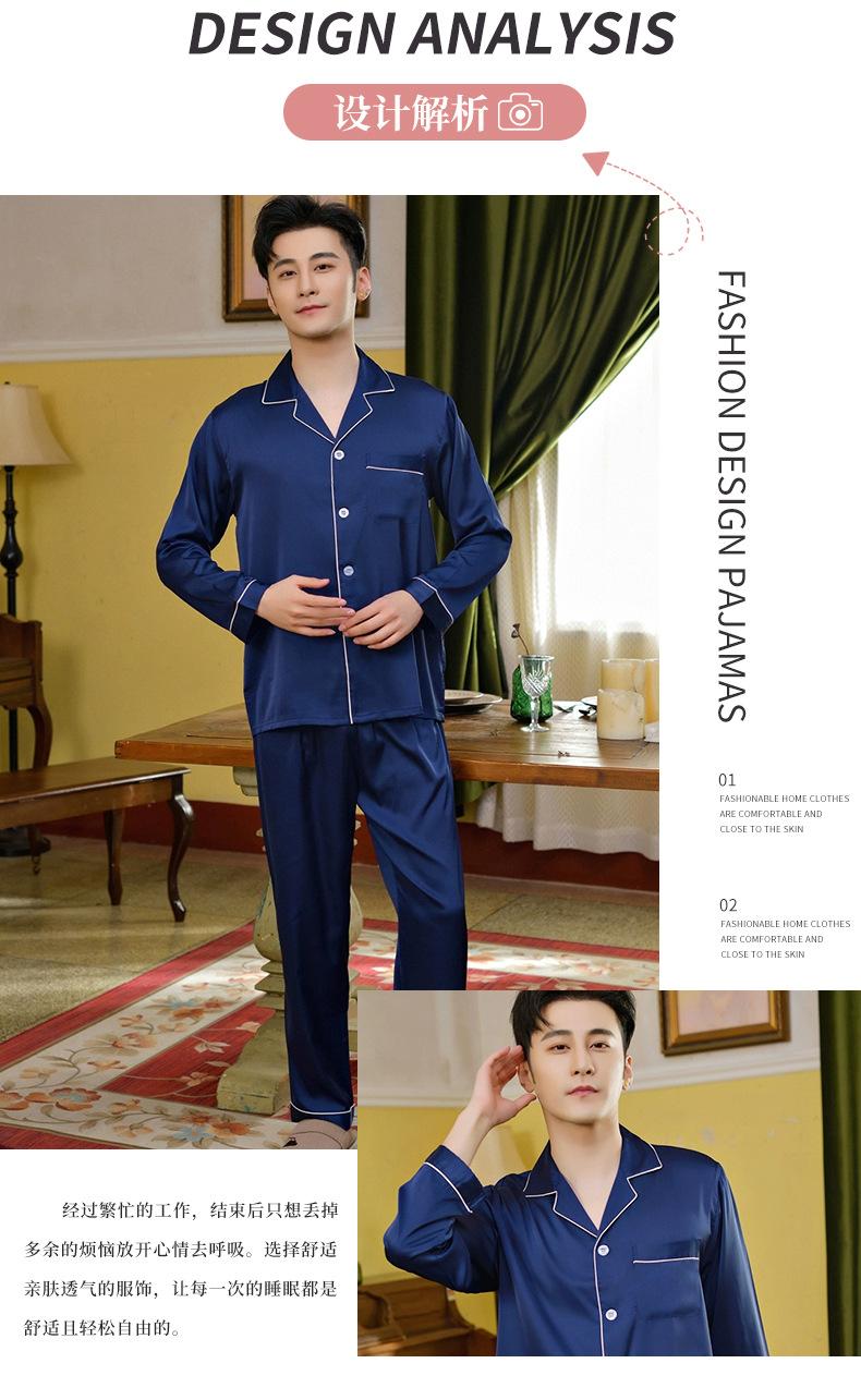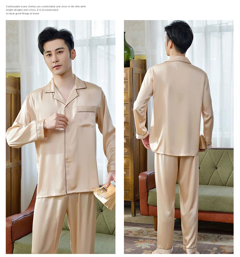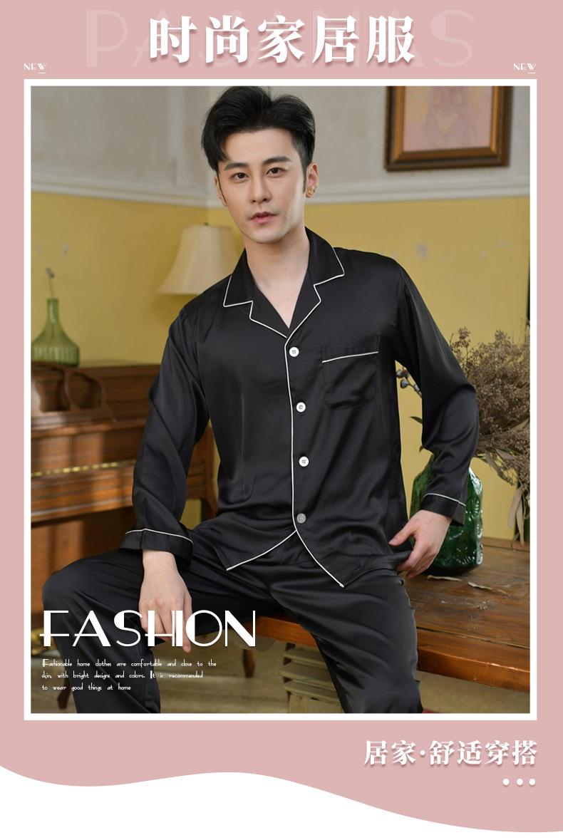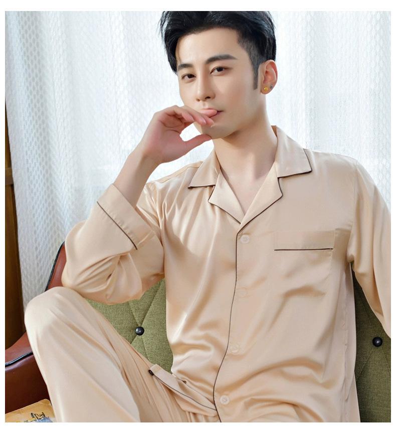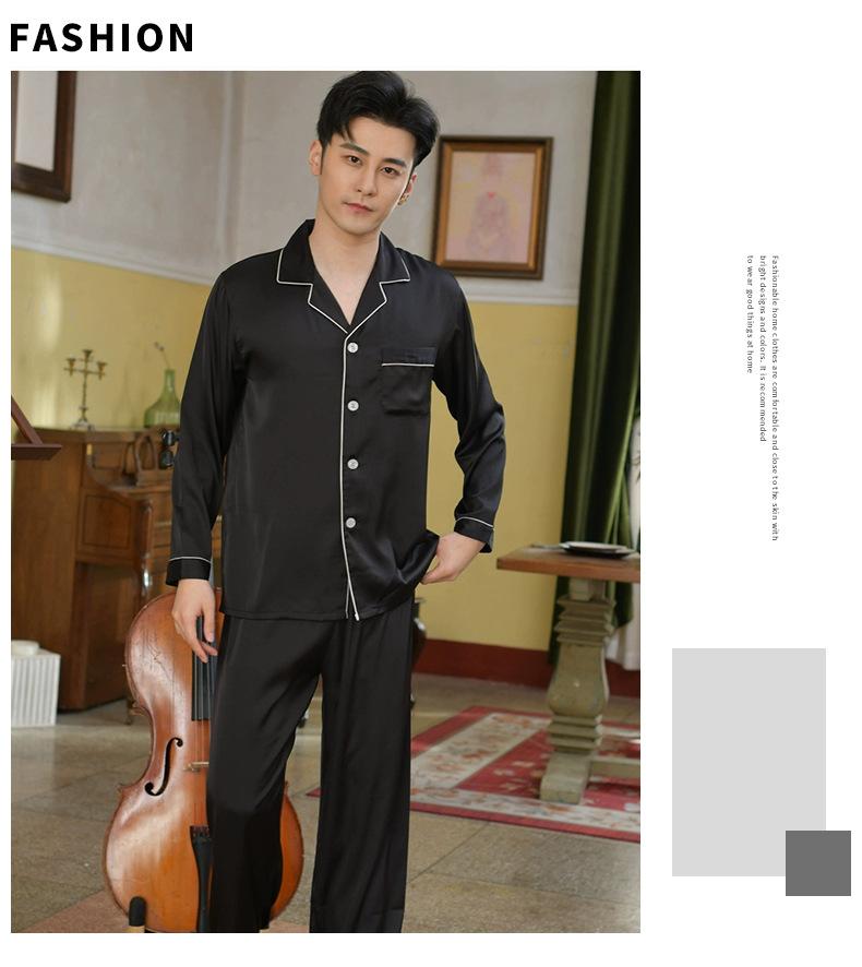 Pijama de seda ligero de lujo para hombre, pantalones de manga larga con solapa, ropa de casa cómoda y agradable para la piel, fábrica al por mayor