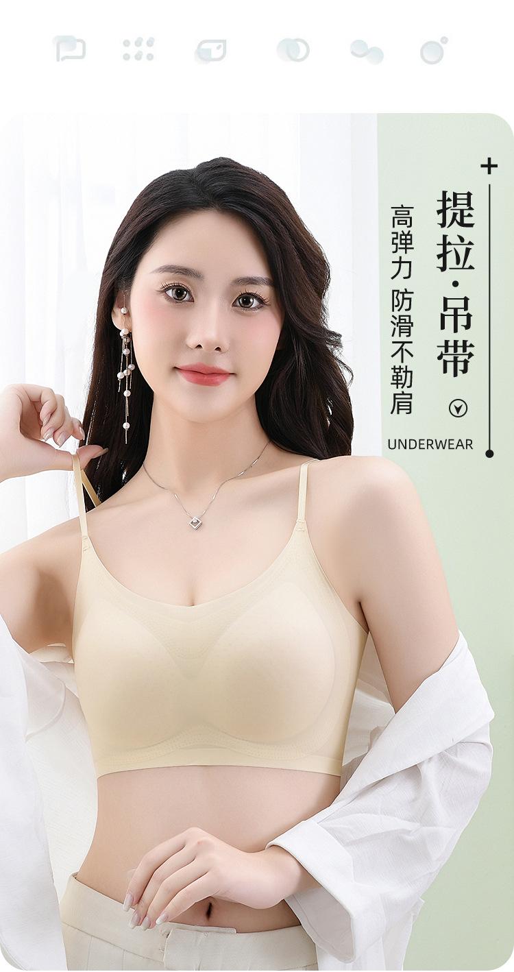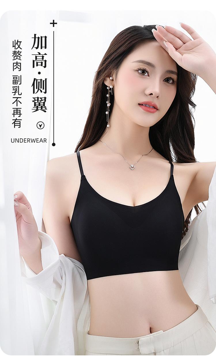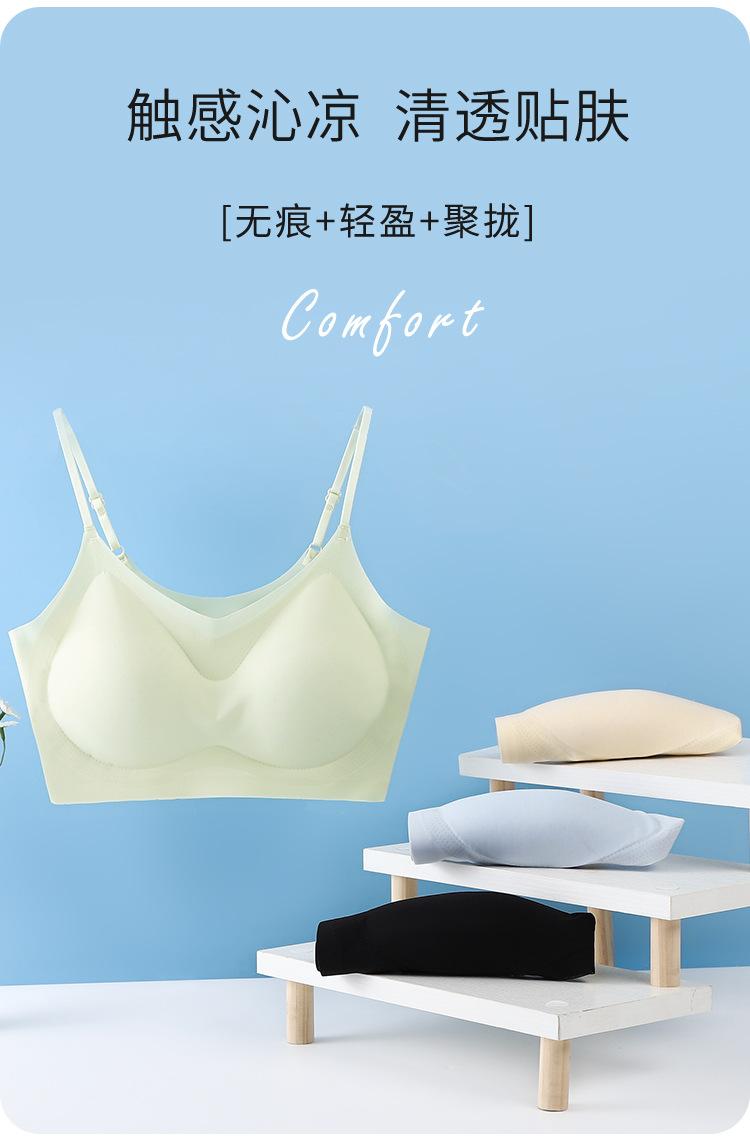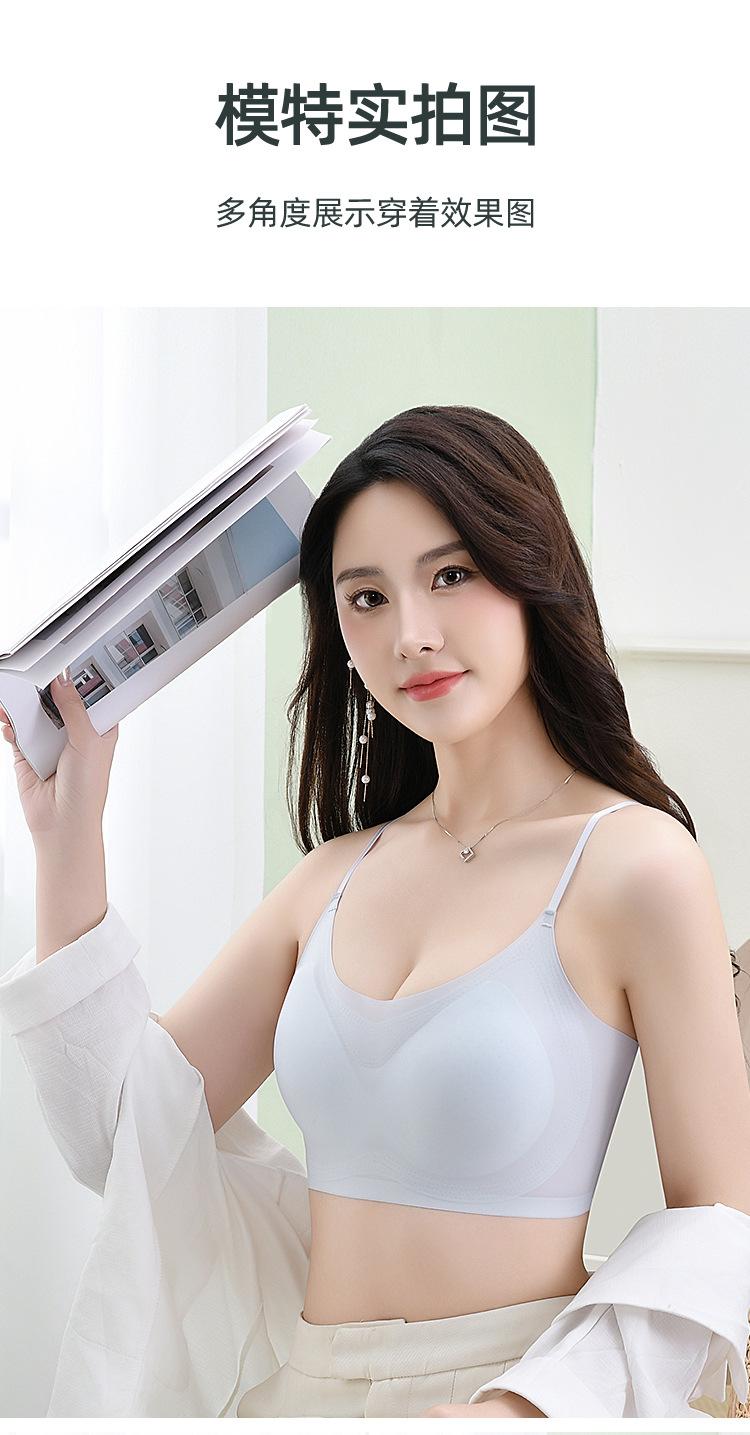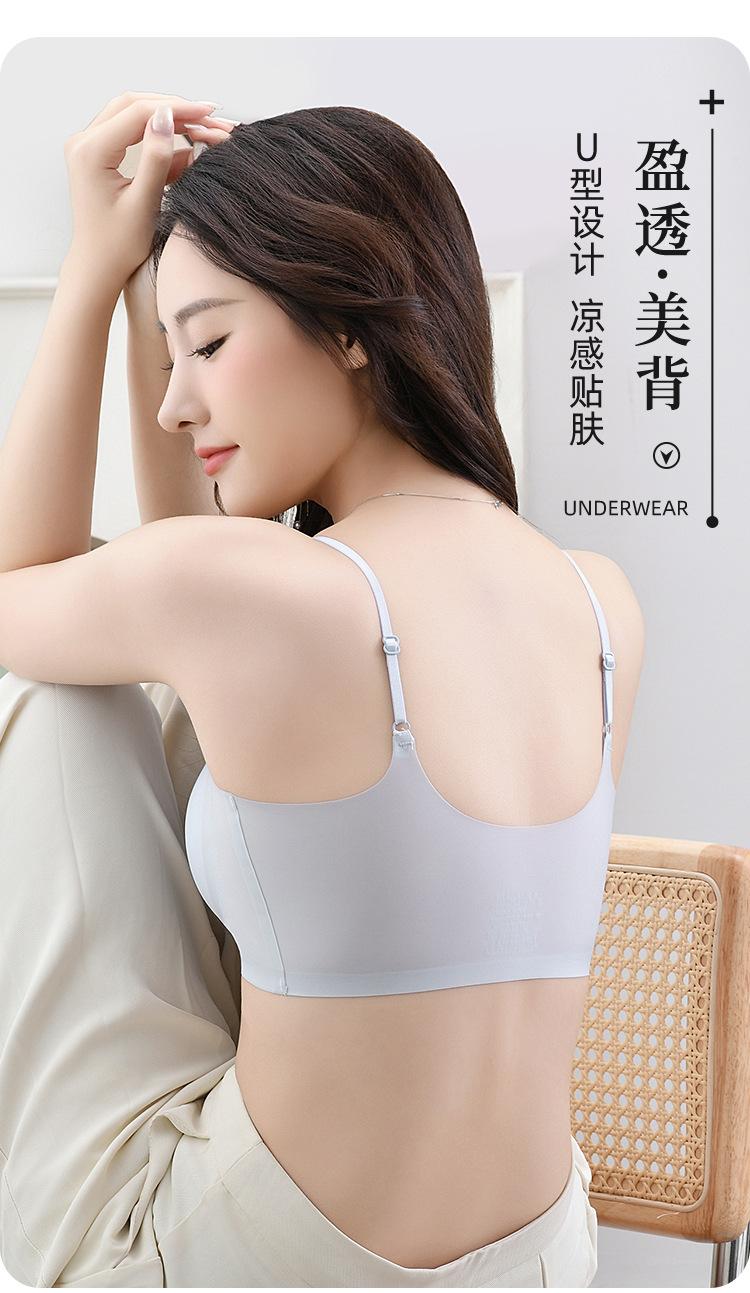 Ropa interior de látex con espalda descubierta para mujer, sujetador de una pieza con copa fija, sin marcas, de seda helada, sexy, de verano