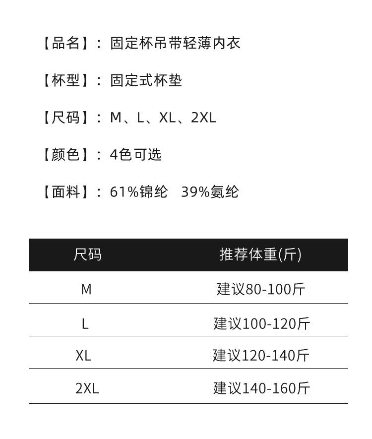 M (40.00 kg-50.00 kg, L (50.00 kg-60.00 kg, XL (60.00 kg-70.00 kg, XXL (70.00 kg-80.00 kg