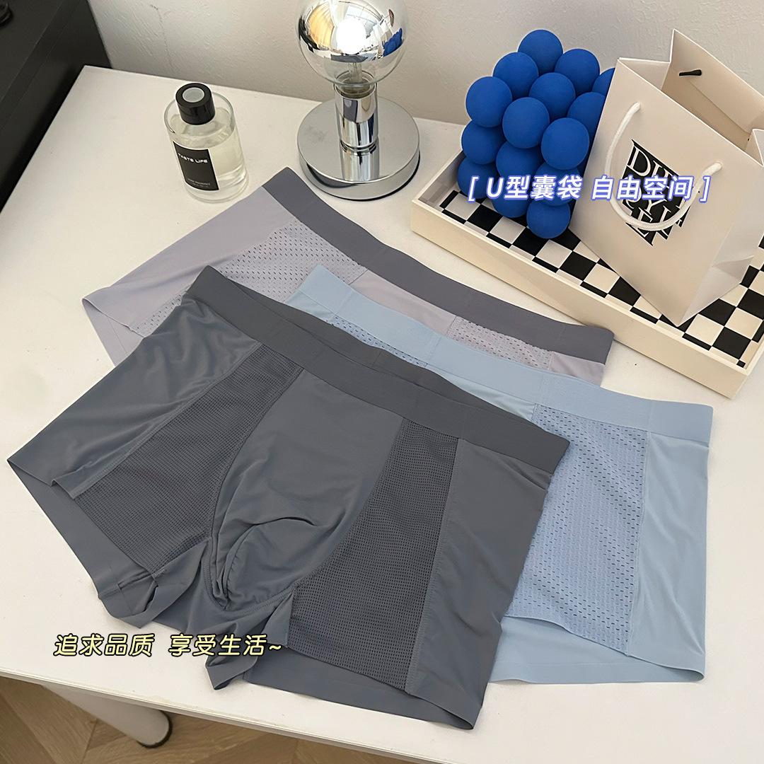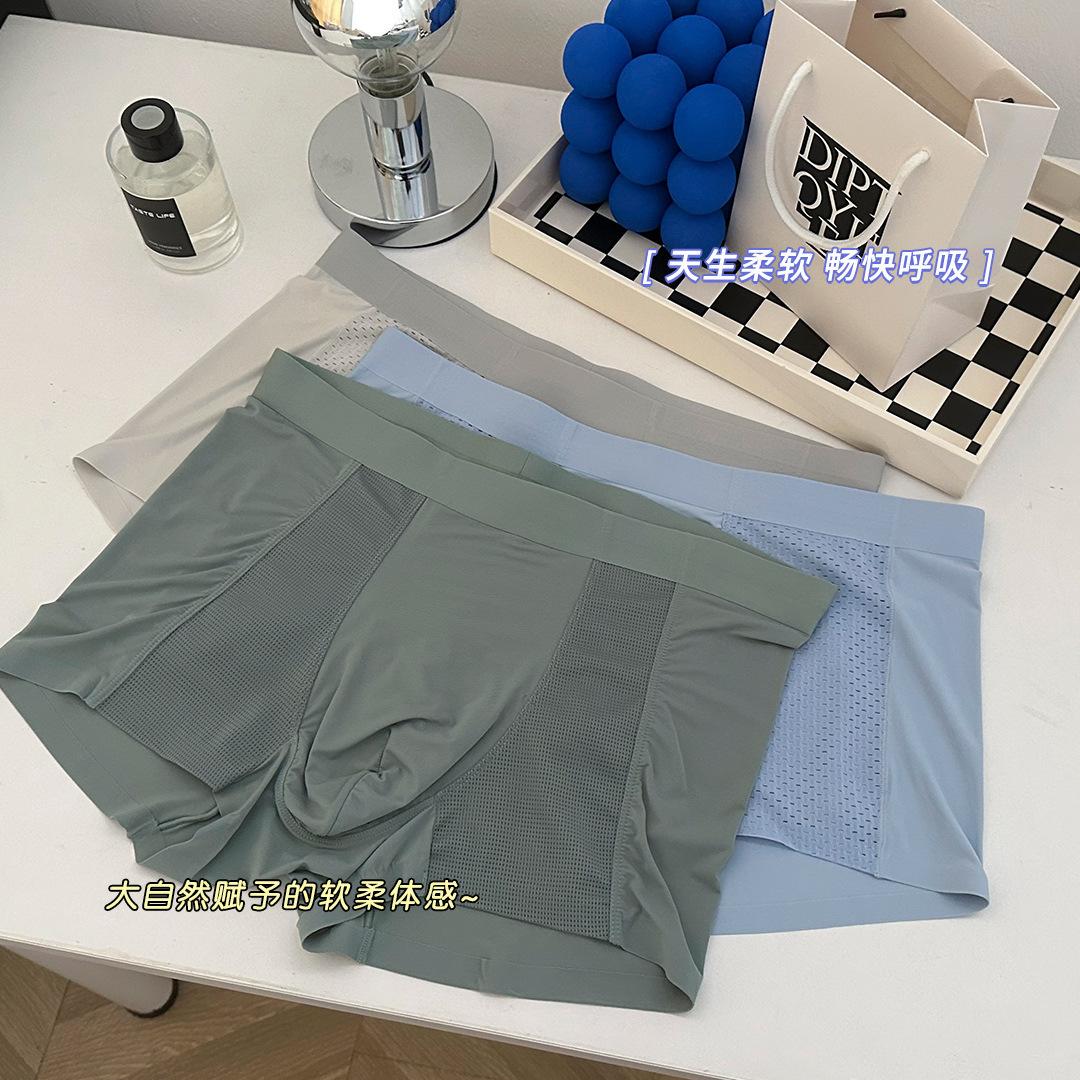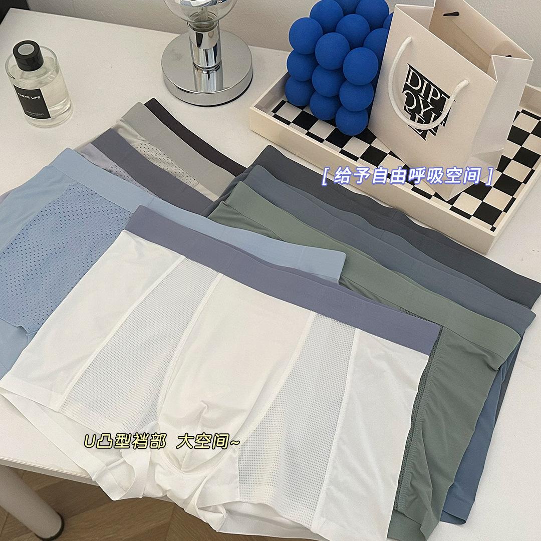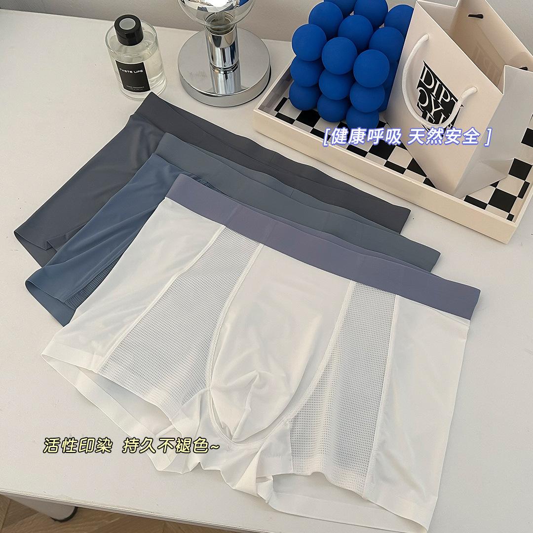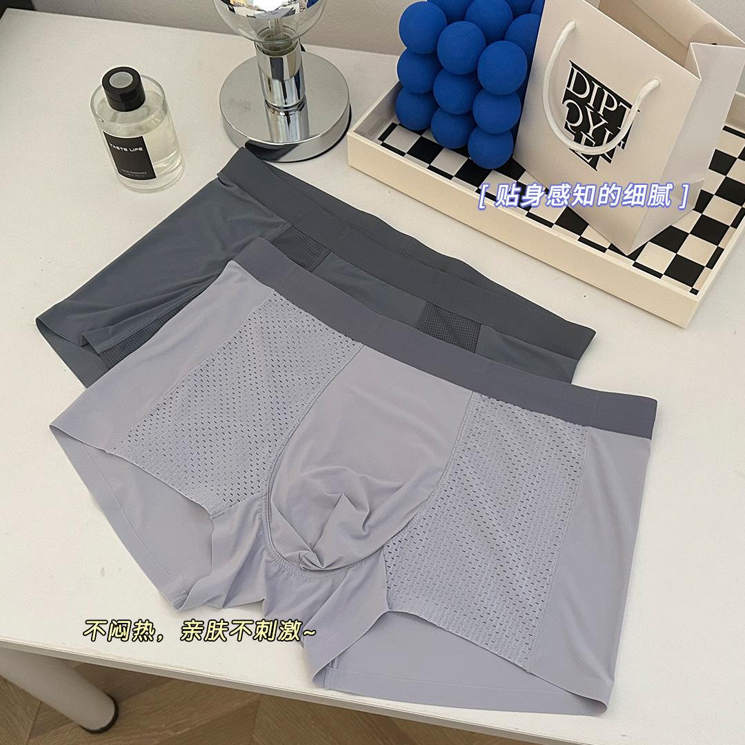 Boxers sin costuras para hombre verano Nuevo Ropa interior de seda de hielo para hombre cintura media ligeros transpirables con orificio cómodos talla extra