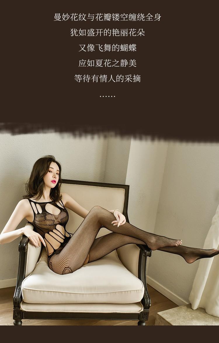 Fei Mu - Ropa interior sexy con entrepierna abierta, medias de seda, perspectiva, conjunto de uniforme, medias de red negras, comercio exterior 7550