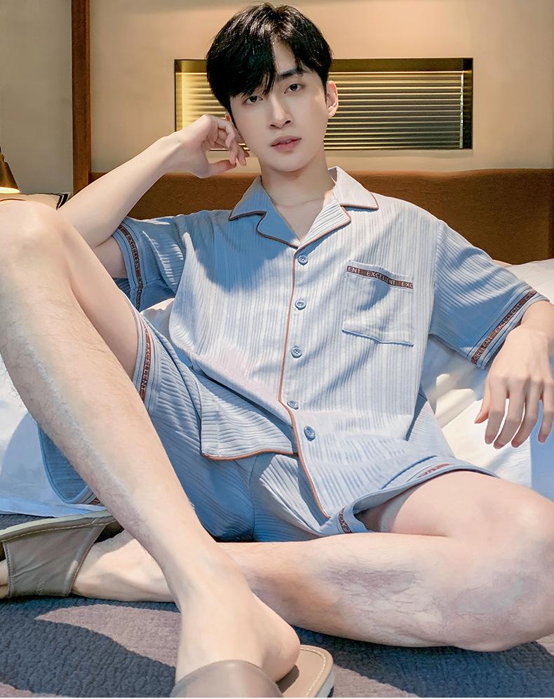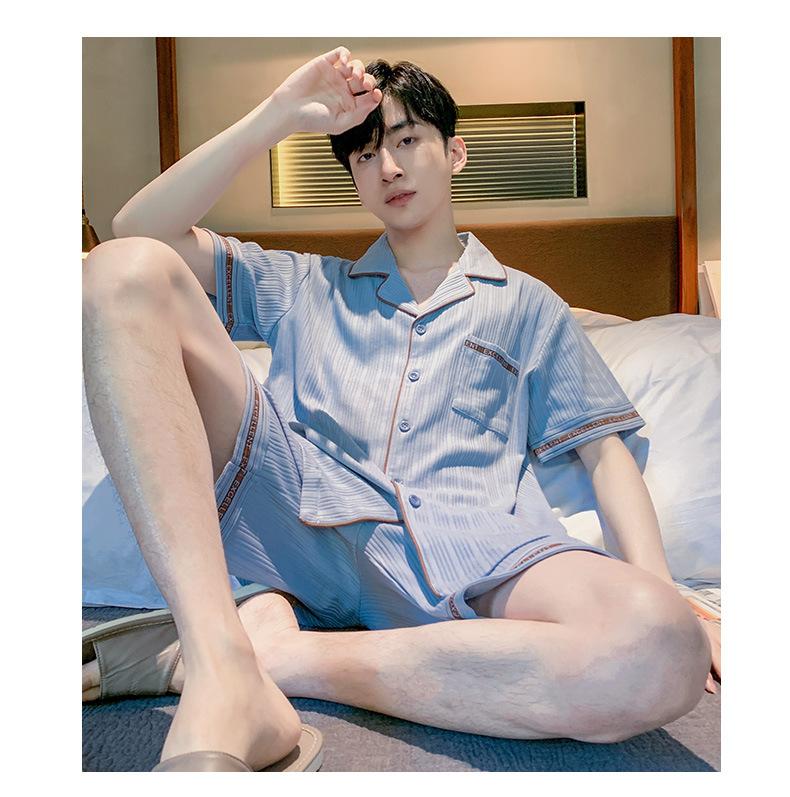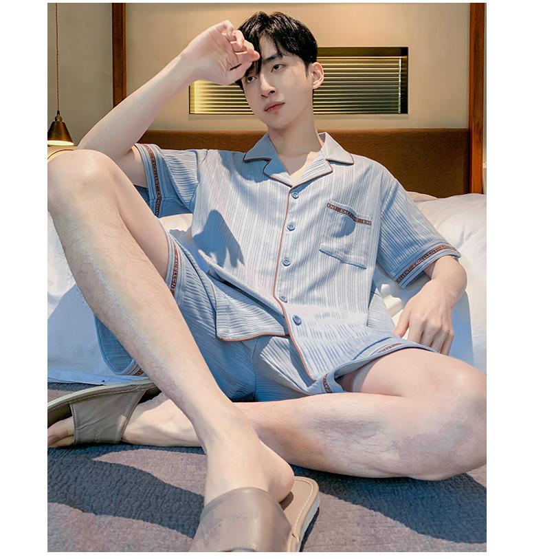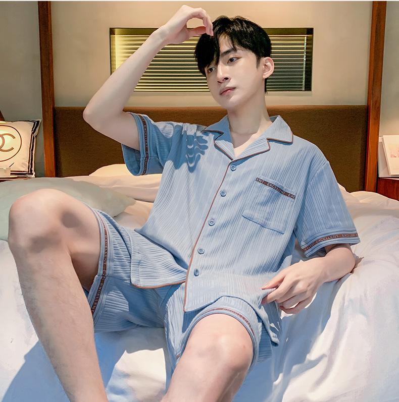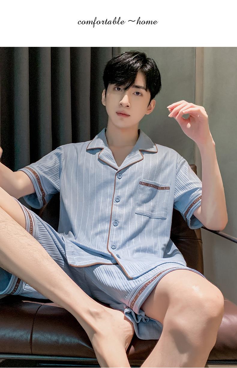 Traje de Ropa para el Hogar para Hombre de Verano 2025 Nuevo Casual Sencillo Estilo Coreano Manga Corta Pantalones Cortos Holgado Cómodo Pijama para Hombre