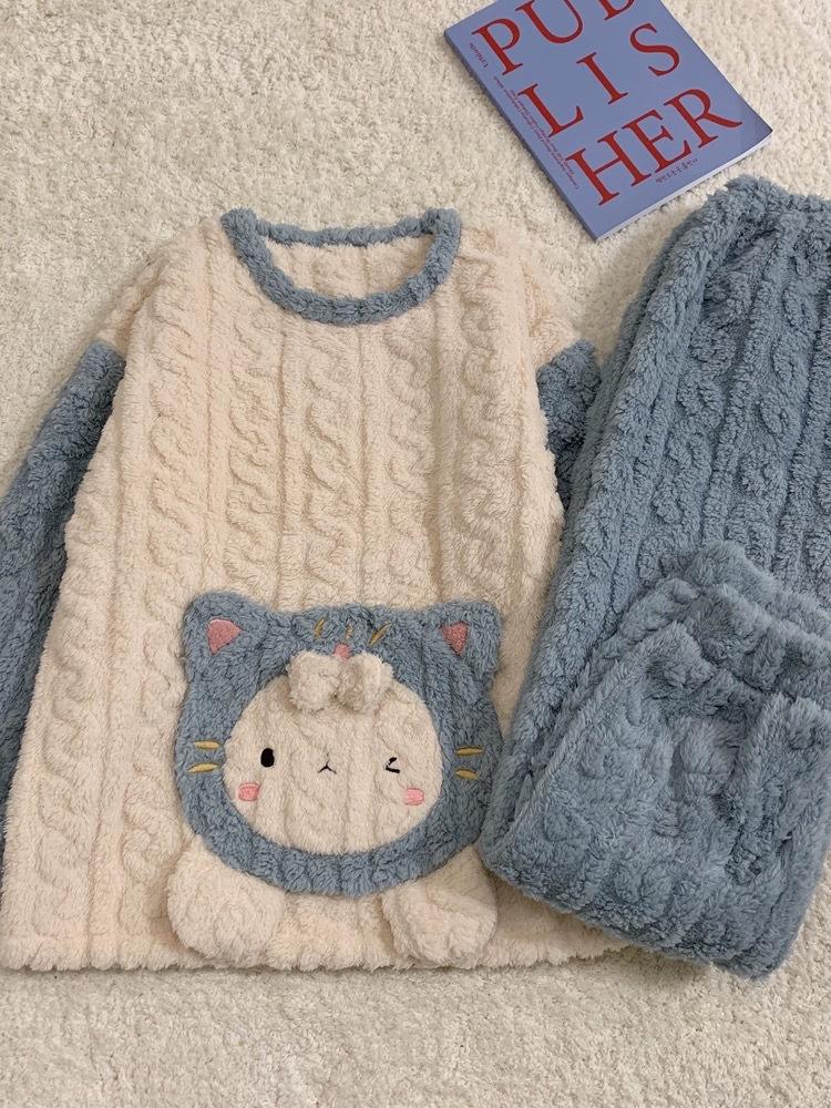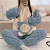 Pijamas de otoño e invierno de nuevo estilo para mujer, bonitos dibujos animados japoneses, cuello redondo, jacquard grueso, franela de celebridades de Internet, ropa para el hogar