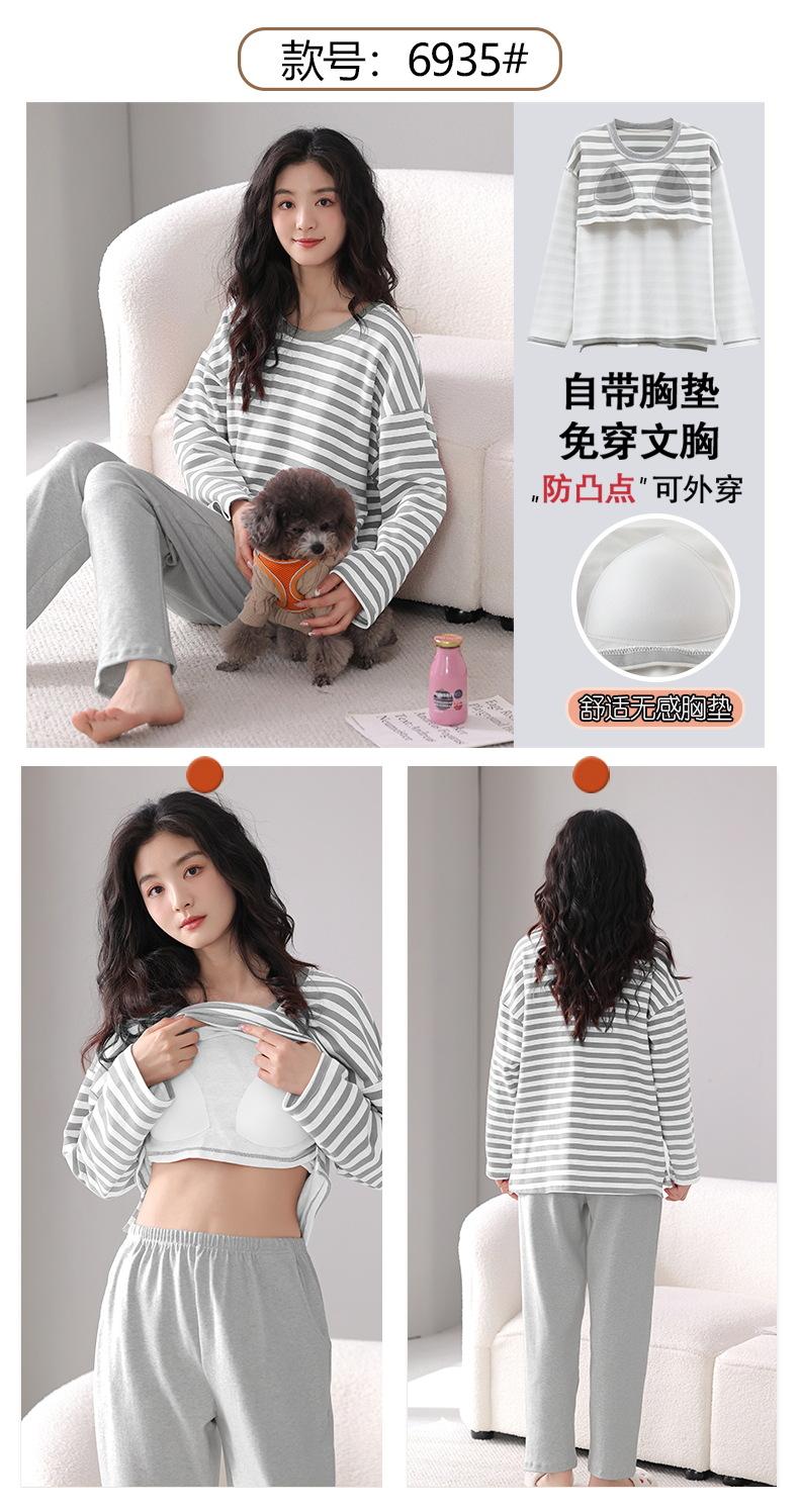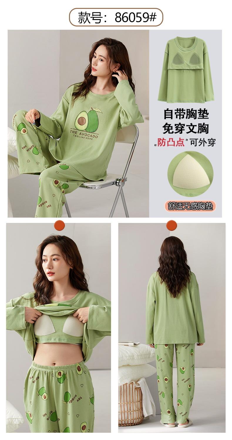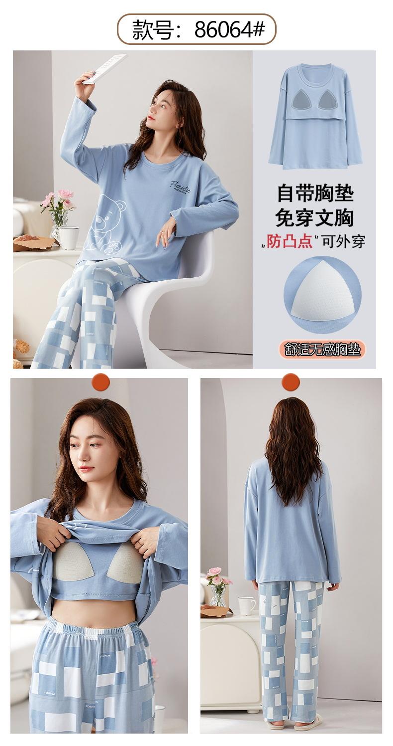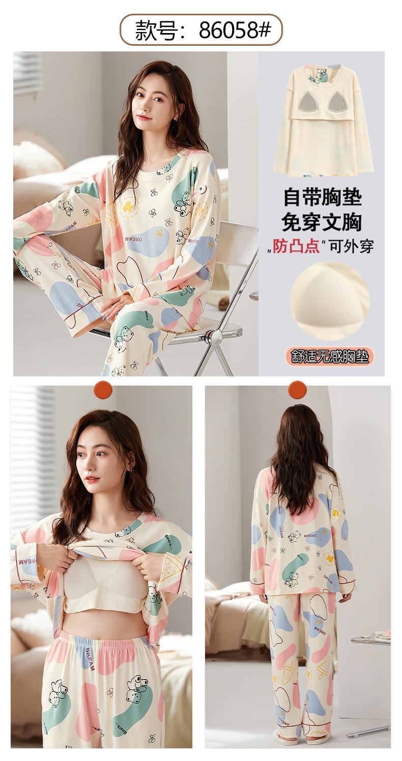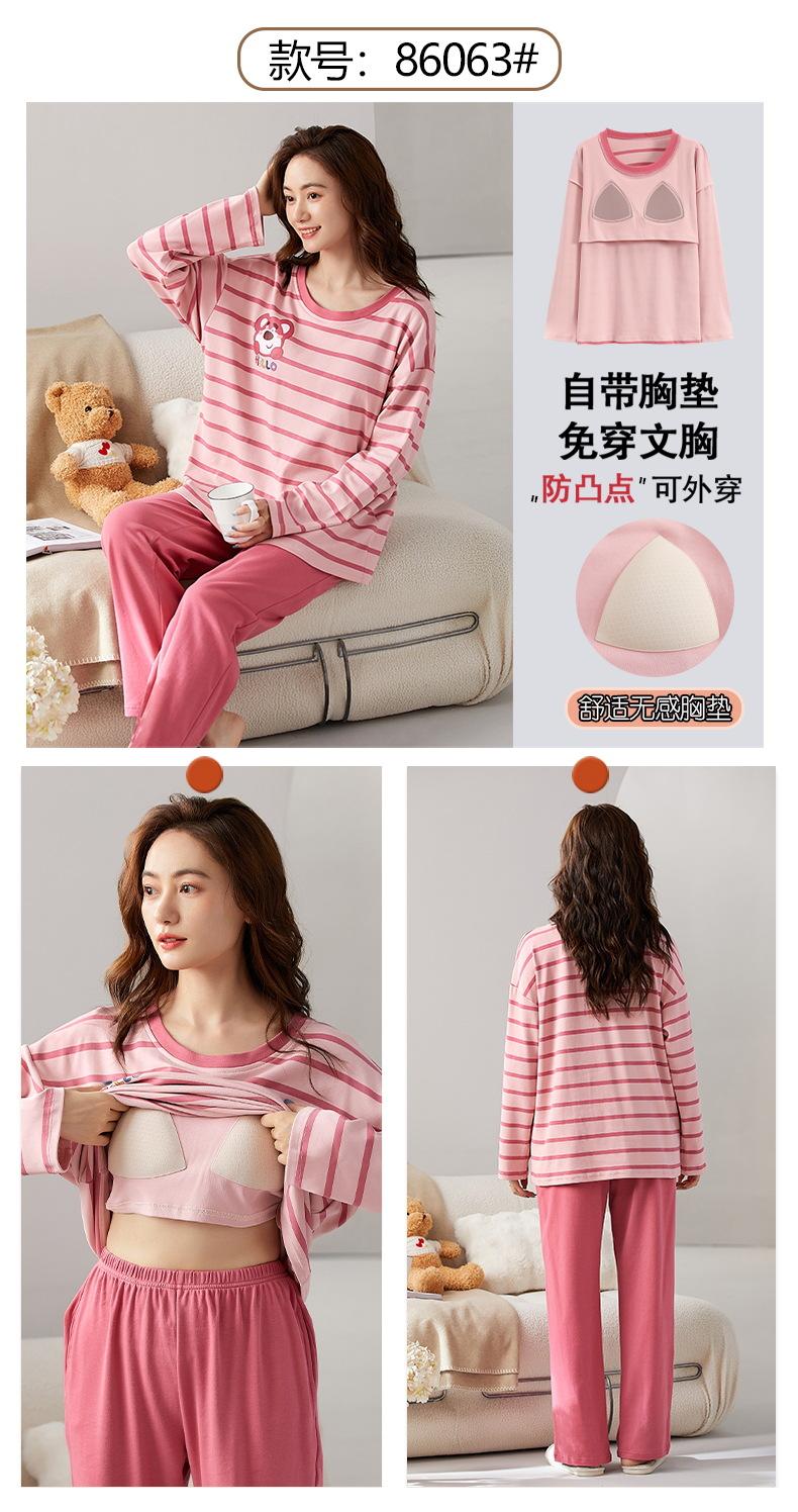 Pijamas de mujer de otoño e invierno nuevos de algodón de manga larga con almohadilla para el pecho, antigolpes, con dibujos animados, sueltos y bonitos, ropa para el hogar.