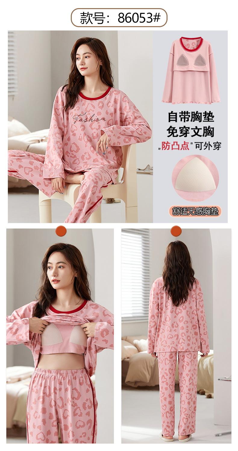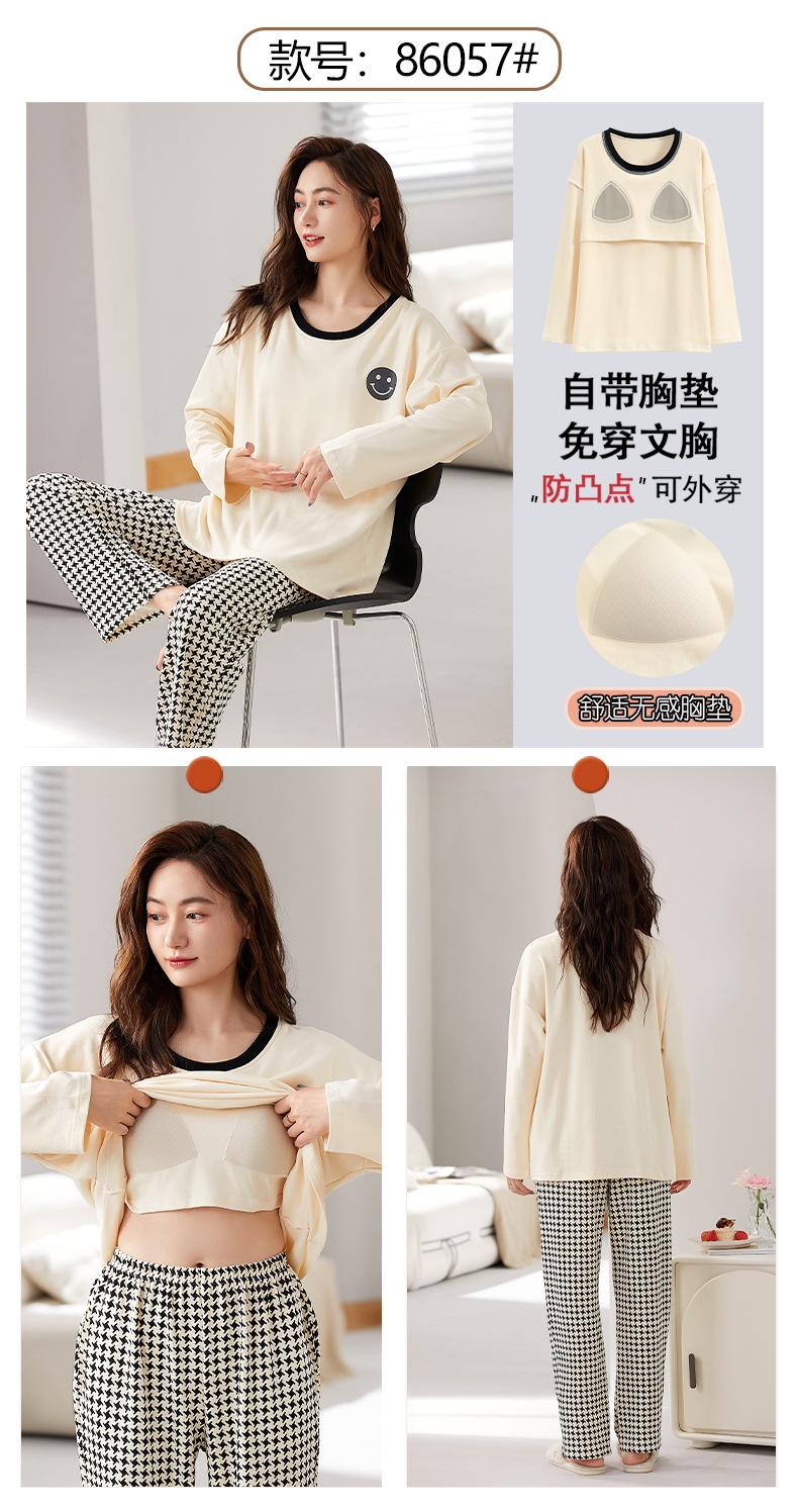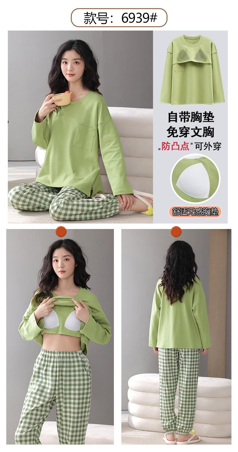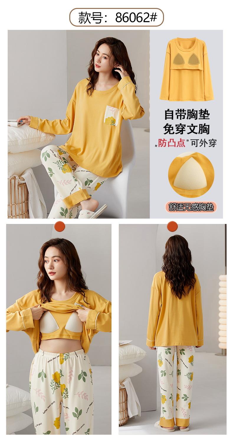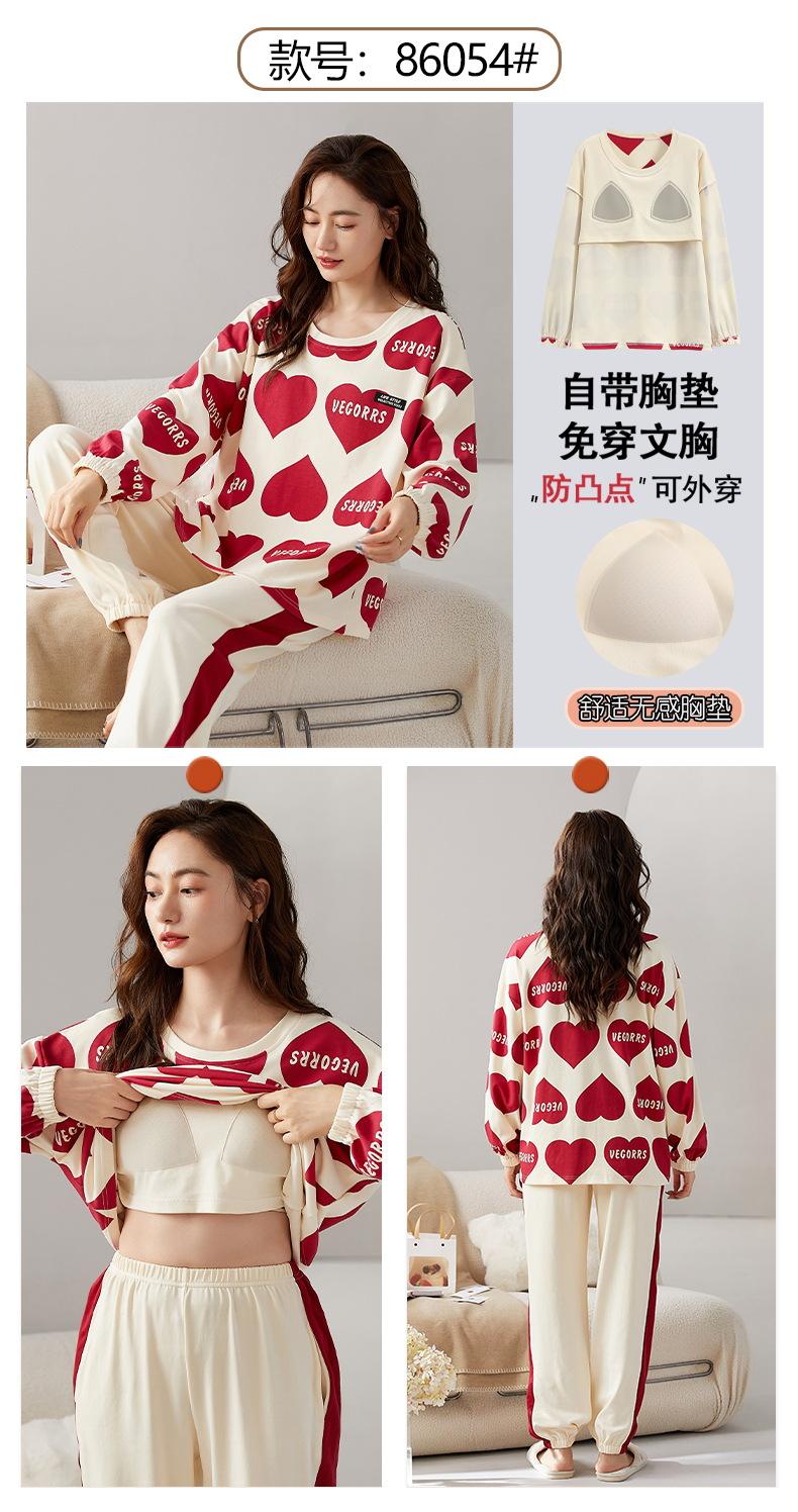 Pijamas de mujer de otoño e invierno nuevos de algodón de manga larga con almohadilla para el pecho, antigolpes, con dibujos animados, sueltos y bonitos, ropa para el hogar.
