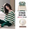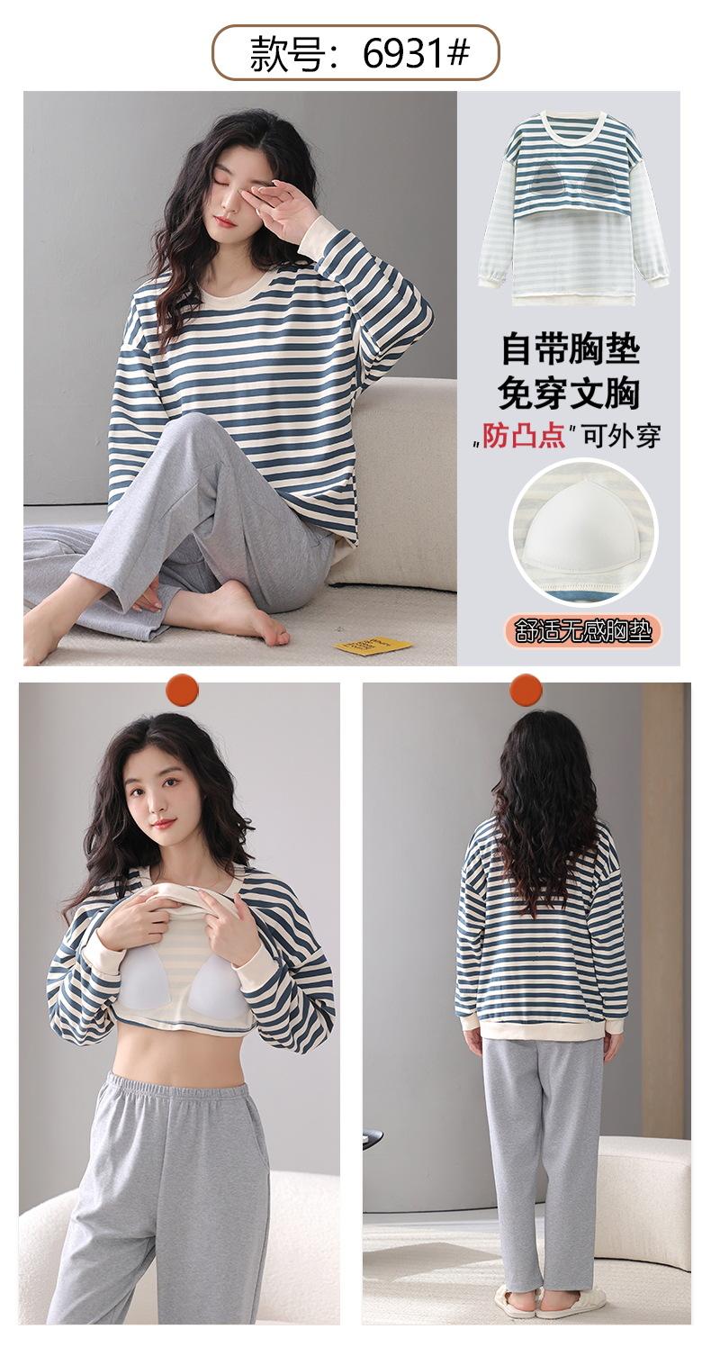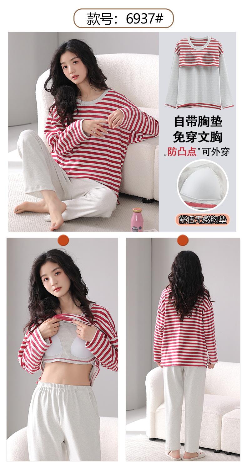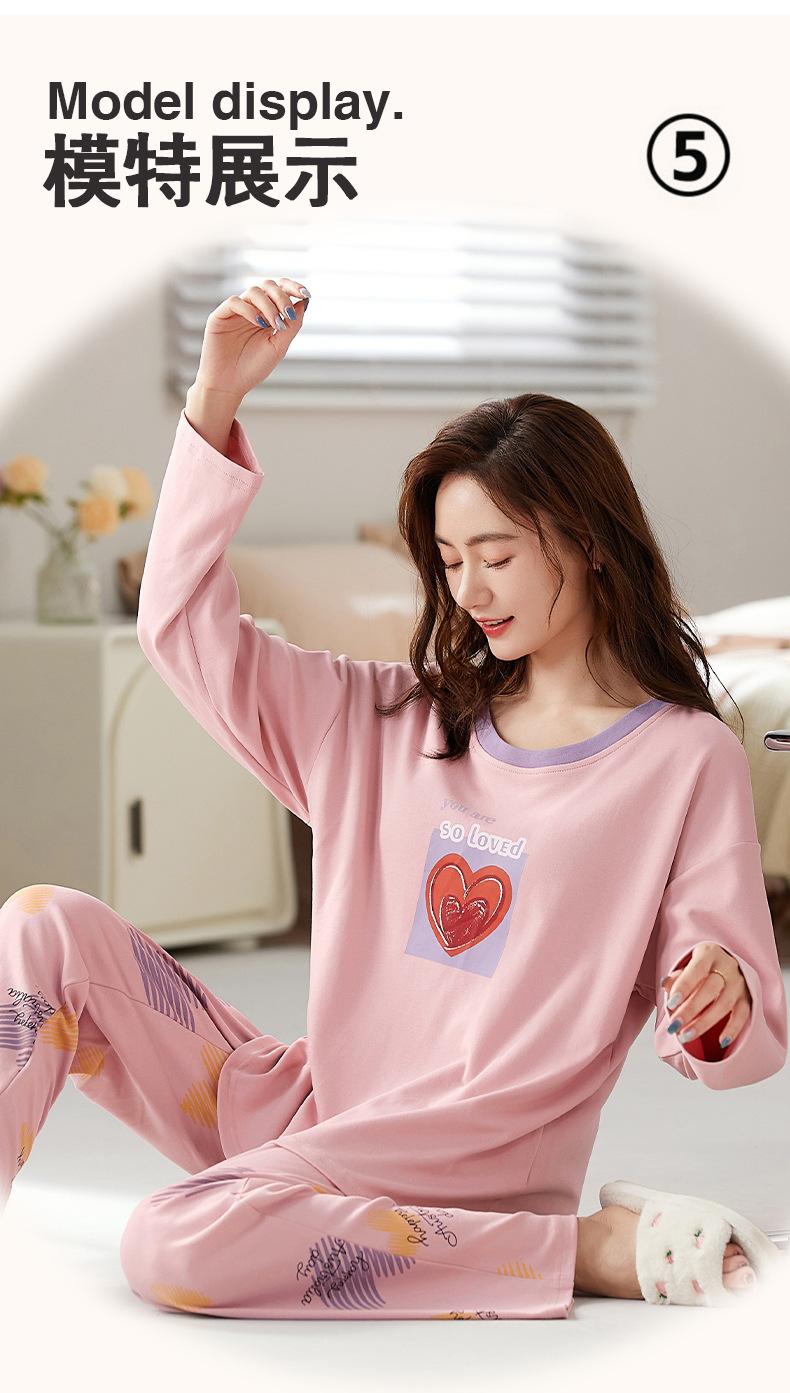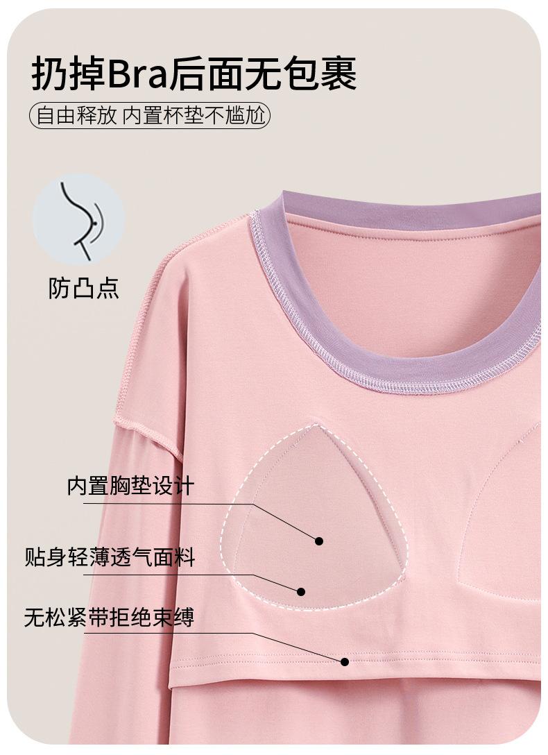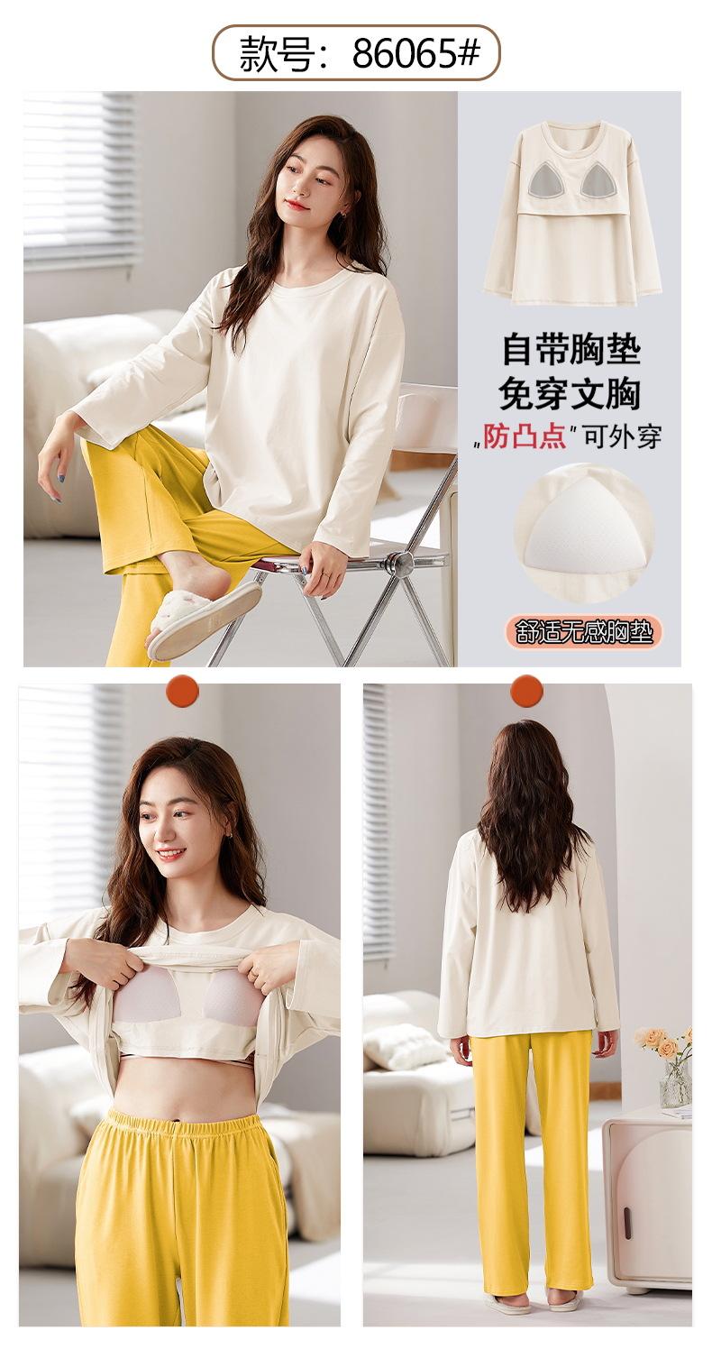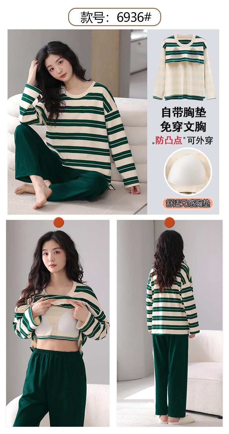 Pijamas de mujer de otoño e invierno nuevos de algodón de manga larga con almohadilla para el pecho, antigolpes, con dibujos animados, sueltos y bonitos, ropa para el hogar.