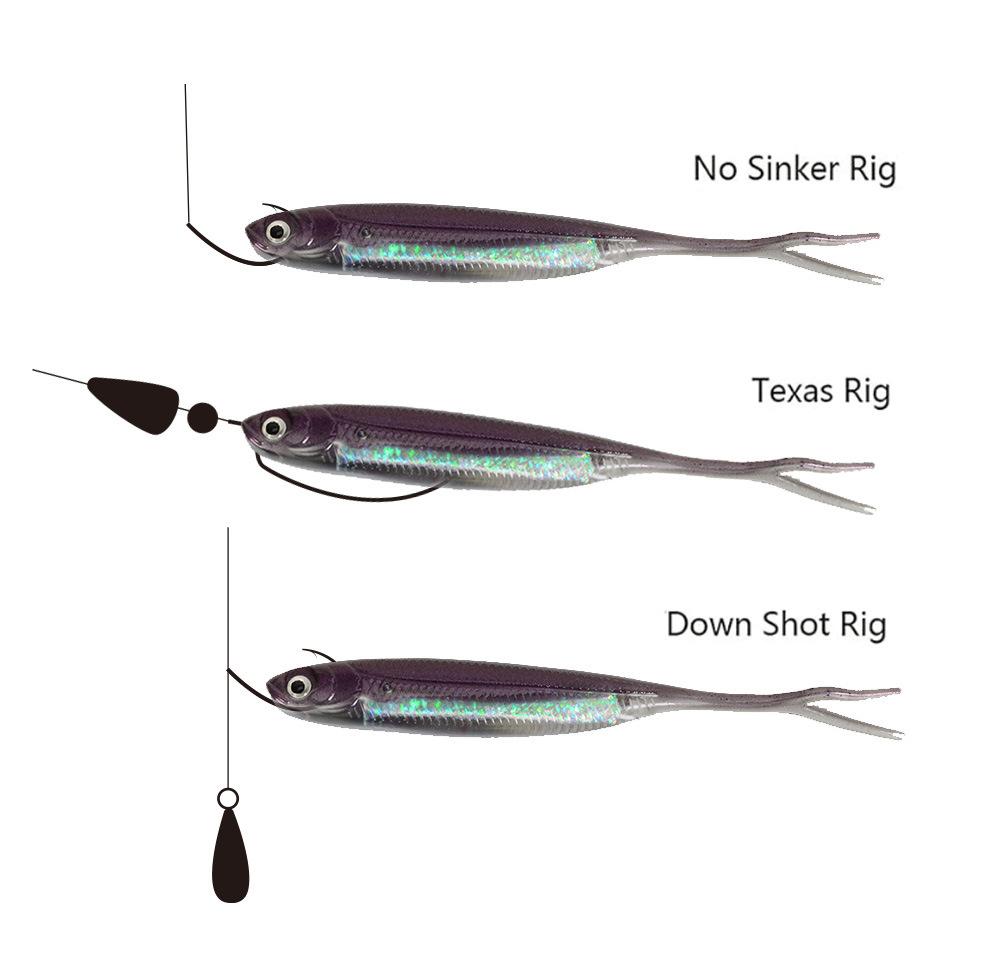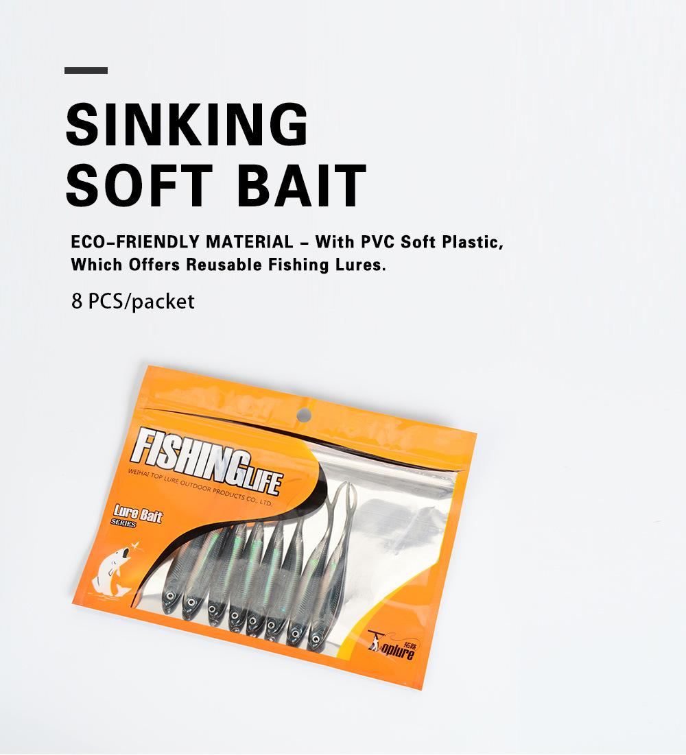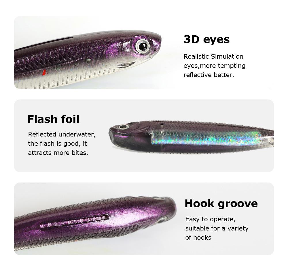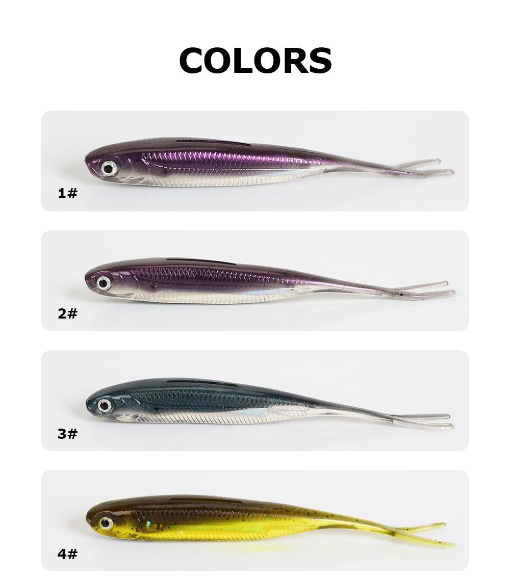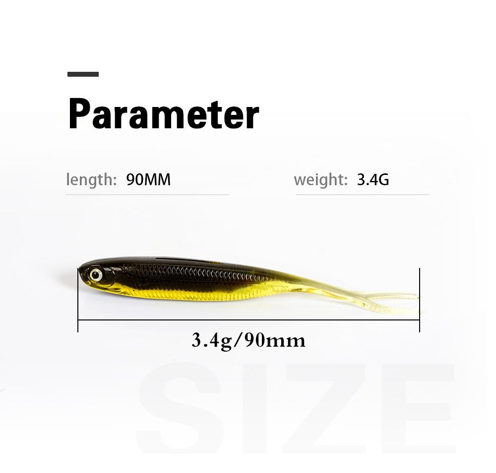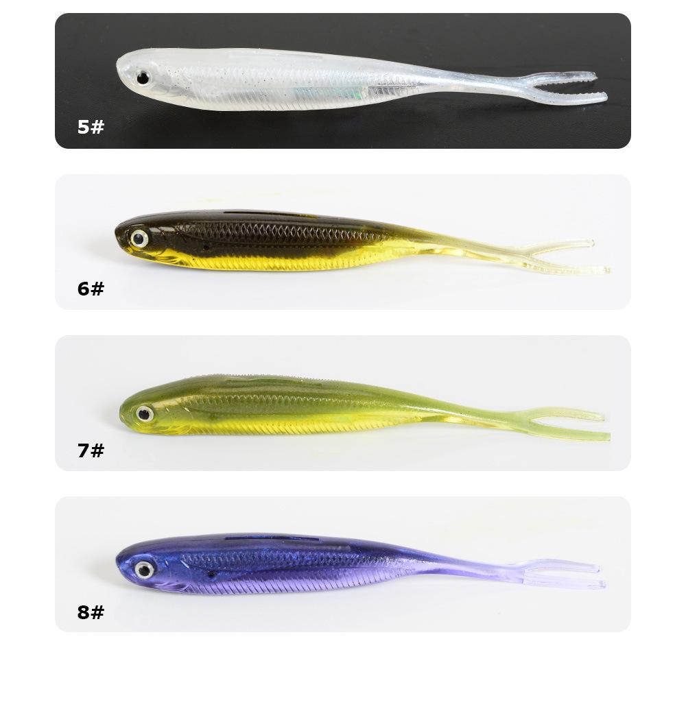 Cebo Luya, cebo biónico bicolor con cola de horquilla de pez blando, 8 piezas, tubo arcoíris incorporado, 90 mm, cebo blando, pico de perca, cebo Luya