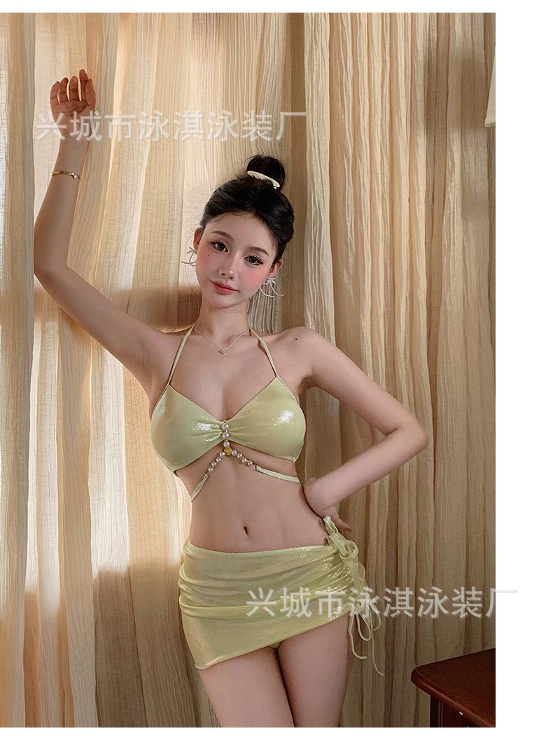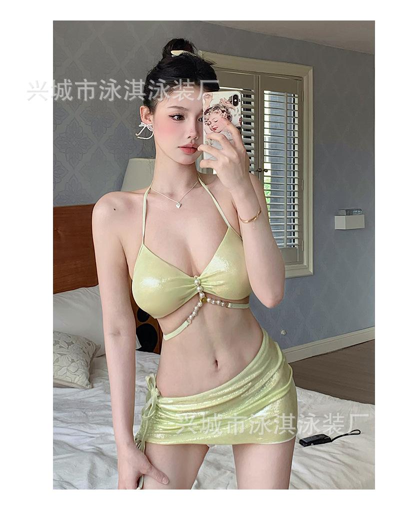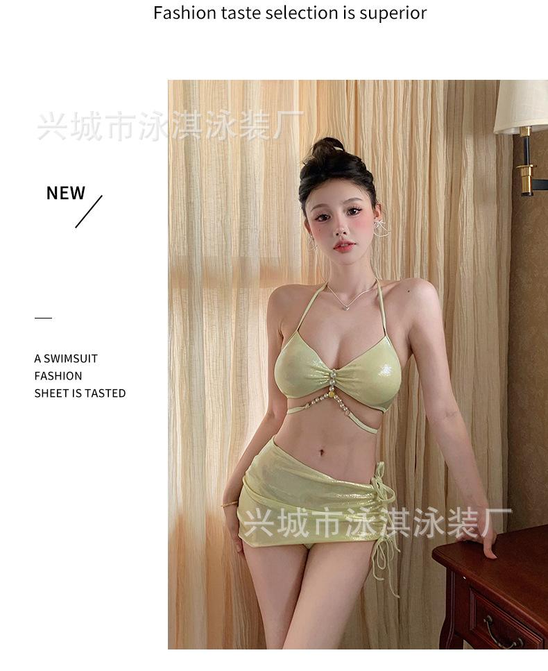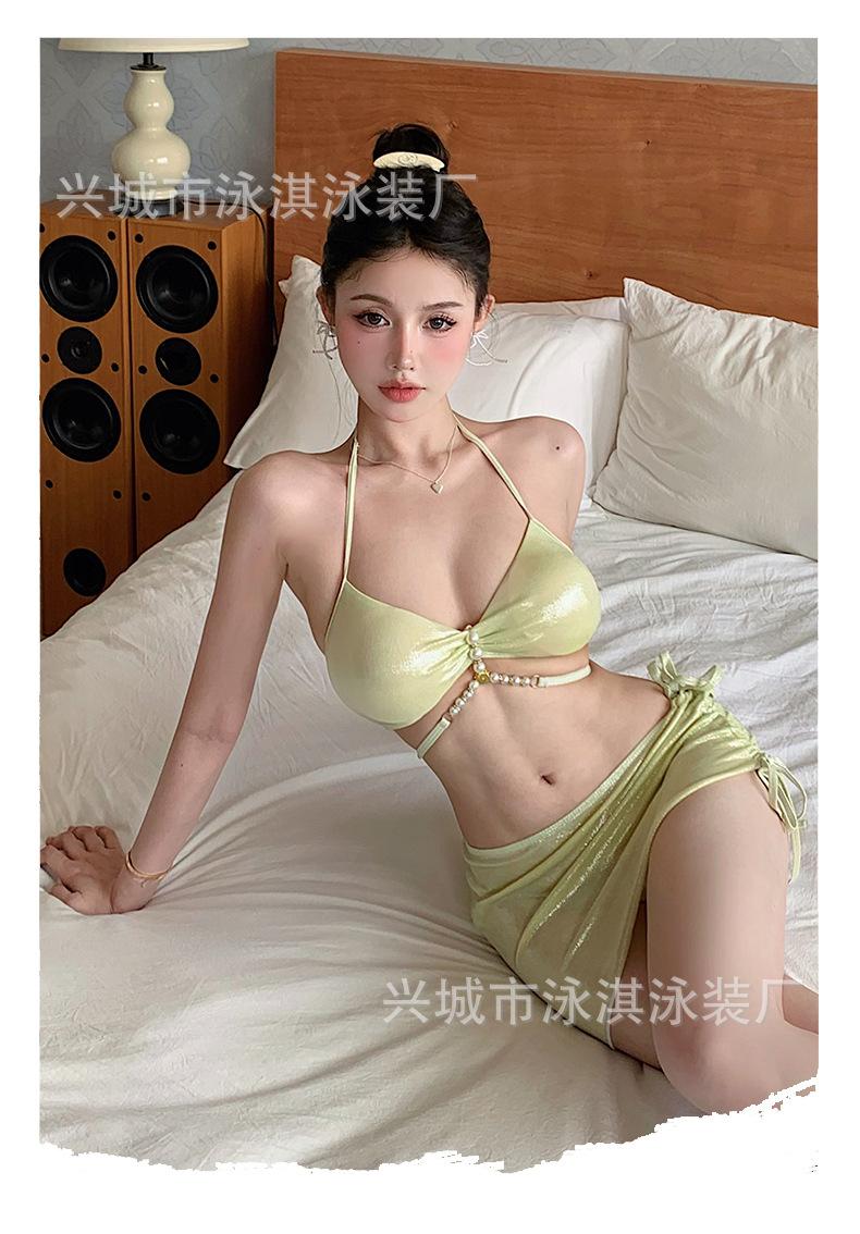 Bikini de tres piezas sexy de estilo Simple Pure Desire de alta calidad para chica fresca, tela nacarada, traje de baño dividido de Spice Girl