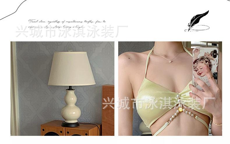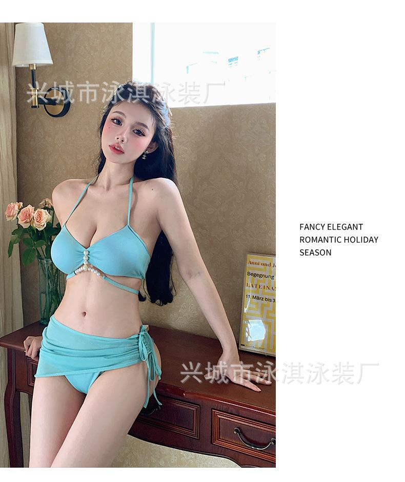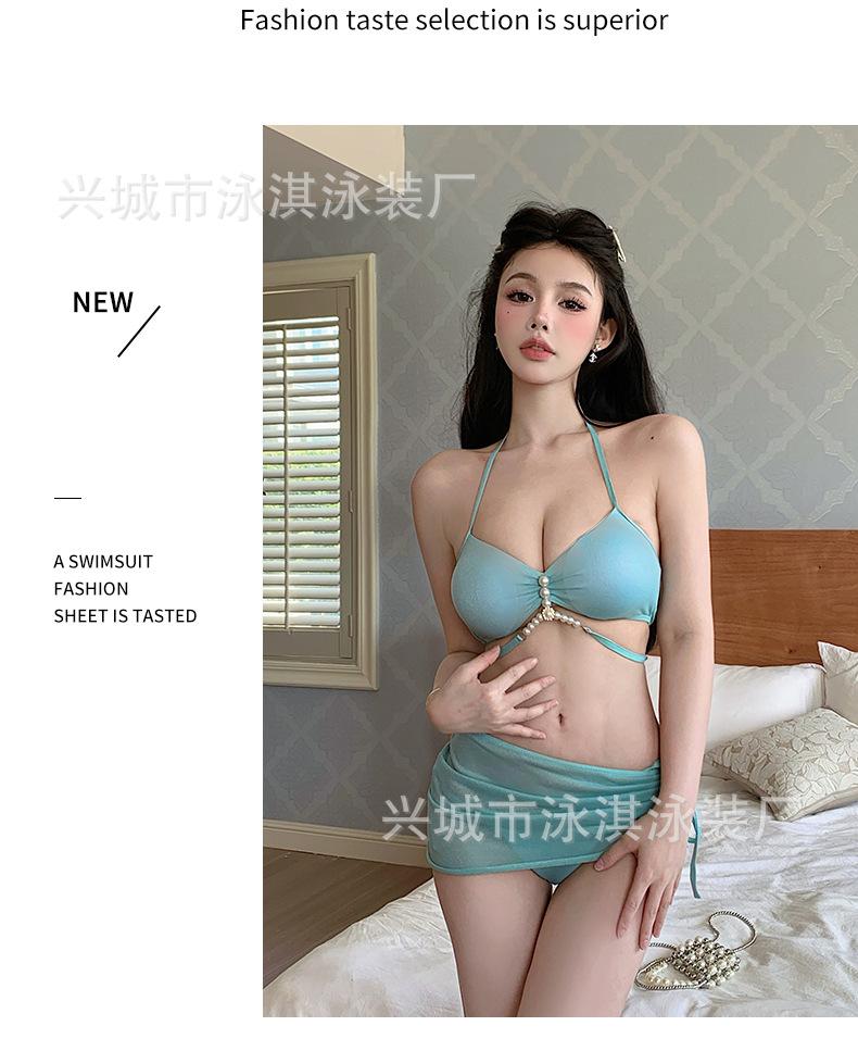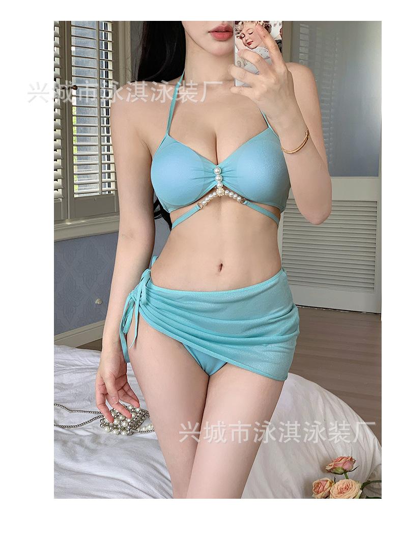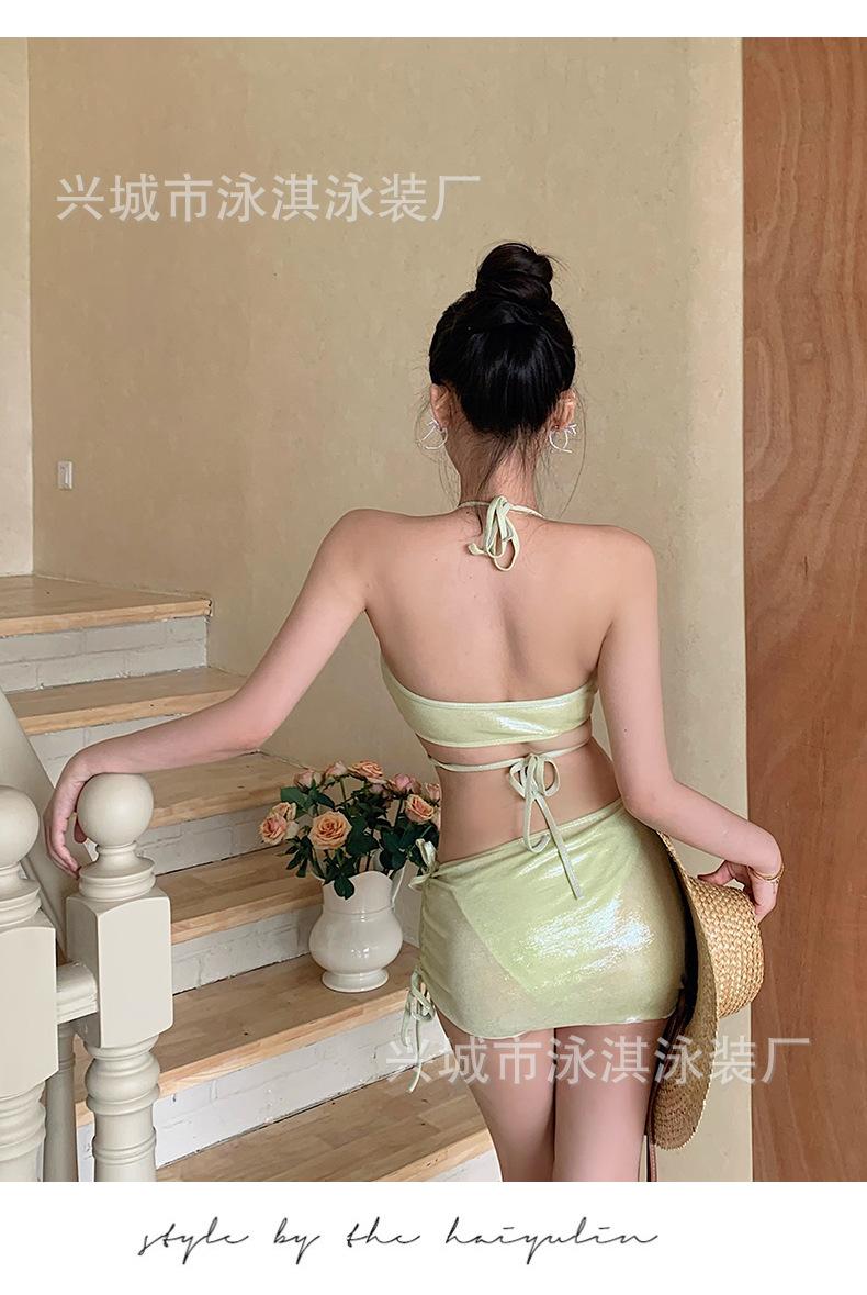 Bikini de tres piezas sexy de estilo Simple Pure Desire de alta calidad para chica fresca, tela nacarada, traje de baño dividido de Spice Girl
