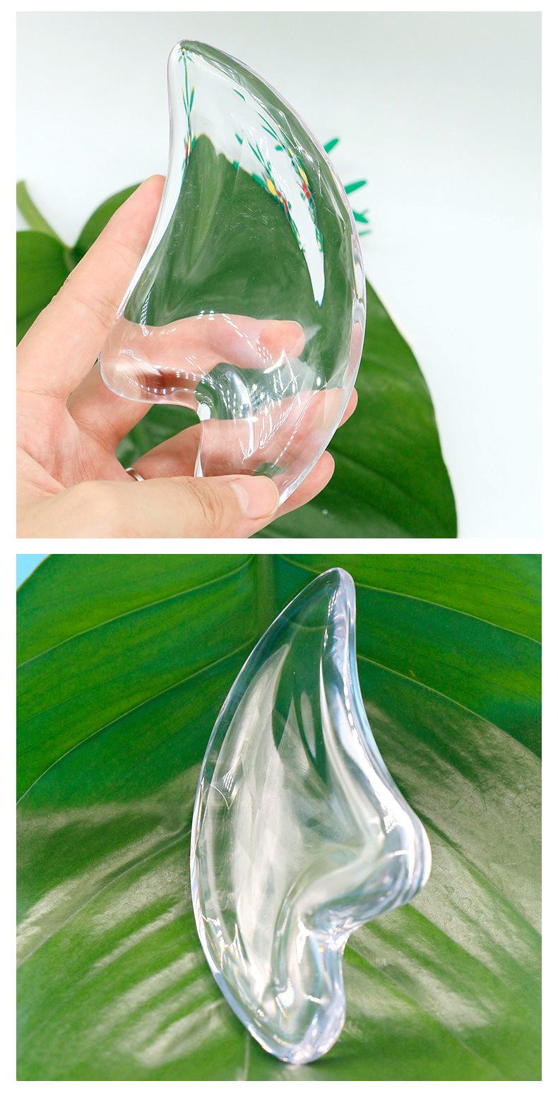 Placa raspadora de cristal de cuerno transparente con forma de V para rostro femenino, raspado de meridianos faciales, belleza corporal, suministro directo de fábrica.