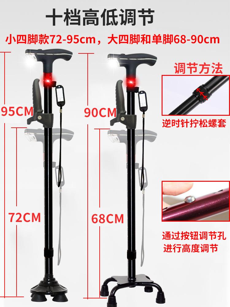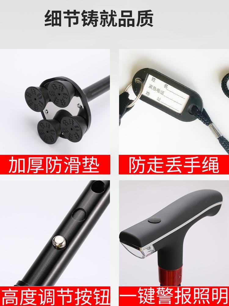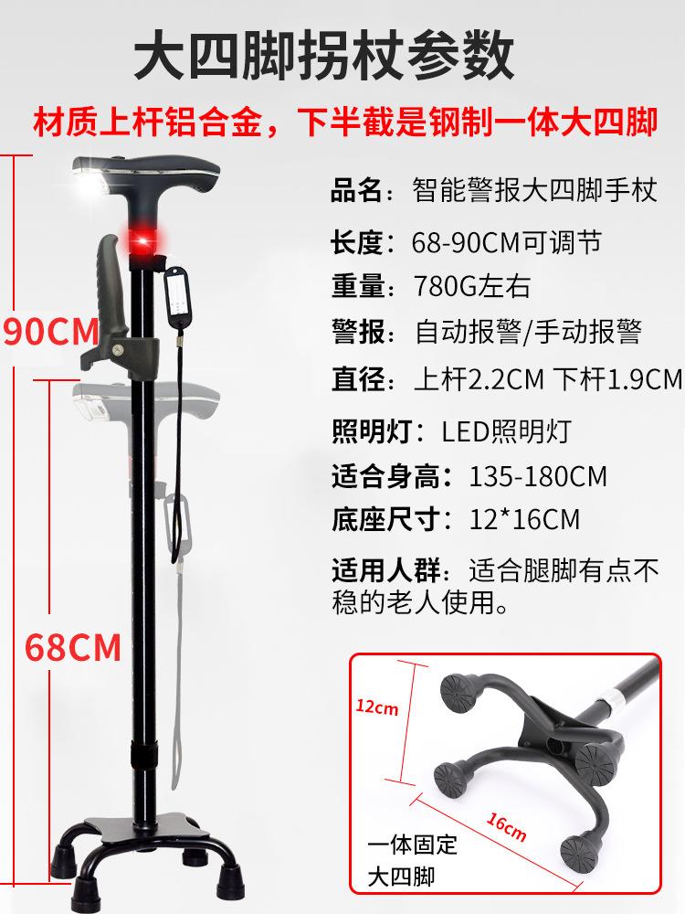 Alarma automática de caída para ancianos muleta multifuncional obediente bastón de cuatro patas cinturón antideslizante luz altura ajustable