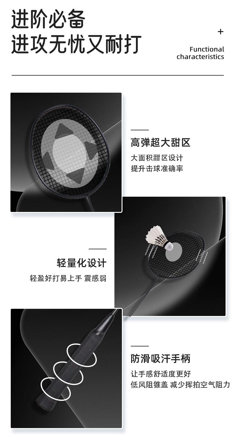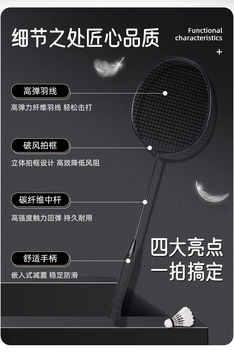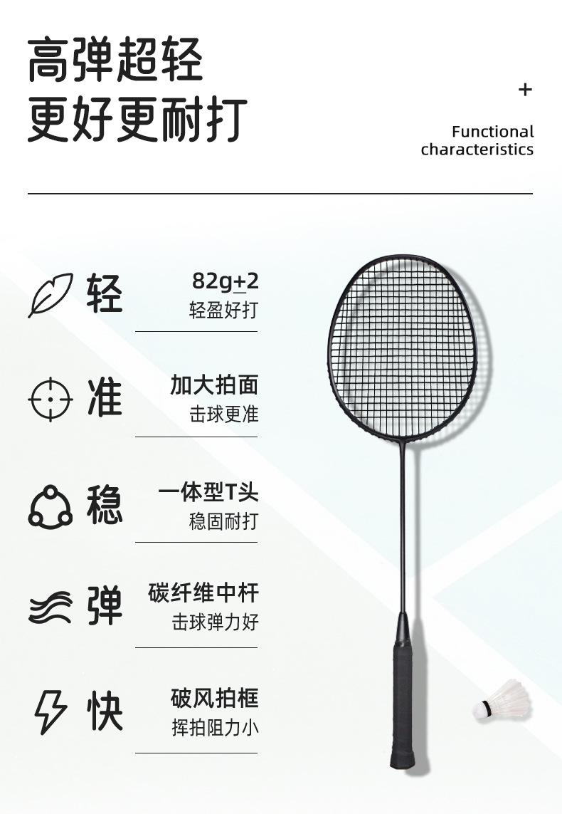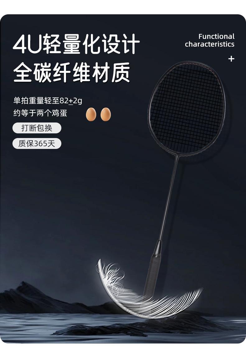 Raqueta de Bádminton Carbono Completo Ligera 4U Balanceada Raqueta de Entrenamiento de Hoja Juego de Raquetas Individuales y Dobles para Principiantes