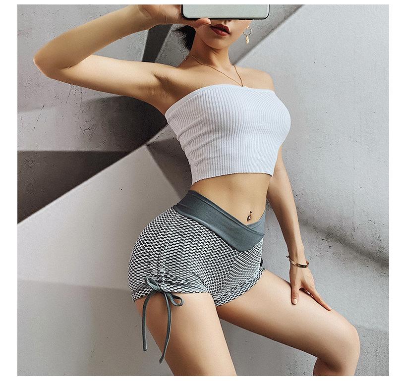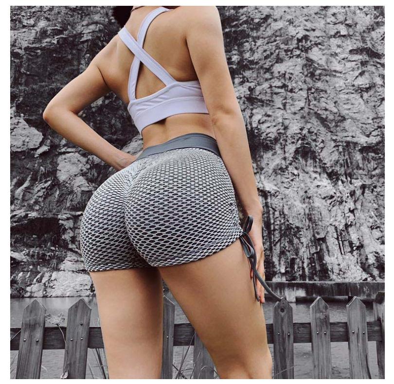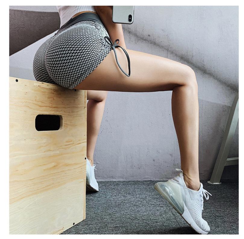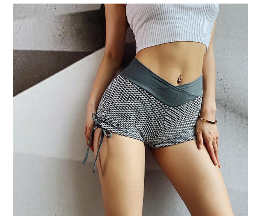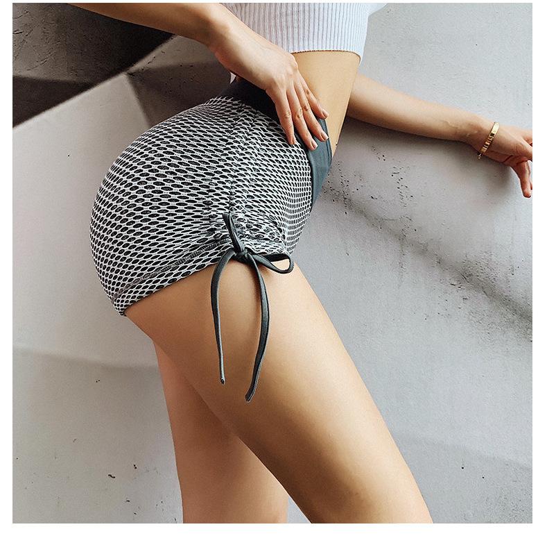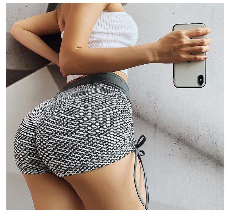 Amazon Pantalones Cortos de Yoga Caliente Melocotón para Mujer Cintura Alta Elásticos con Cordón Ajustado Tres Puntos Jacquard Panal para Mujer