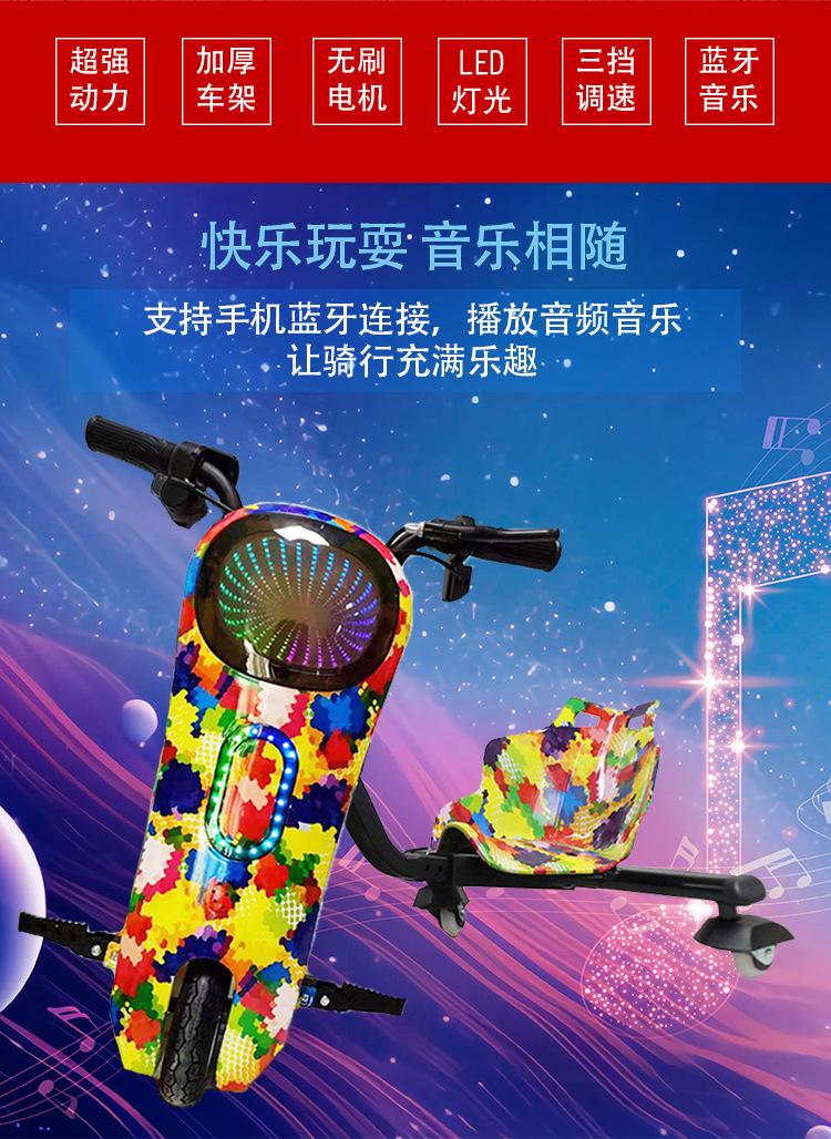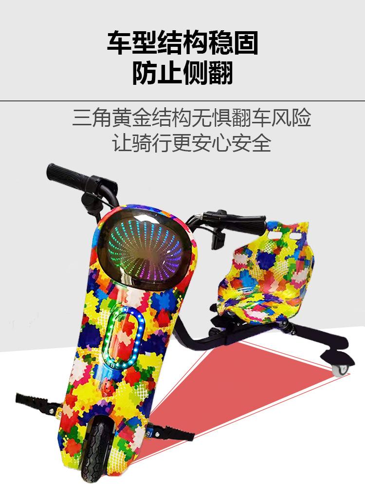 Nuevo coche eléctrico de derrape de tres ruedas para niños, con luz y movimiento de cola especial, cuadrado y túnel de derrape.