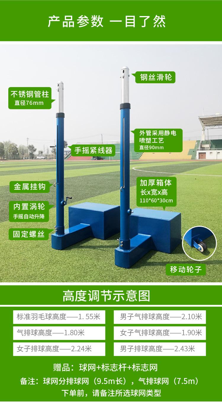 Columna de Voleibol de Aire de Competición Ajustable Operada Manualmente con Base/Columna de Malla Columna de Voleibol Móvil/Soporte de Voleibol de Suelo