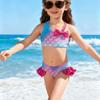 Traje de baño para niñas, traje de baño de tres piezas con estampado de sirena para niñas grandes, traje de baño profesional de verano para niñas.