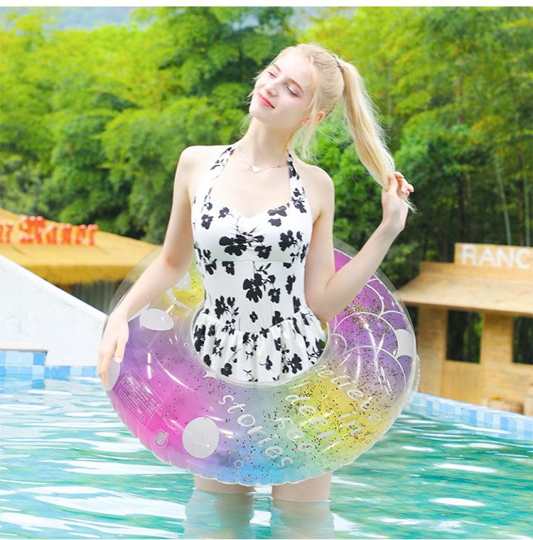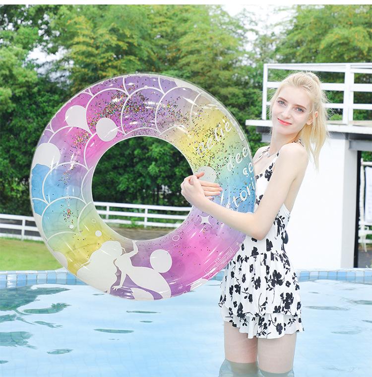 Verano PVC Ecológico Lentejuelas Gruesas Exterior Axila Inflable Anillo Flotante 6-10 Años Niños Anillo de Natación Sirena