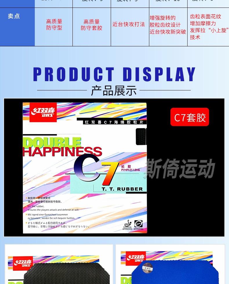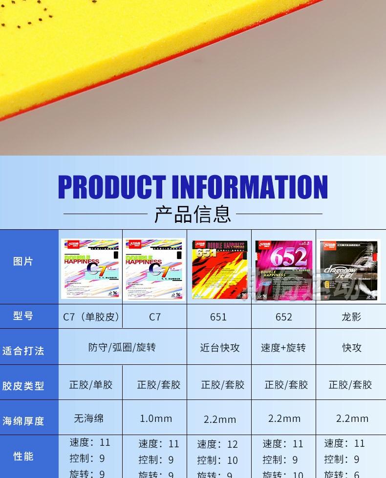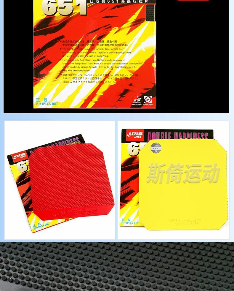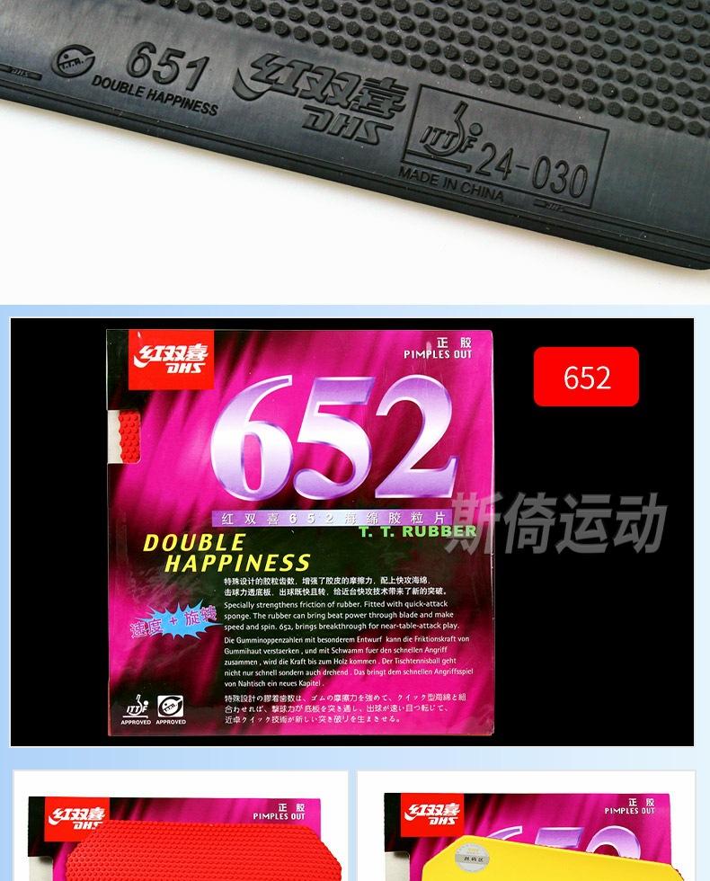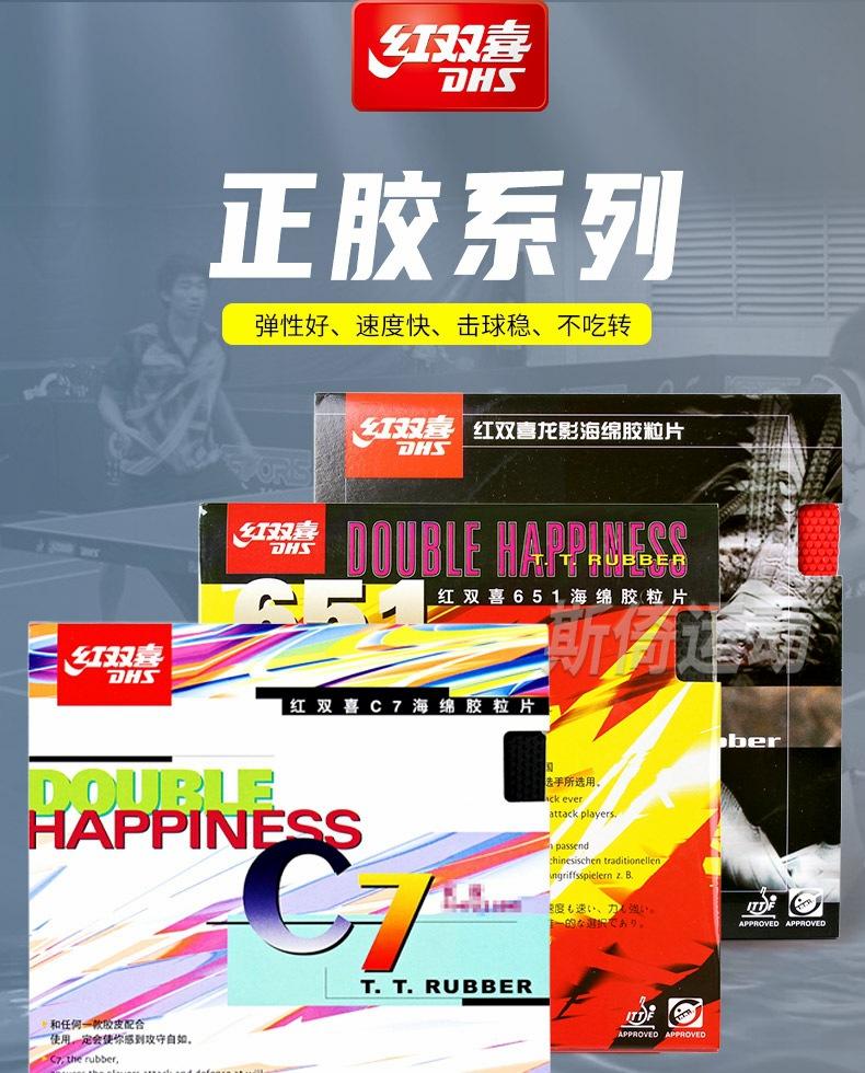 Auténtico Double Happiness 652 Tenis de Mesa Goma Positiva 651 Juego de Raqueta de Tenis de Mesa Goma Longying C7 Partícula Cuero Película Individual