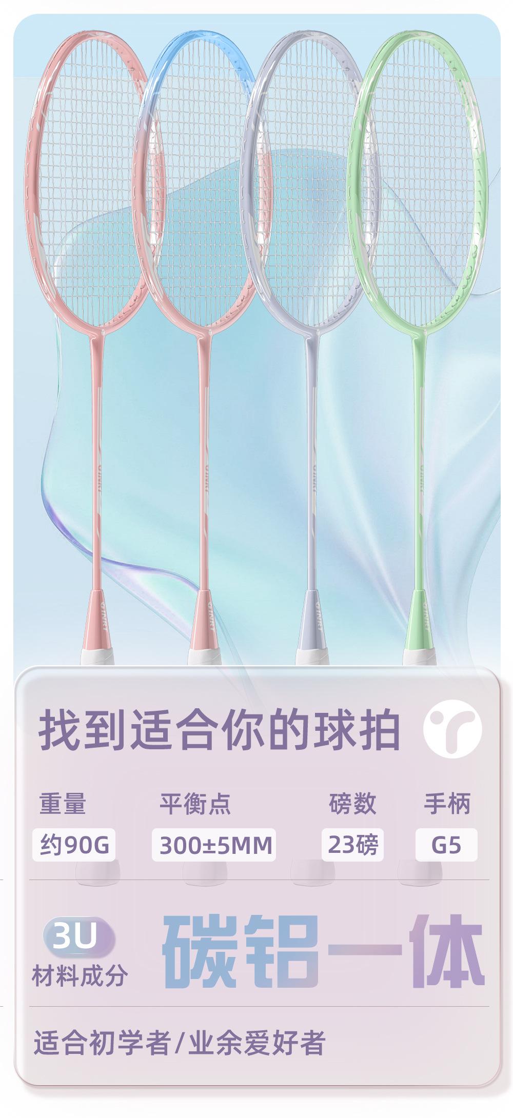 Raqueta de bádminton de fibra de carbono, individual, doble, para niñas, principiantes, profesional, resistente, tienda insignia, nueva, rosa