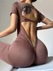 [Modelo de Muestra] Ropa Deportiva de Yoga de Punto Sin Costuras de Una Pieza Ajustada Moldeadora de Cuerpo Europea y Americana Transfronteriza Transpirable