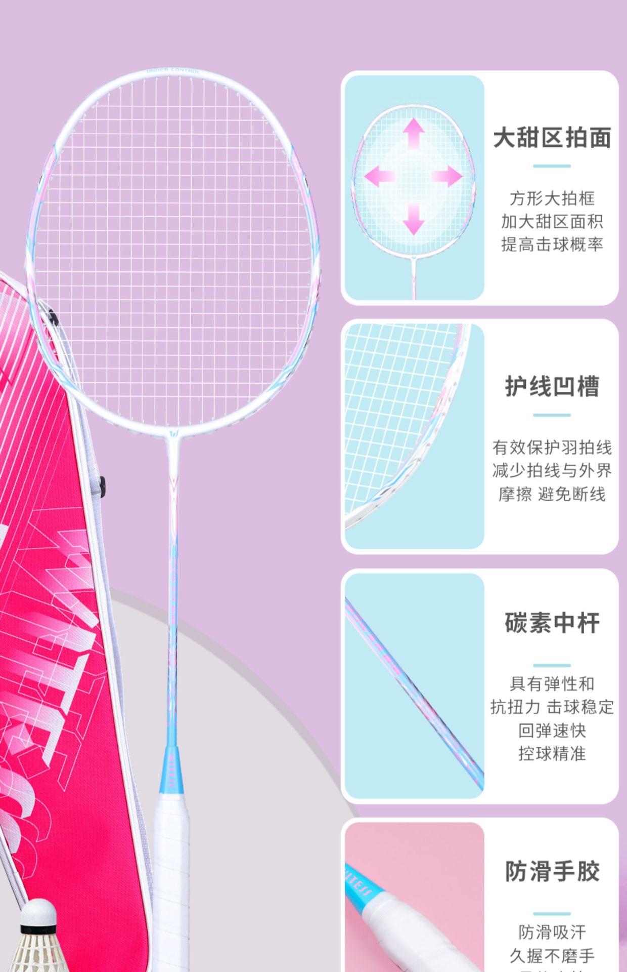 WITESS Raqueta de Bádminton Witness 618 para Damas, Raqueta Individual y Doble, Fibra de Carbono Completa, Resistente, Entrenamiento, Competición