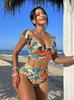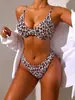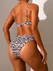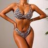 Traje de Baño Sexy Explosiones Transfronterizas Estampado de Leopardo Traje de Baño Dividido Estampado para Mujer Traje de Baño Bikini Ajustado de Comercio Exterior Europeo y Americano