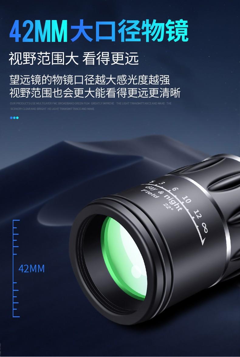 Telescopio monocular HD telescopio de visión nocturna de bajo nivel de luz concierto con cámara de teléfono móvil telescopio monocular generación