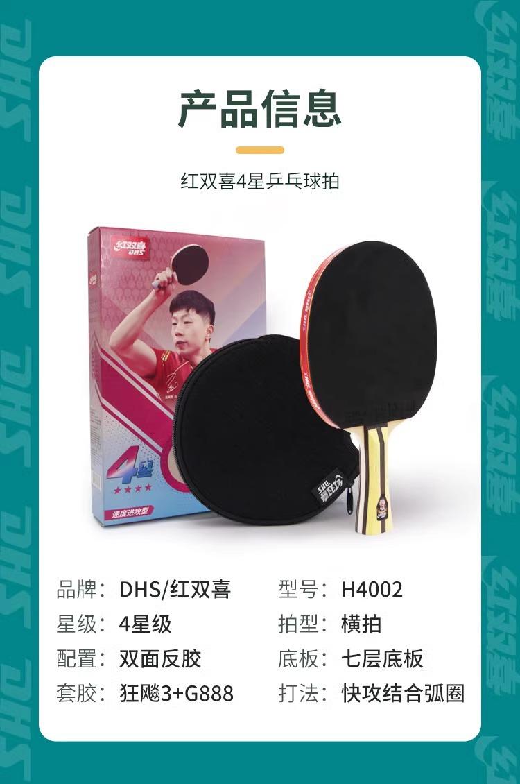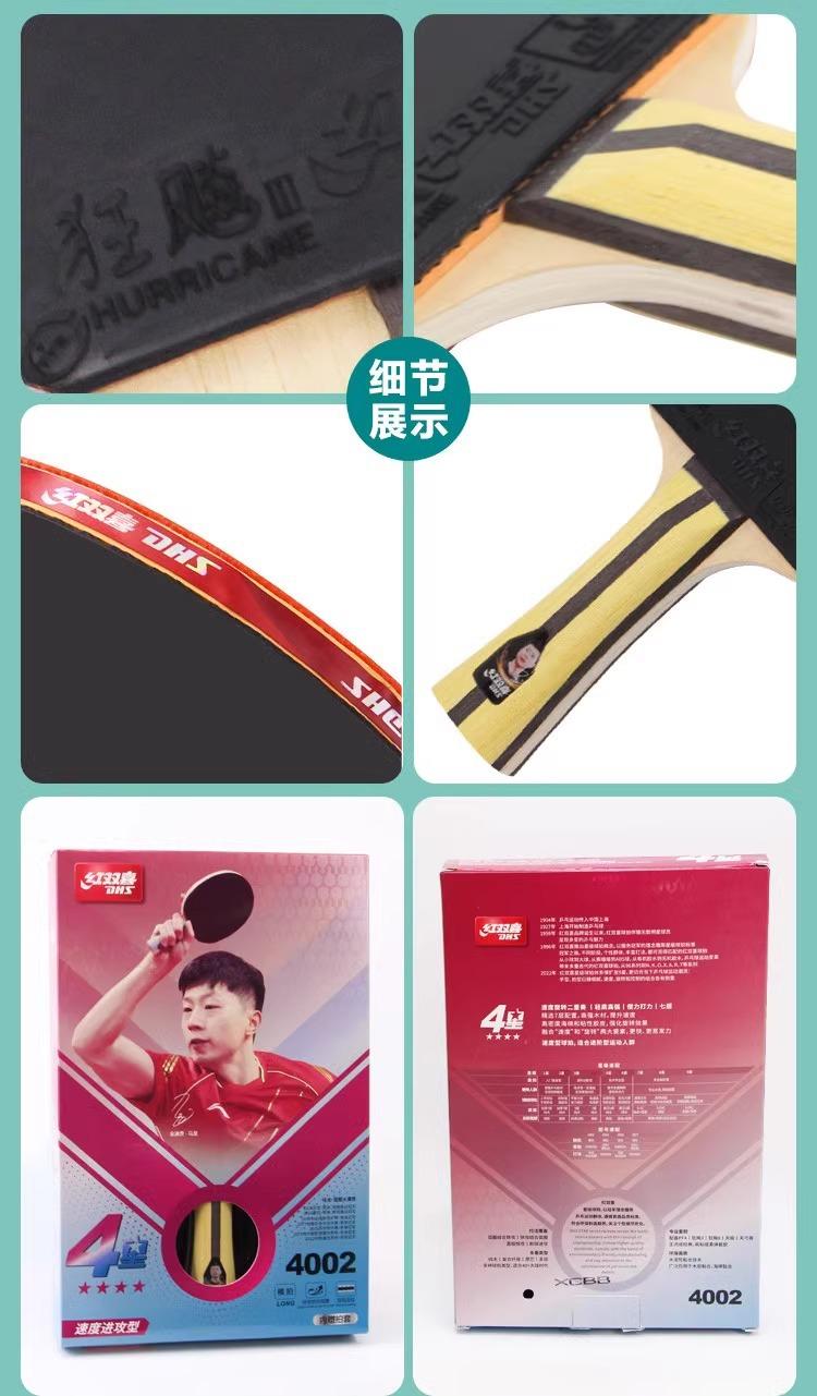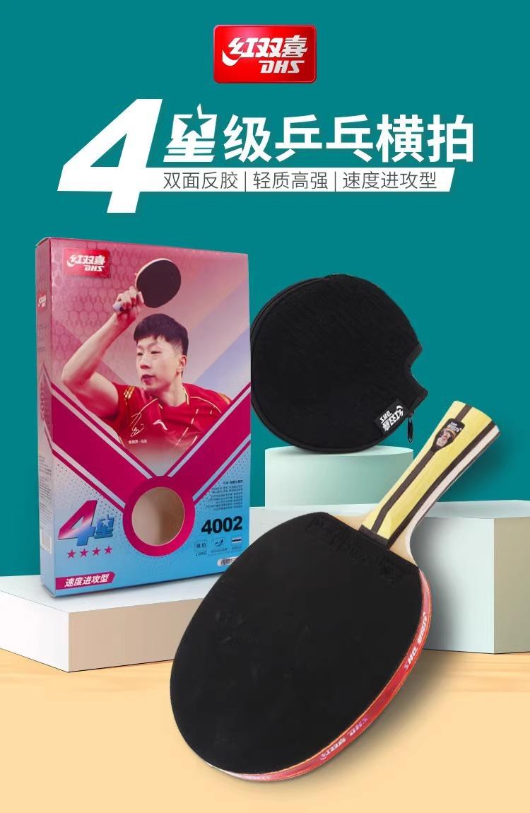 Raqueta de tenis de mesa DHS de carbono con base doble roja y 4 estrellas, auténtica, profesional, de alta elasticidad, para niños y adultos, para competición.