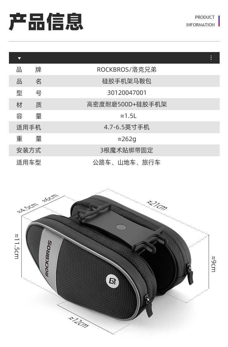 Saddle bag with mobile phone rack for 4.7-6.5 inch mobile phone (rain cover)