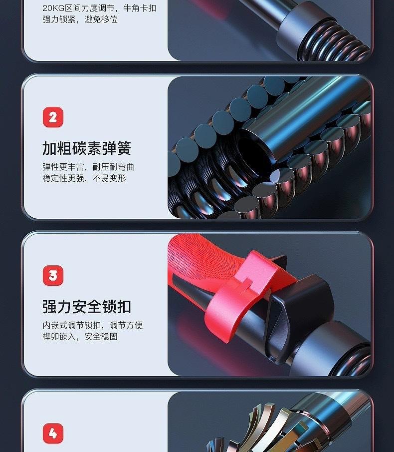 Dispositivo de fortalecimiento de brazos para hombres, equipo de fitness ajustable para el hogar, barra de entrenamiento muscular Pax con agarre de presión de resorte