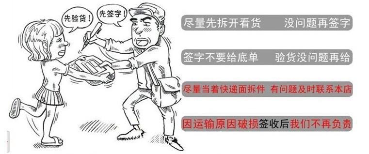 Los productos que desea se enviarán después de la inspección. Esperamos que preste atención a la verificación y firma al recibir los productos. Si tiene alguna pregunta, contáctenos a tiempo. No firme primero. Si el servicio de mensajería local no le permite inspeccionar los productos primero, debe firmar primero, pero no deje que el mensajero lo haga al mismo tiempo. Vaya, el mensajero estará disponible para verificar si los productos están intactos y, si hay algún problema, pídale que firme y los devuelva. El mensajero debe estar presente para verificar que los productos estén intactos antes de permitirle irse. Si hay algún problema, nos negaremos directamente a firmar. No nos hacemos responsables de ningún problema que ocurra en el camino después de firmar, y usted será responsable de las consecuencias. ¡Gracias por su cooperación! ! Si hay un portero, asegúrese de decirle que no lo deje firmar en su nombre. Hay muchas ocasiones en que los mensajeros simplemente dejan la puerta donde está el portero para eludir la responsabilidad. ¡Recuerde! Dado que los artículos de pesca son diferentes a otros tesoros, muchos paquetes exteriores están intactos, pero las cañas y los accesorios del interior están dañados. ¡Debe abrir e inspeccionar la mercancía personalmente antes de firmar su recepción!