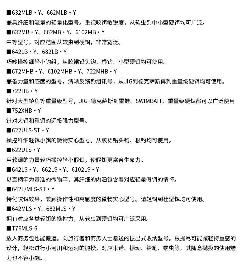 6102LS Y(2.08 m soft straight handle), 662LS.Y(1.98 m straight handle), 682LB.Y(2.03 m handle)