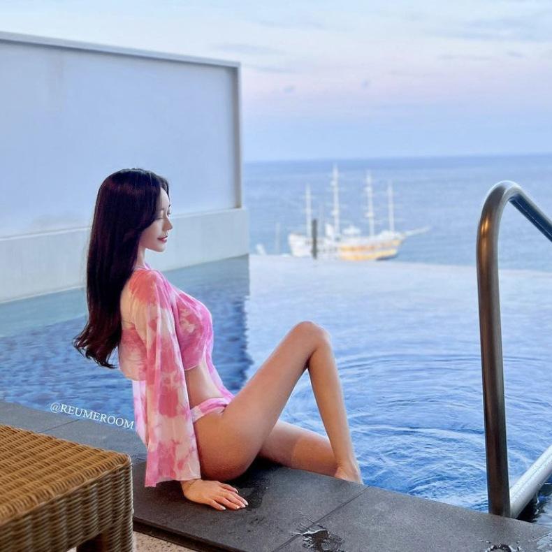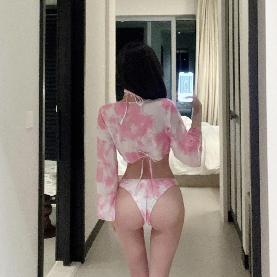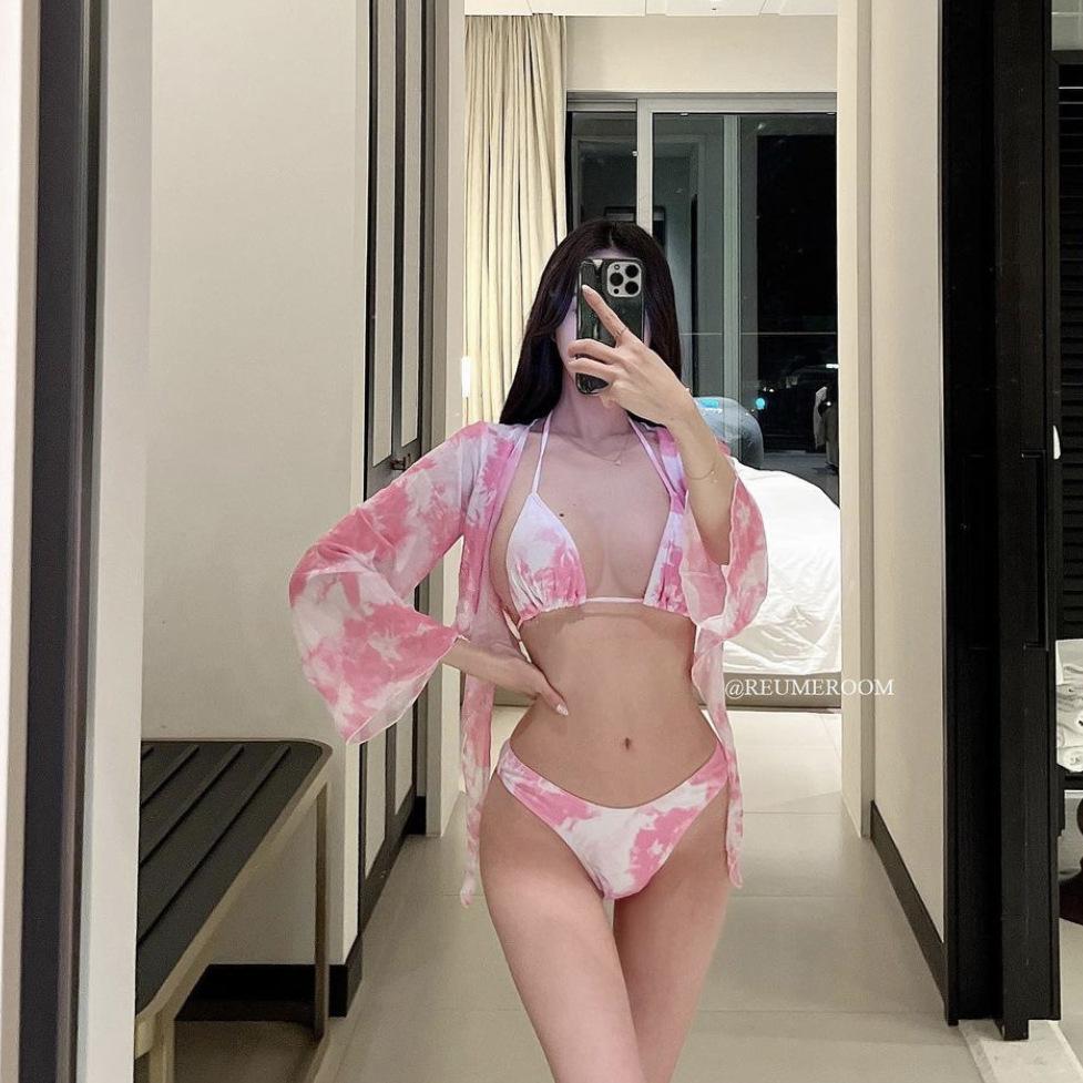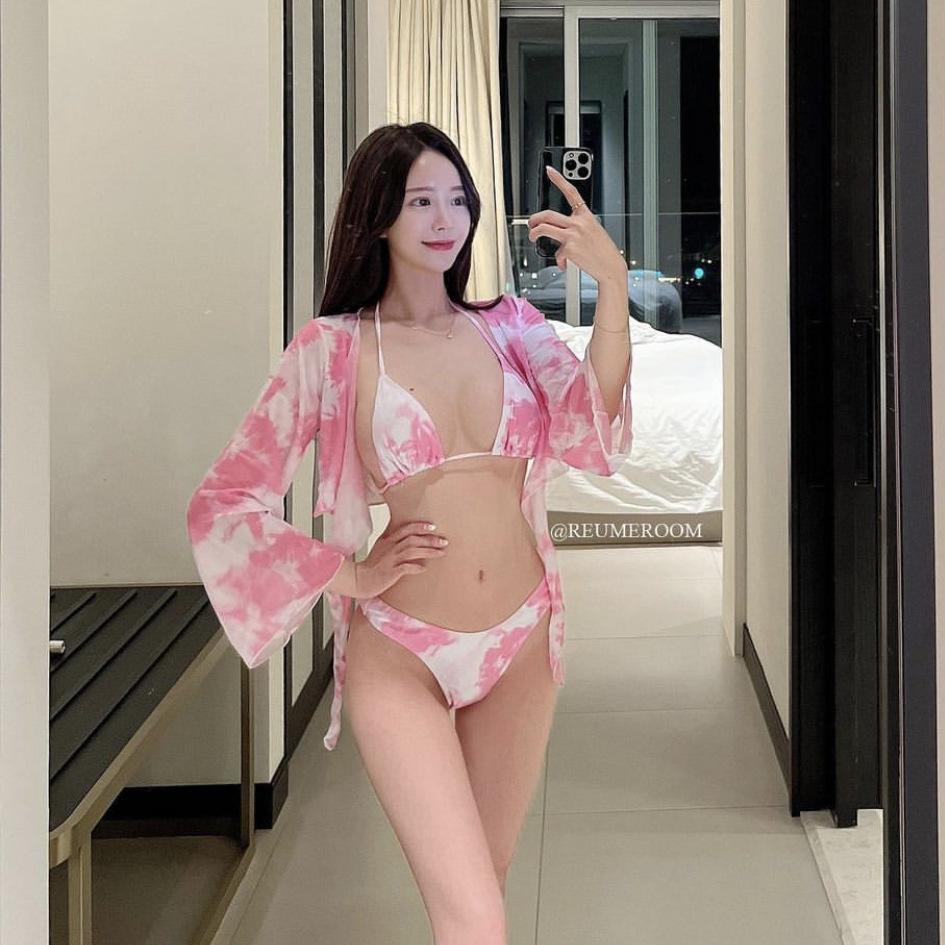 Traje de baño sexy de tres piezas con chaqueta de diosa tie-dye, bikini dulce y atractivo para mujer