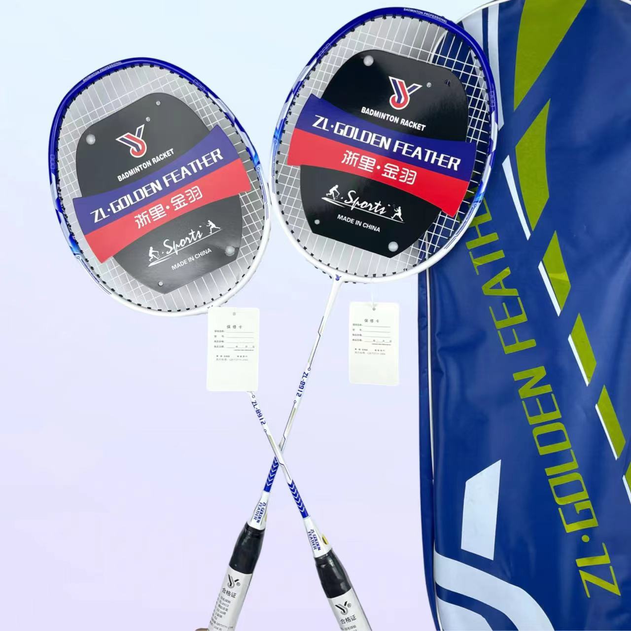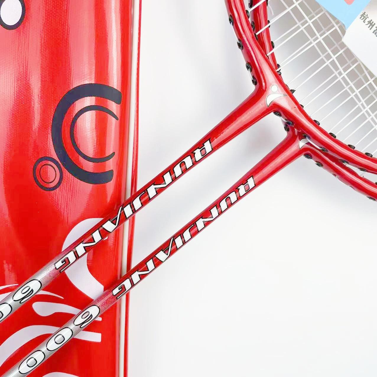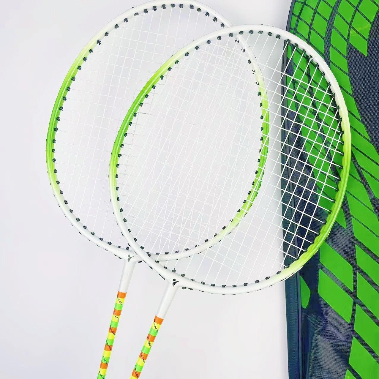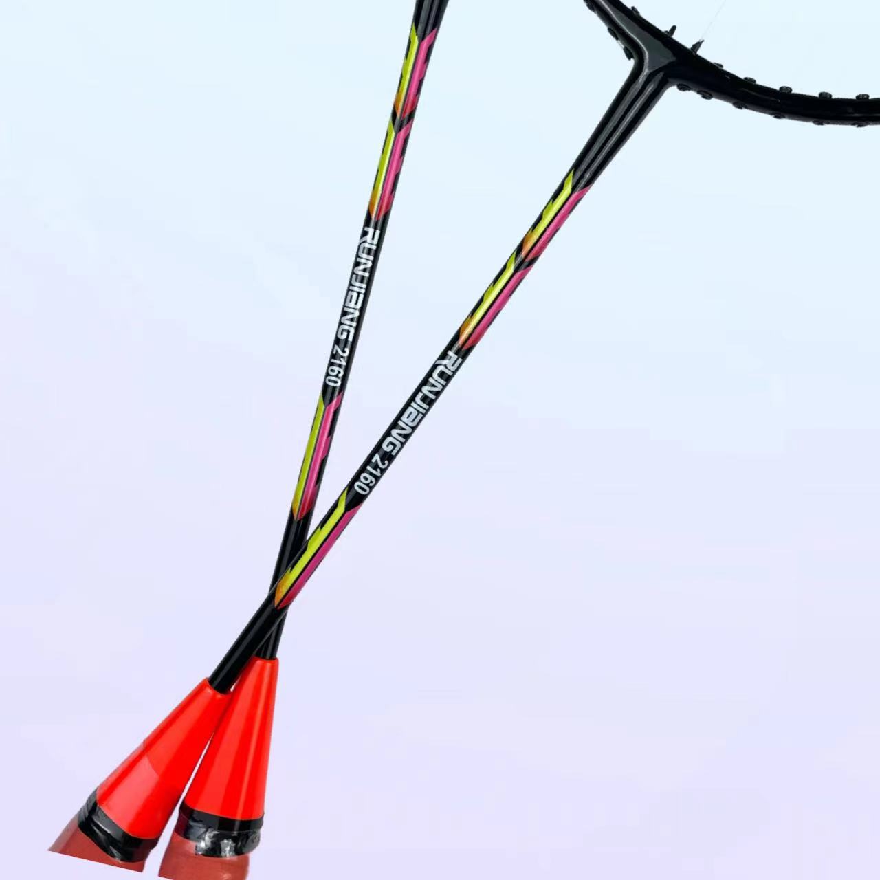 Raqueta de bádminton de aleación de aluminio y carbono con 2 bolas de esponja y mango de hierro de tacto cómodo, raqueta de plumas integrada para deportes y fitness.