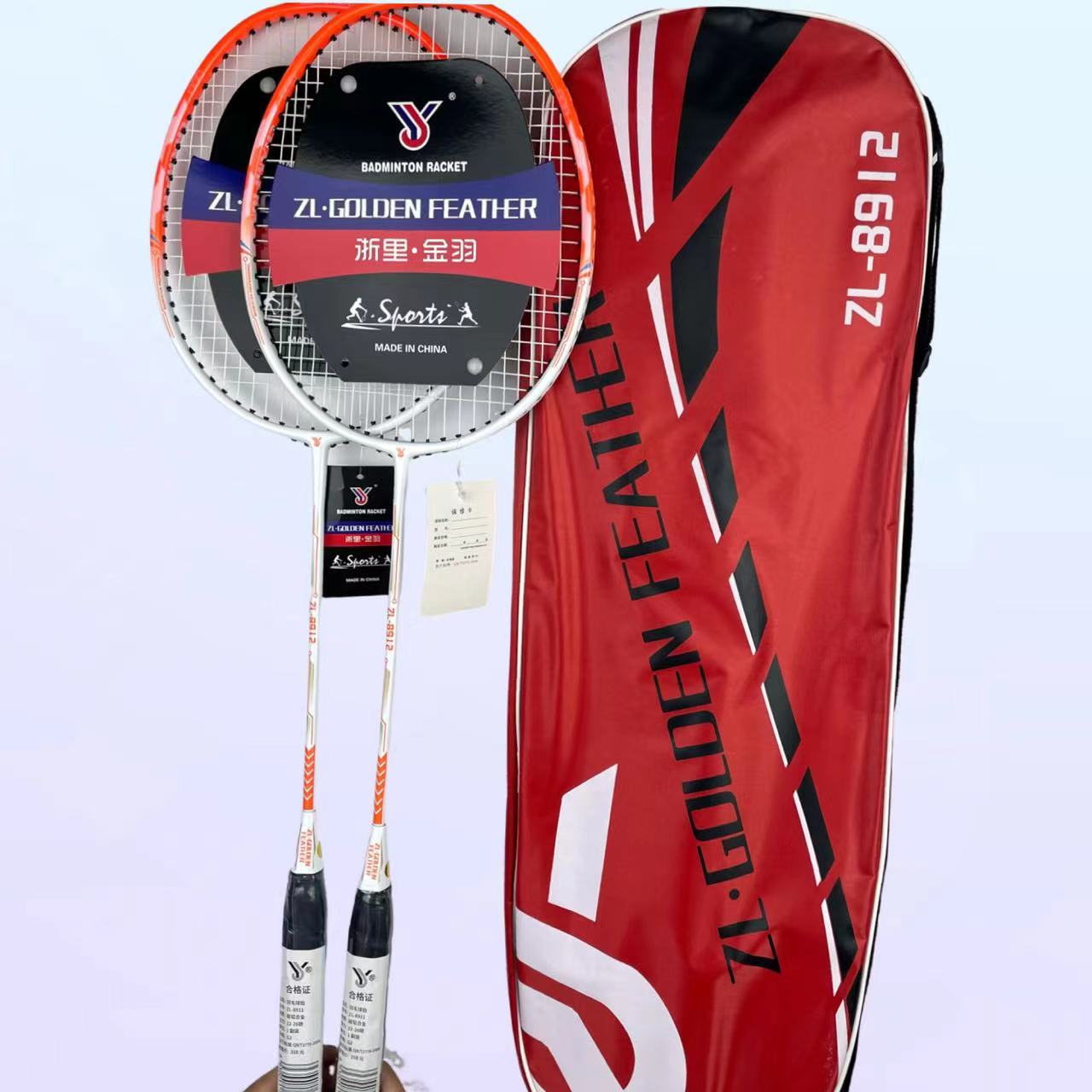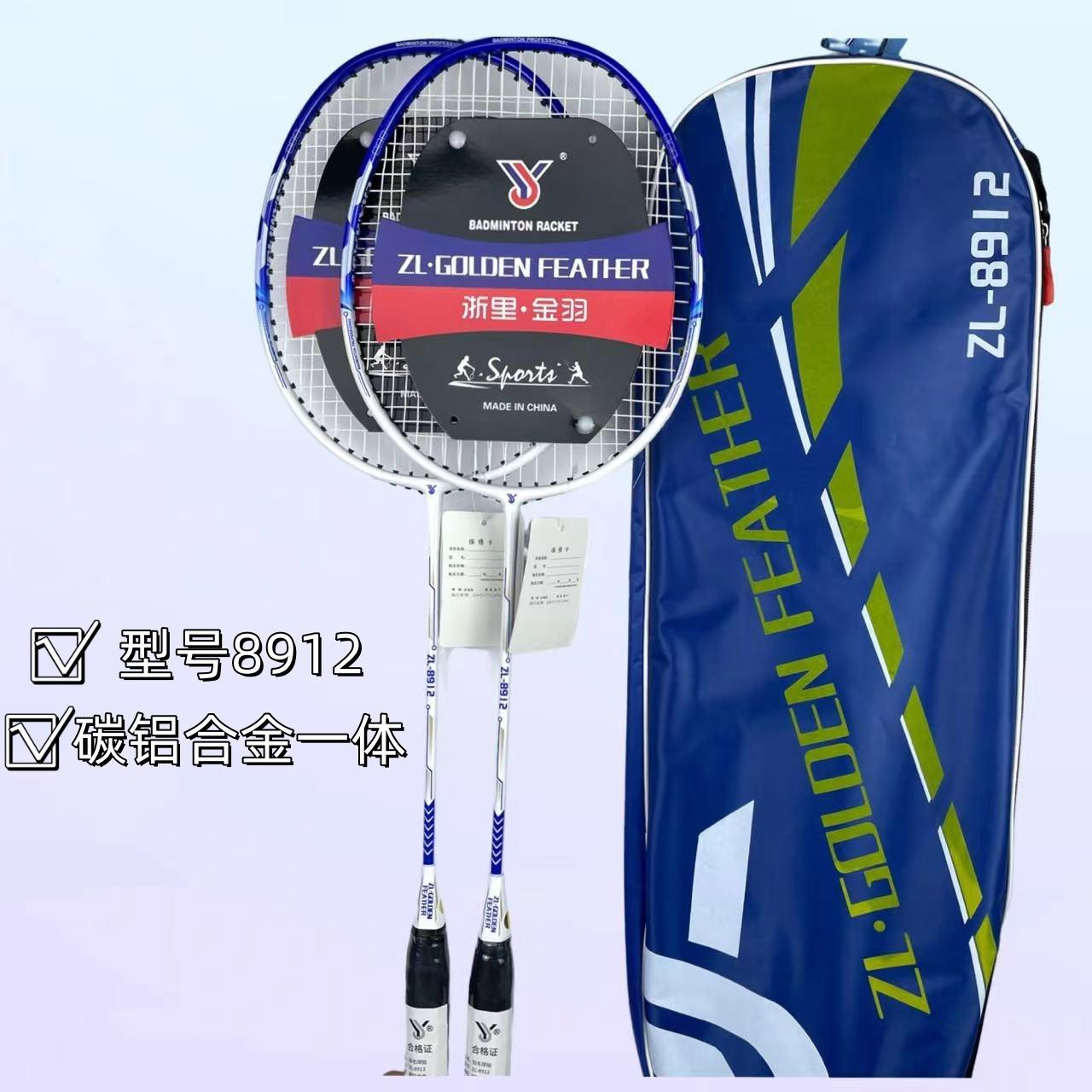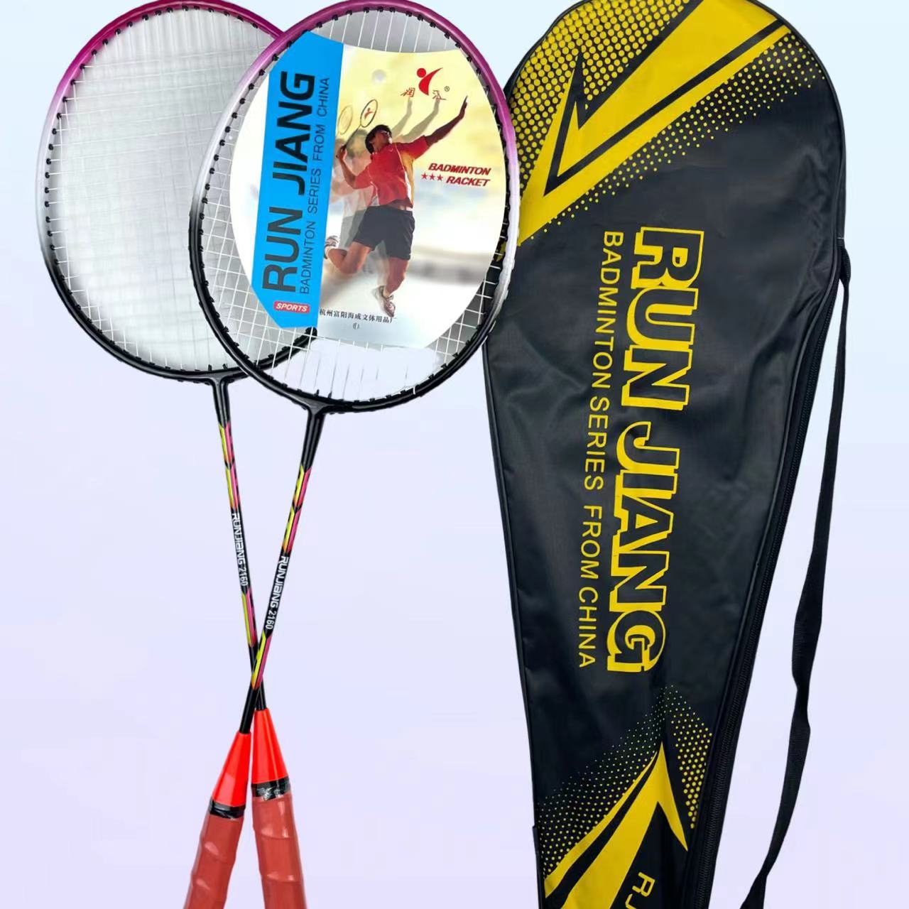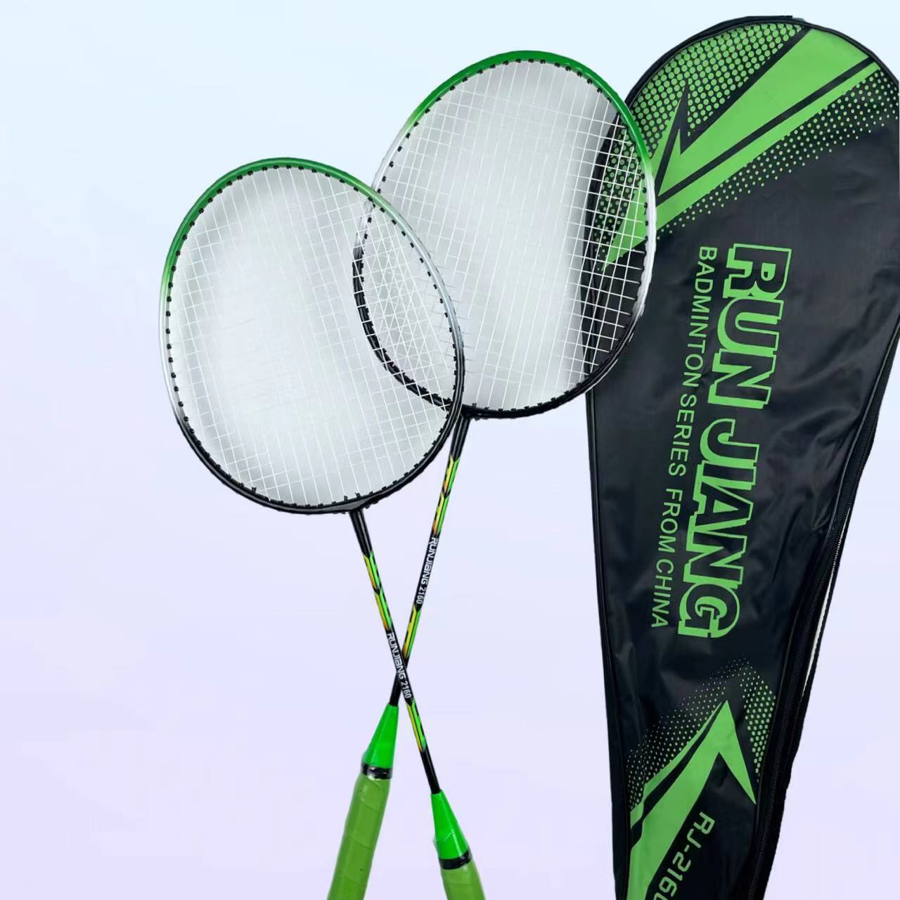 Raqueta de bádminton de aleación de aluminio y carbono con 2 bolas de esponja y mango de hierro de tacto cómodo, raqueta de plumas integrada para deportes y fitness.